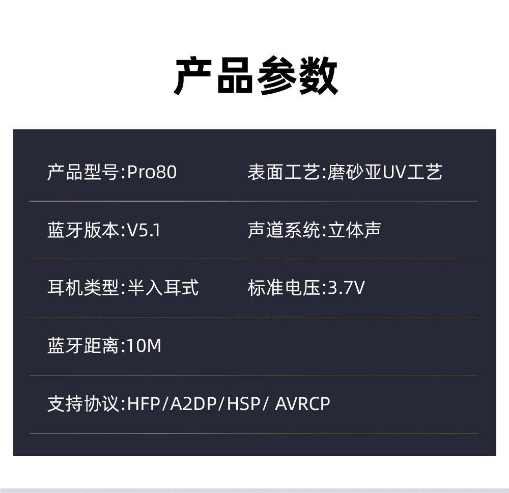 PRO80蓝牙耳机低功耗长续航WTS运动耳机低音炮降噪耳机无延迟耳机
