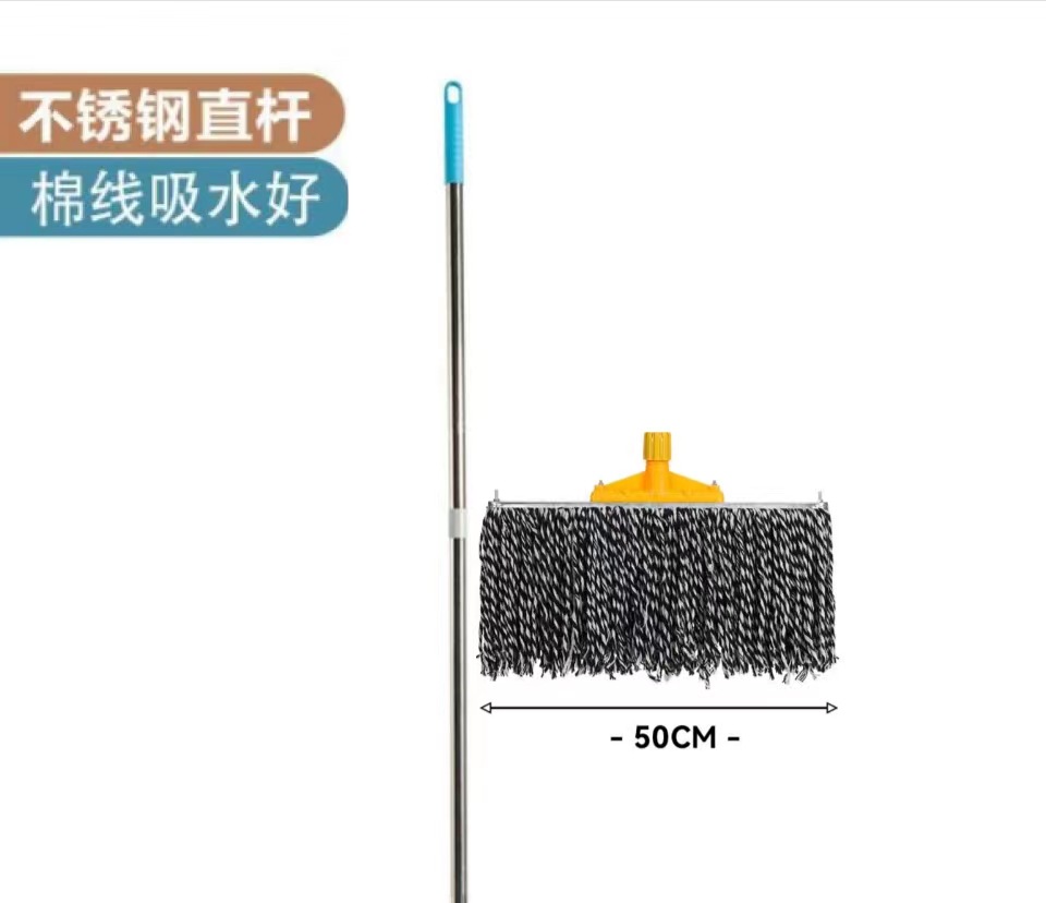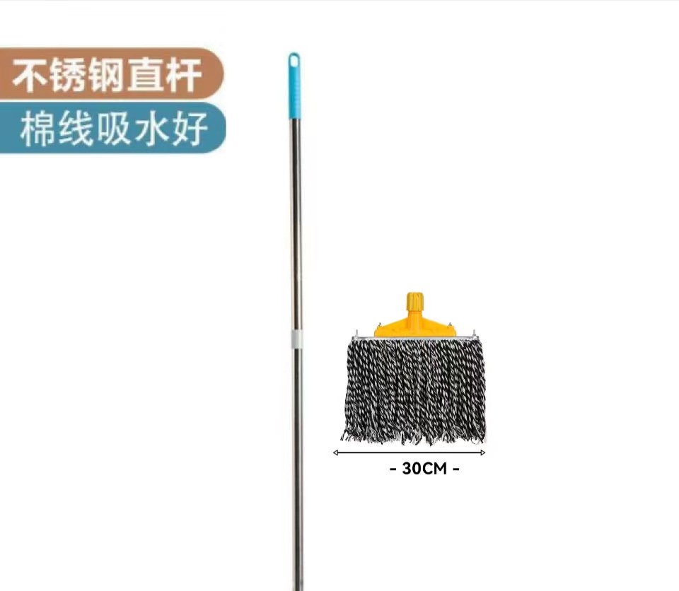 老式铁头拖把棉线普通吸水毛巾布条钢杆木杆干湿地拖酒店工厂学校