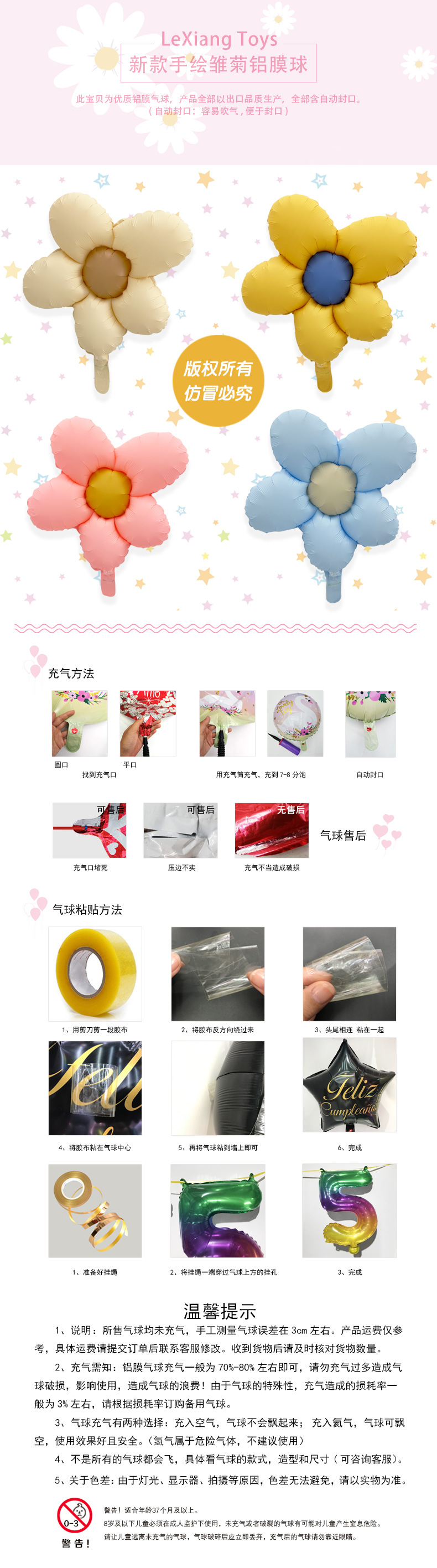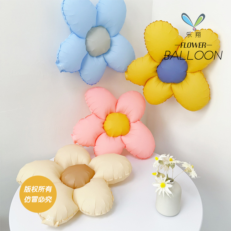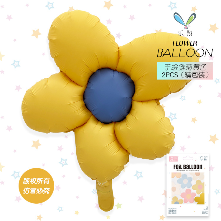 新款手绘五瓣花雏菊 铝膜气球 成人派对儿童生日装饰布置道具批发