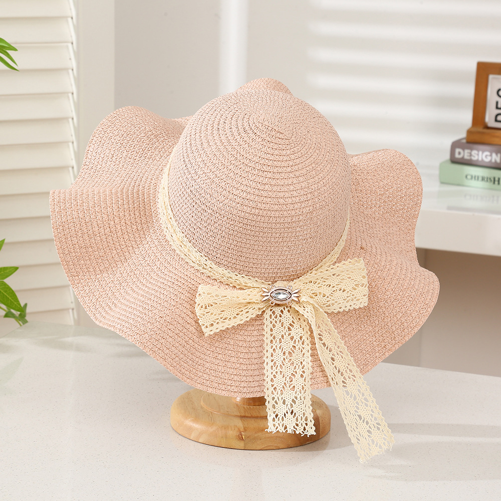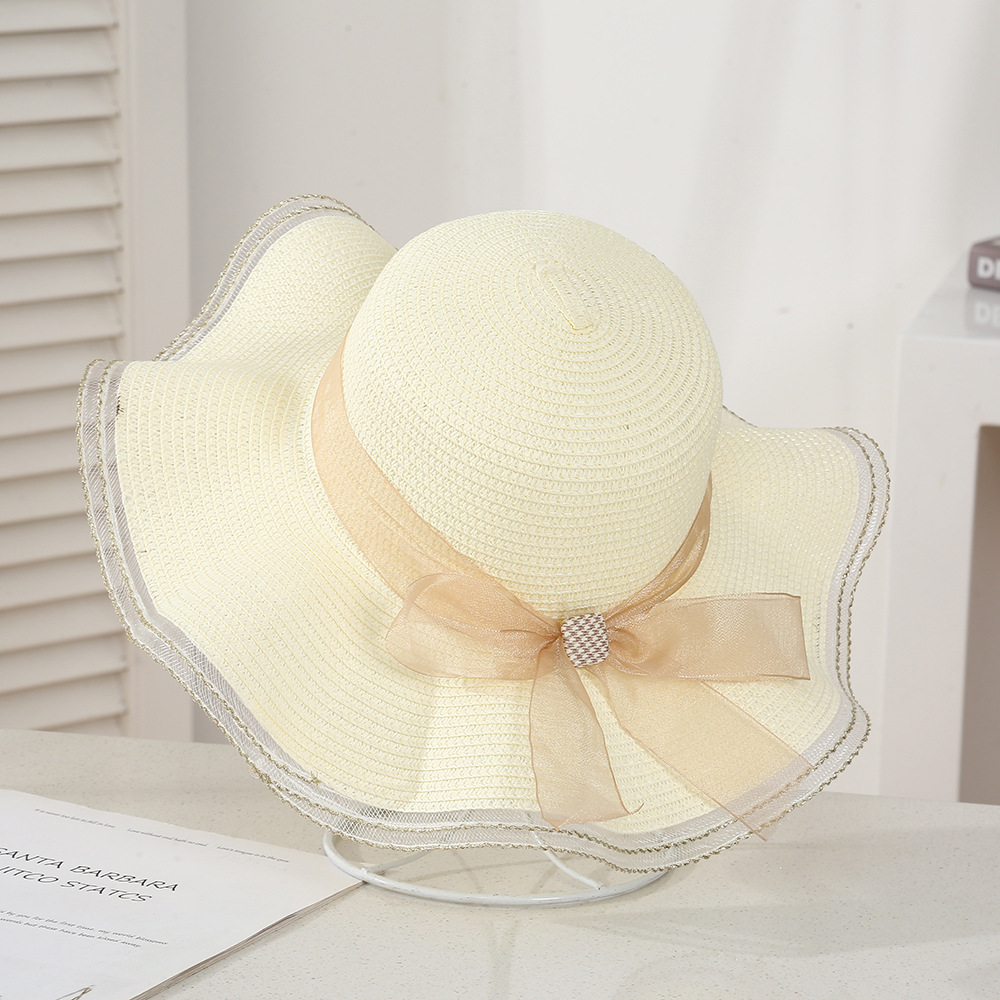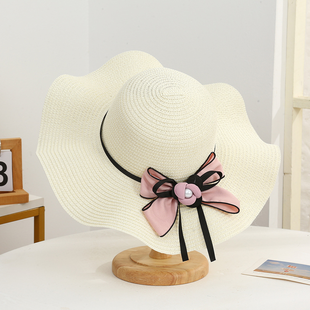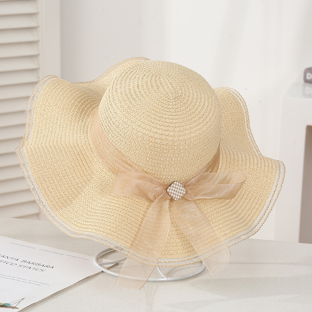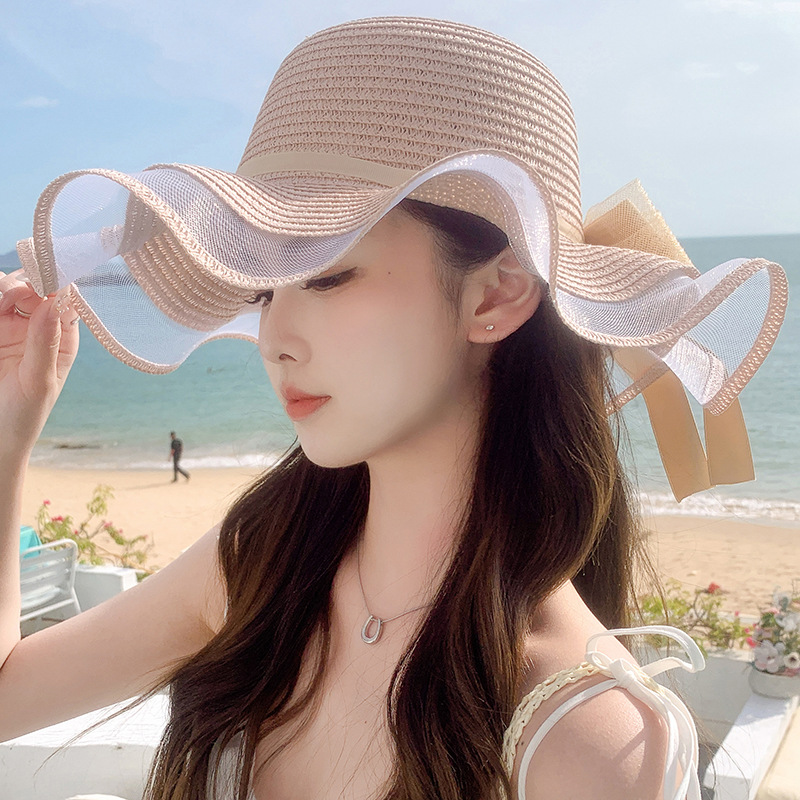 夏天蝴蝶结遮阳帽女 海边沙滩度假防晒帽户外大檐太阳帽甜美草帽
