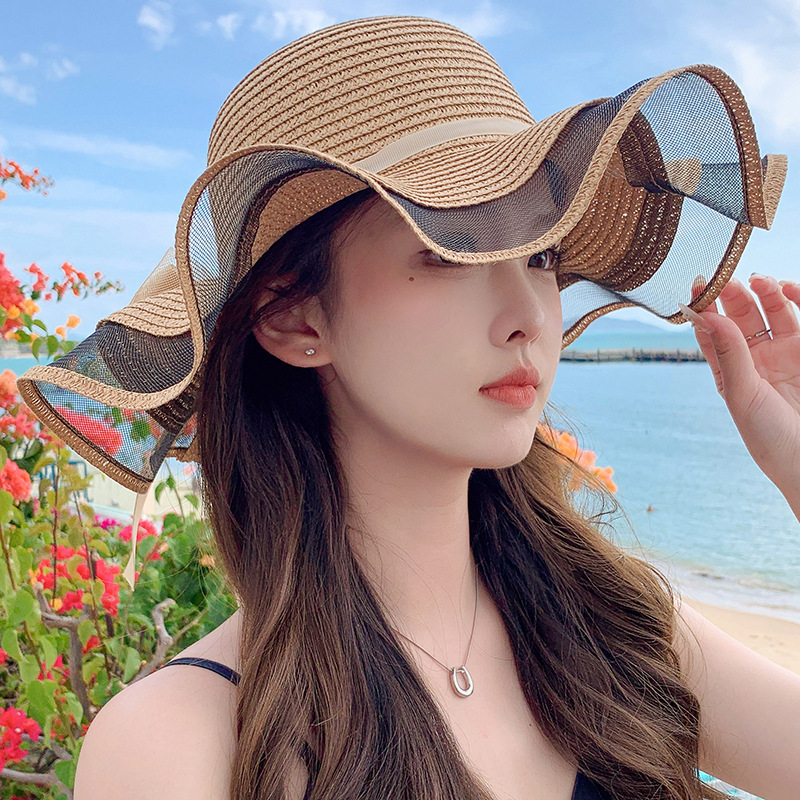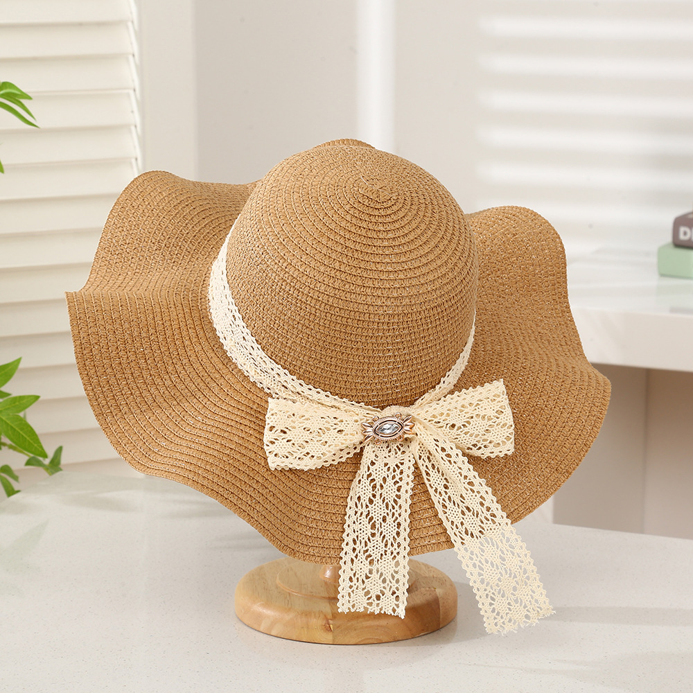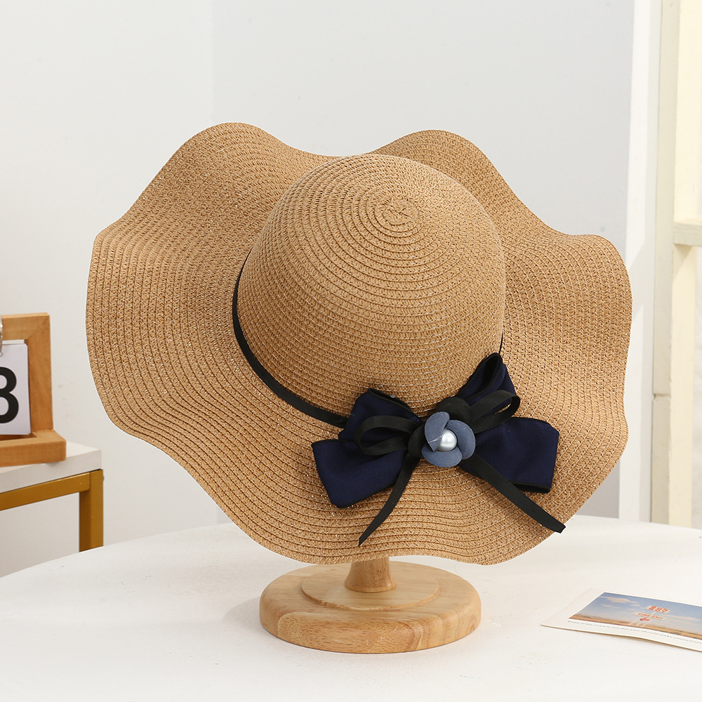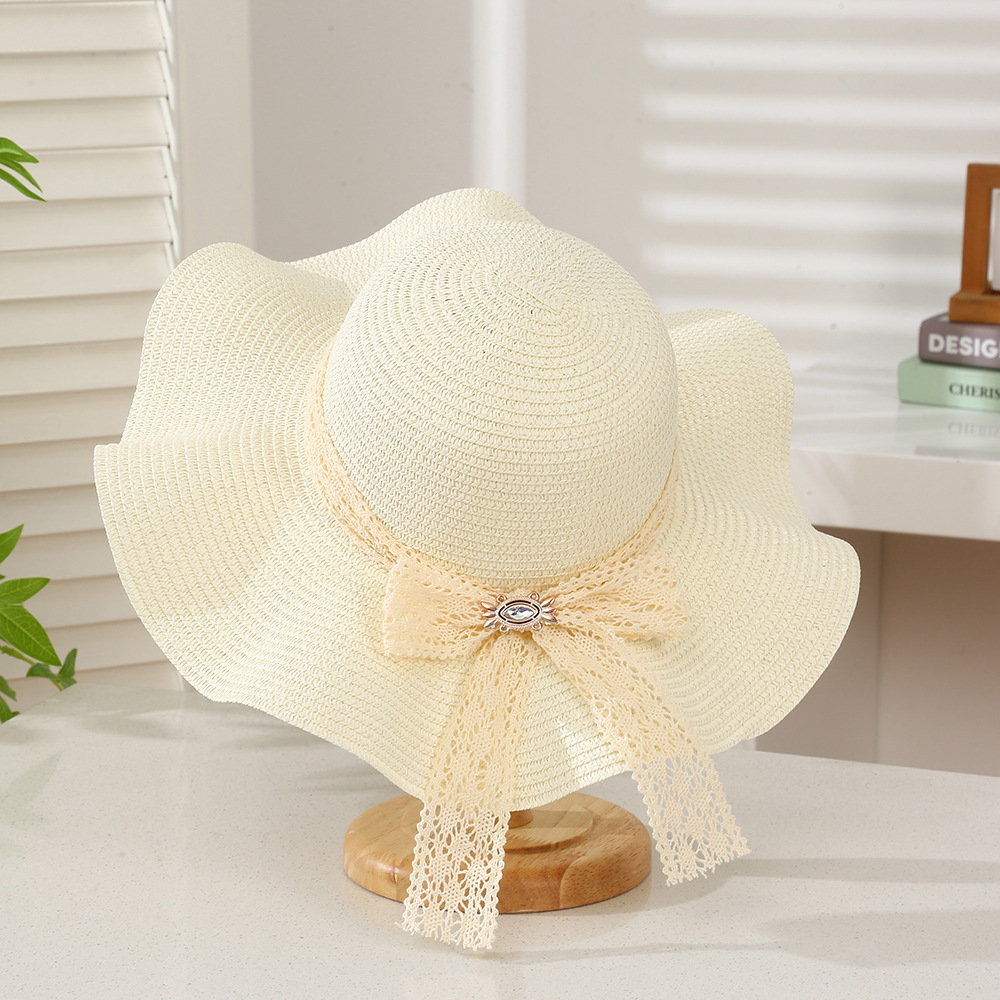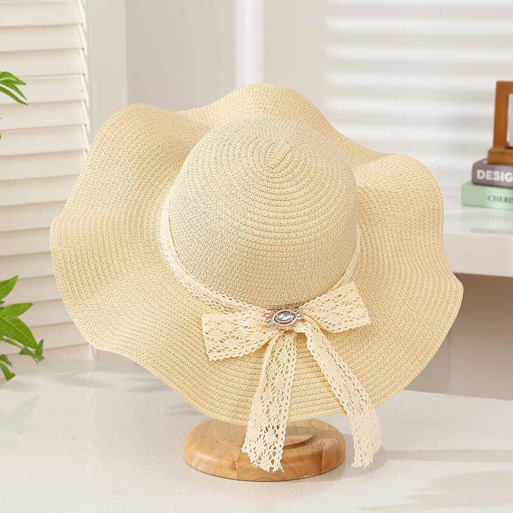 夏天蝴蝶结遮阳帽女 海边沙滩度假防晒帽户外大檐太阳帽甜美草帽
