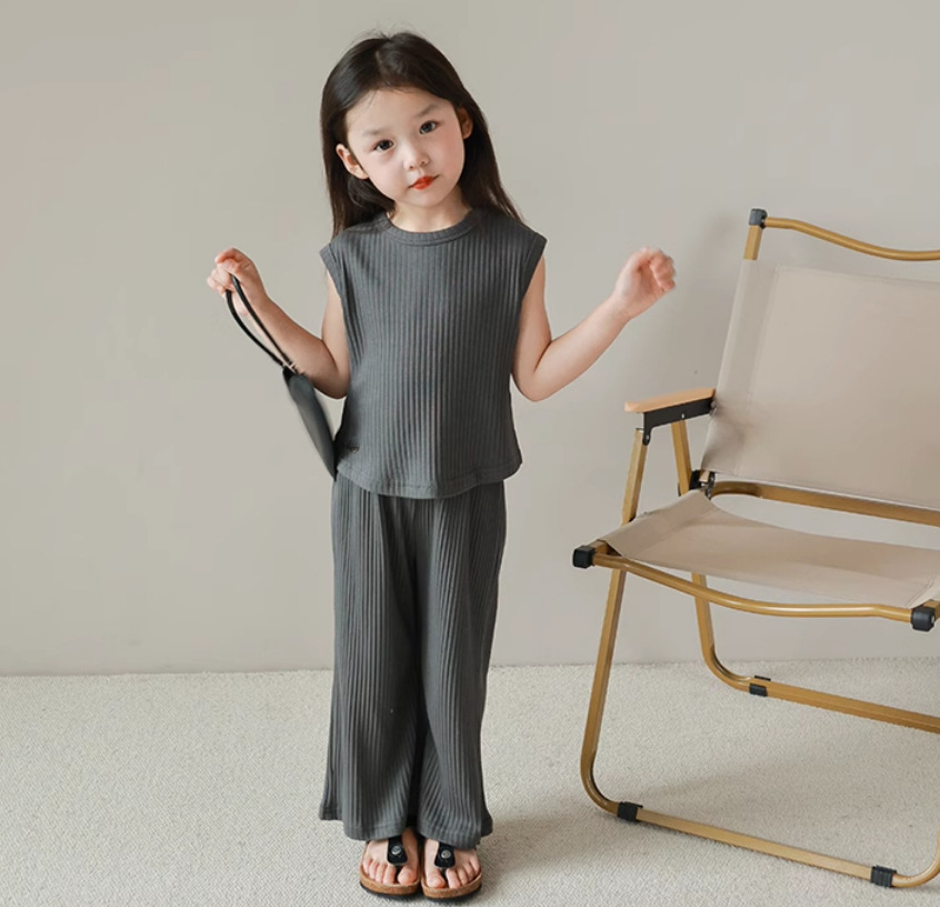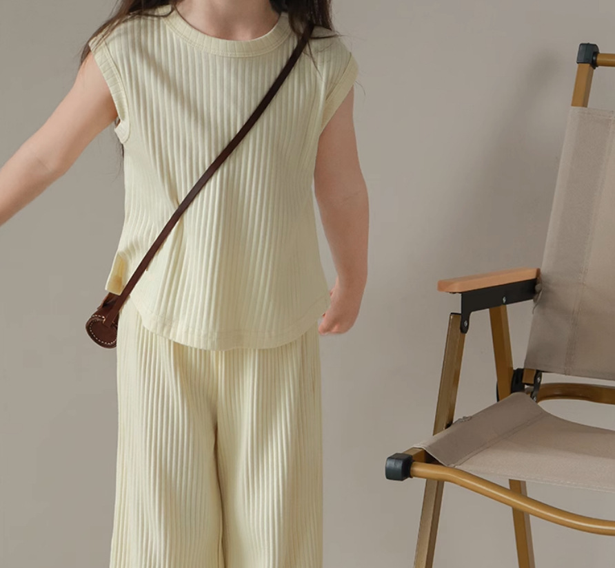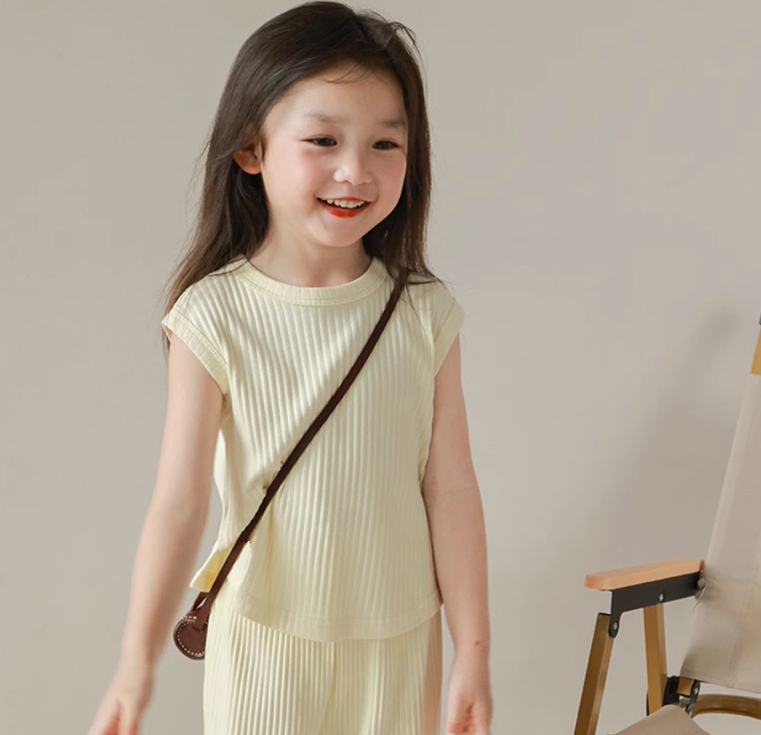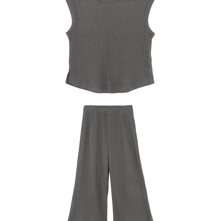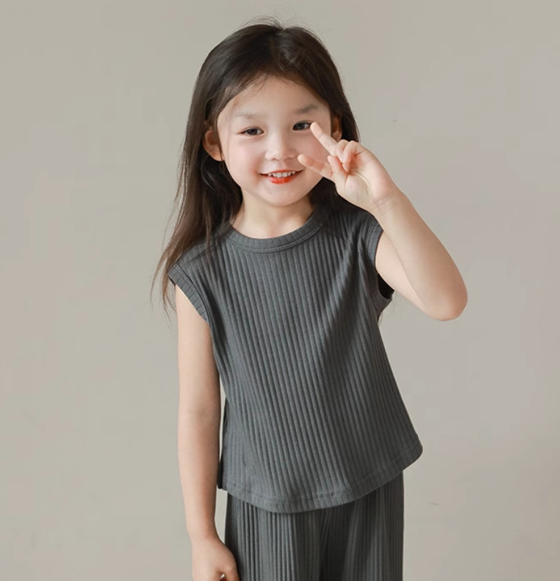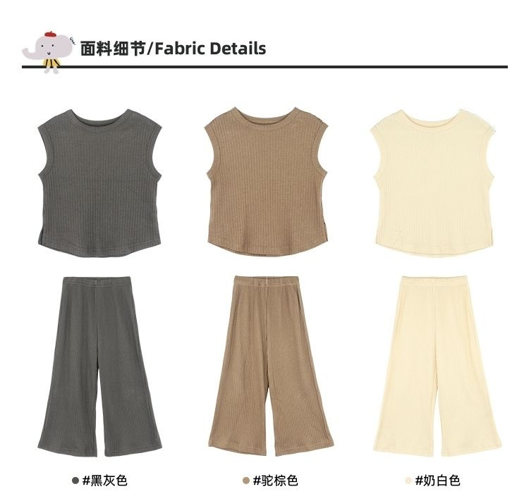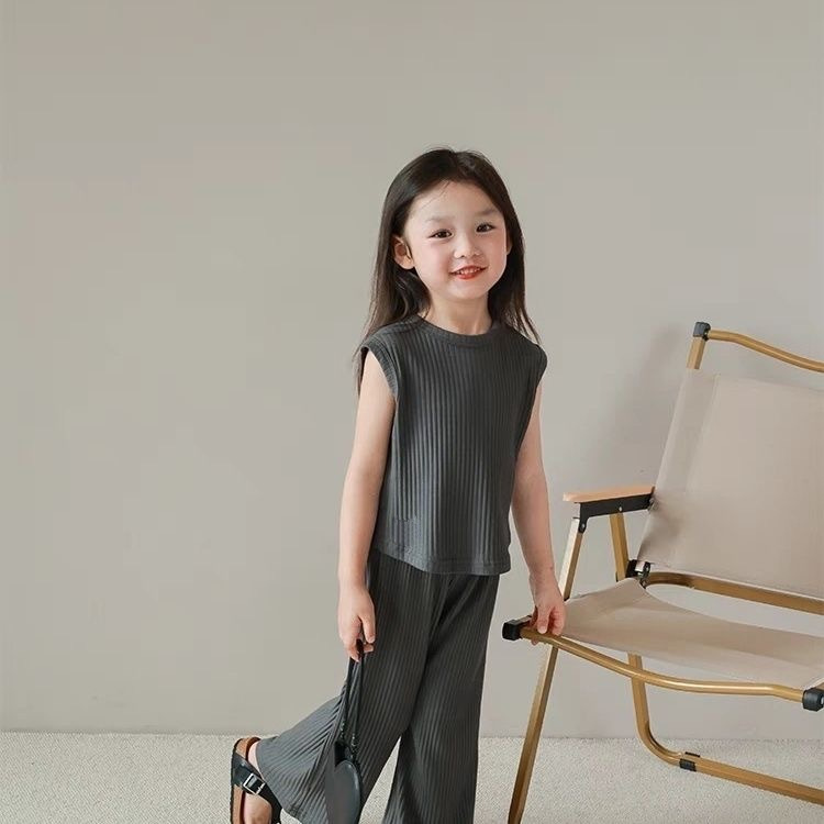 女童夏装套装2023新款中小童冰丝螺纹无袖背心长裤套装休闲两件套