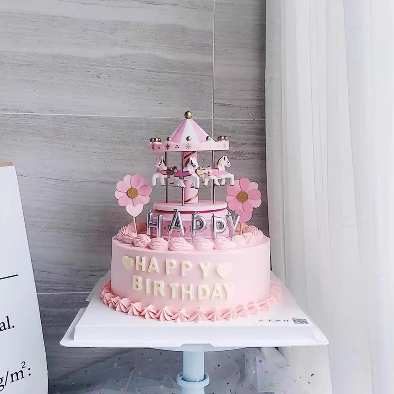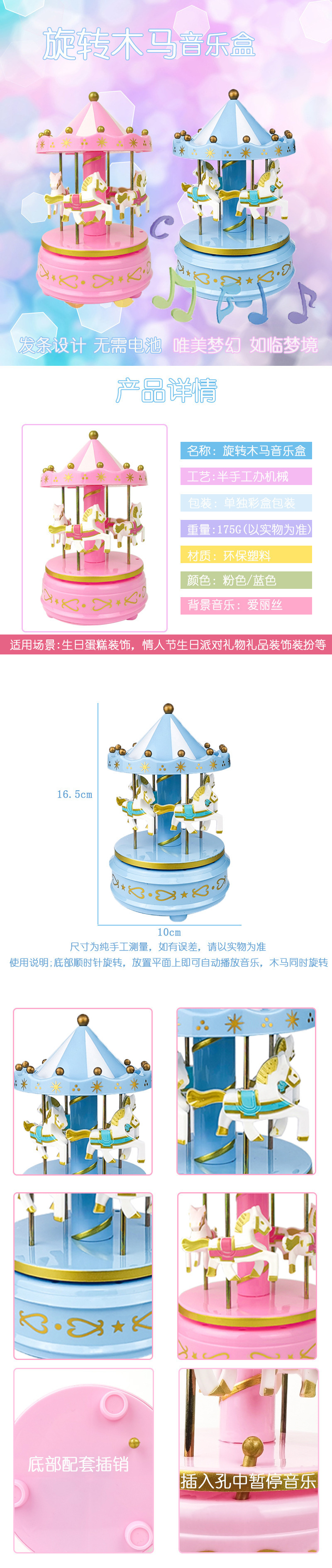 跨境旋转木马音乐盒生日蛋糕装饰摆件情侣欧式八音盒玩具礼品批发
