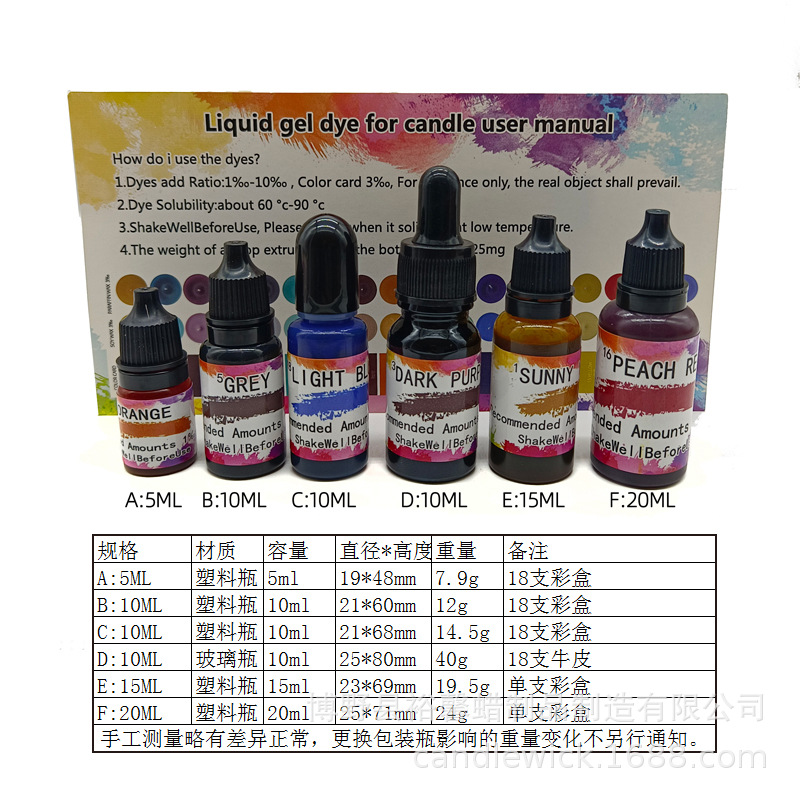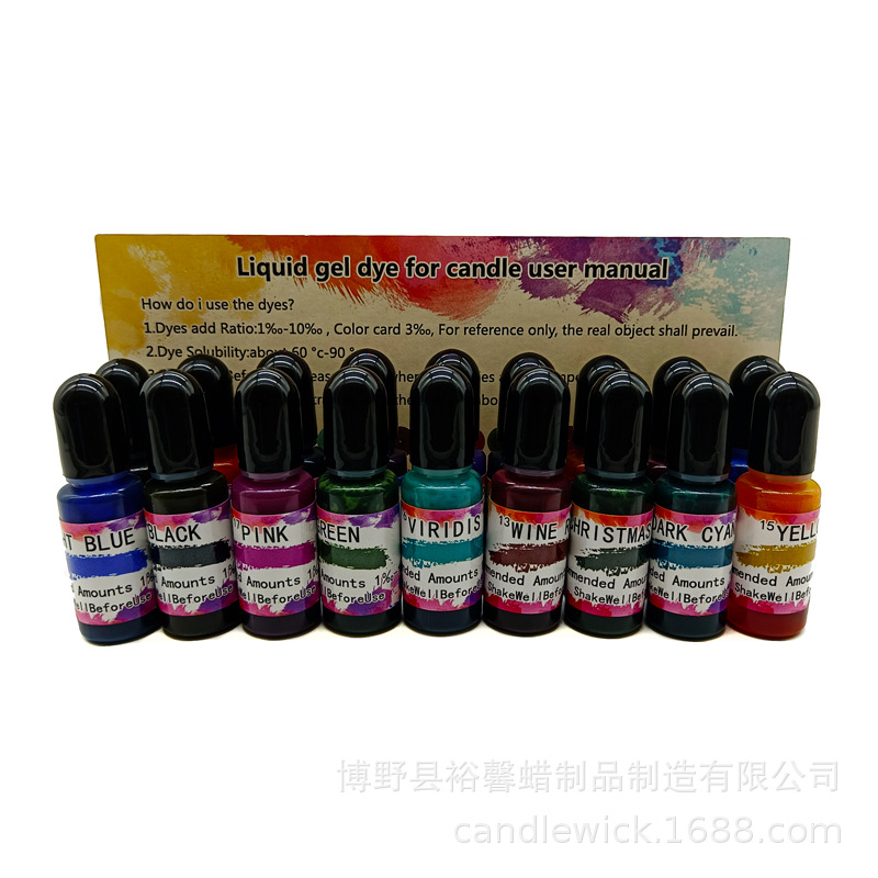 蜡烛液体色素染料颜色颜料10ml塑料瓶18色彩盒可配蜡芯架线板贴纸