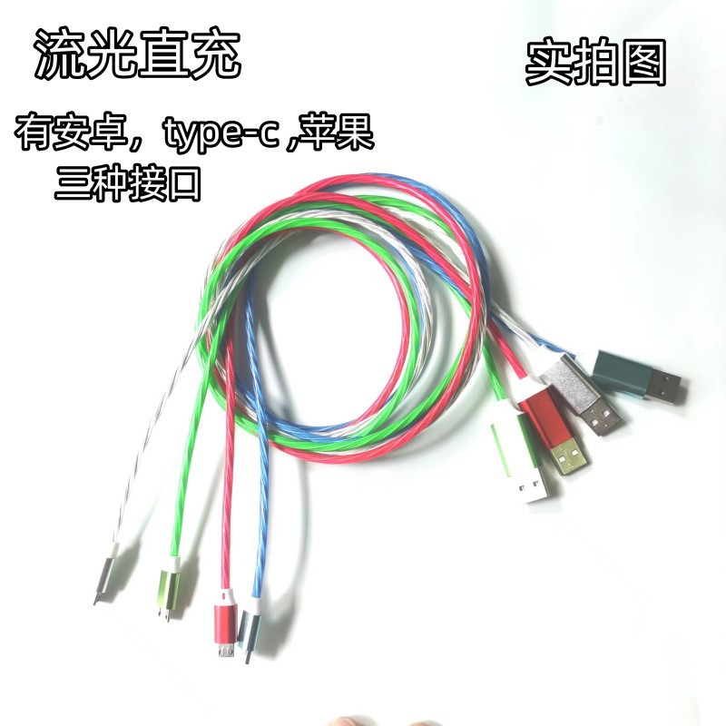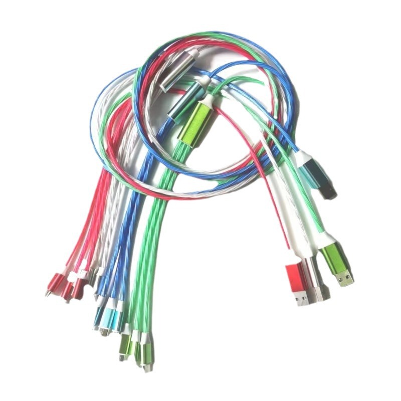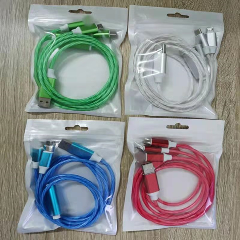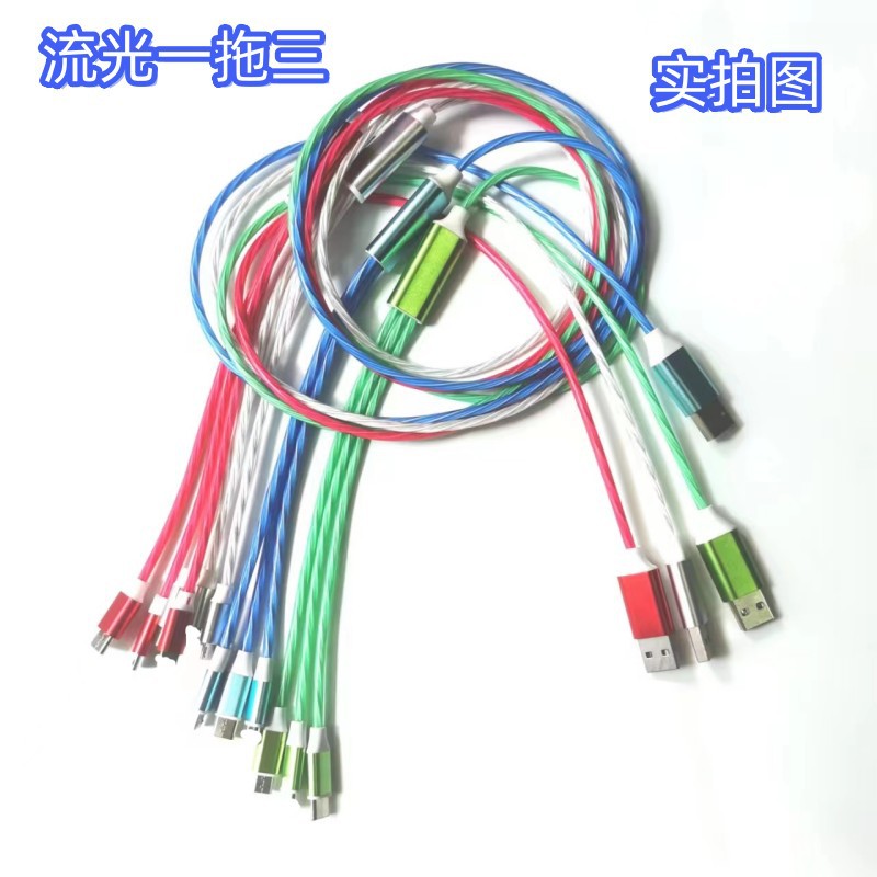 厂家直销流光一拖三数据线七彩车载三合一多头手机快充线礼品批发