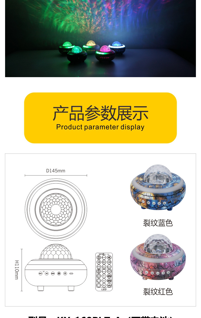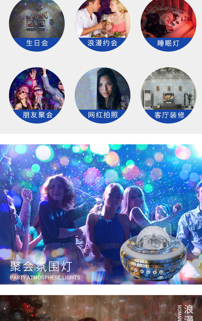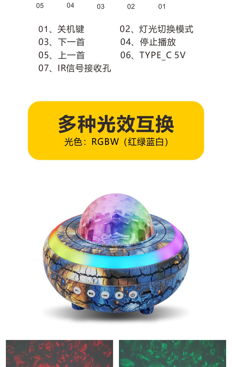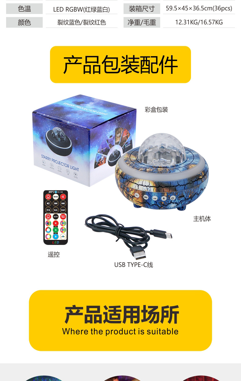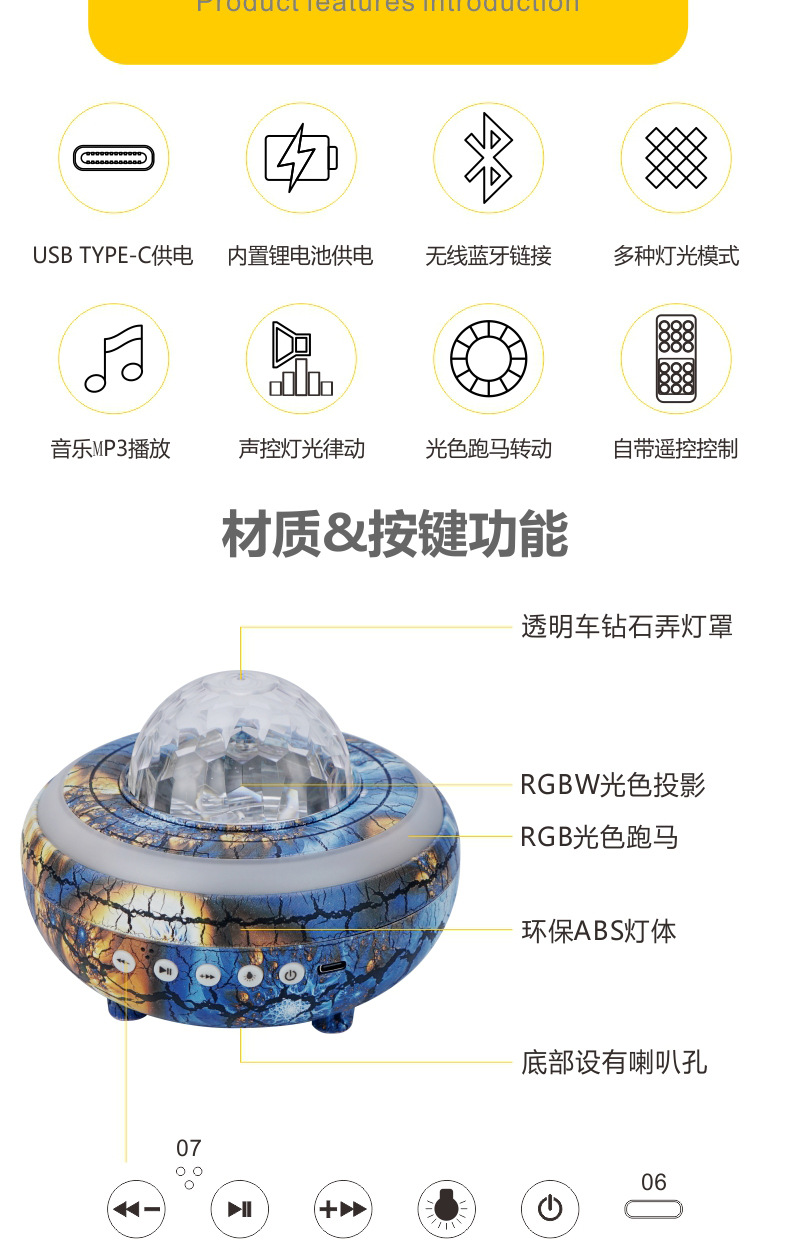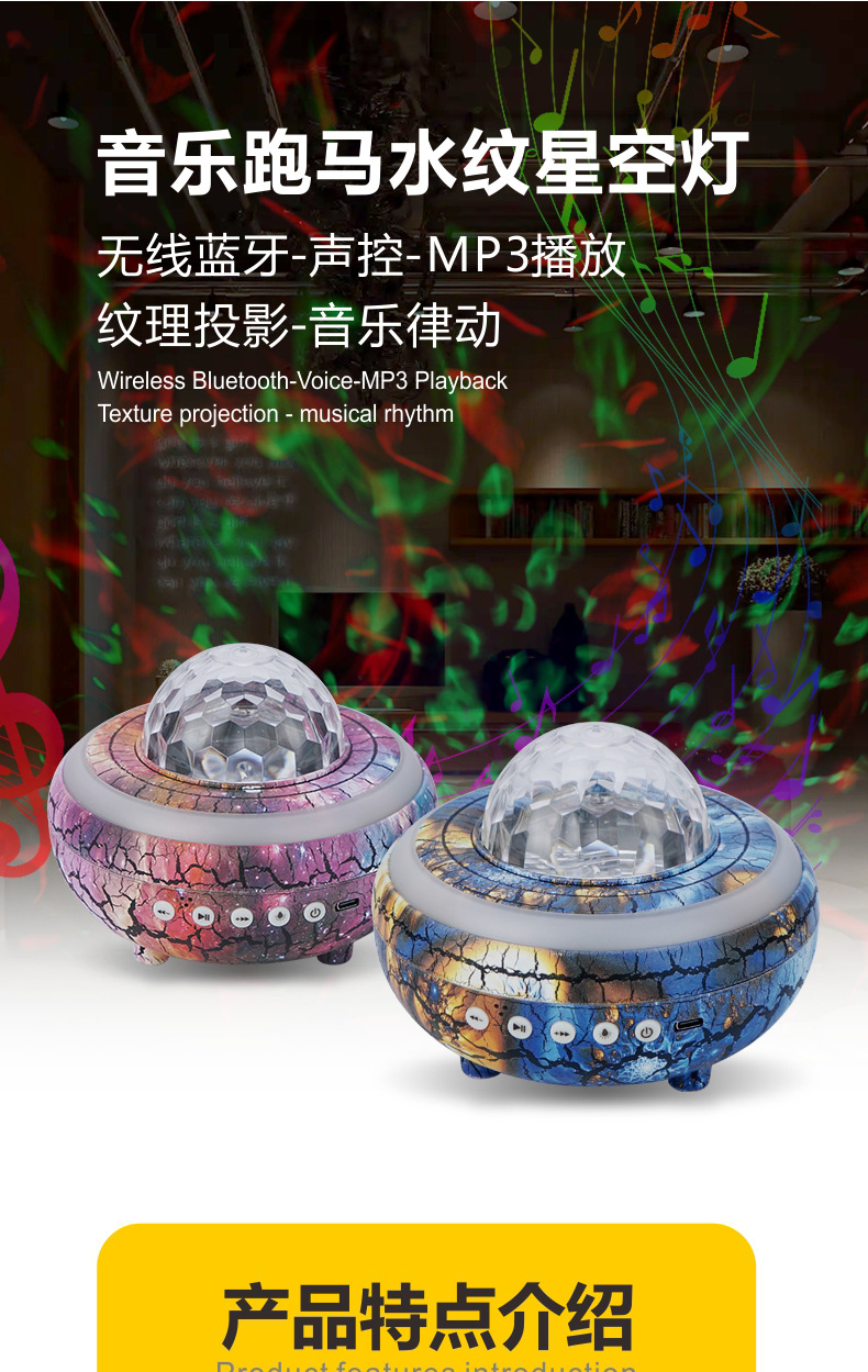 外贸专供USB充电投影灯星空水纹灯小夜灯蓝牙音乐星空灯LED灯