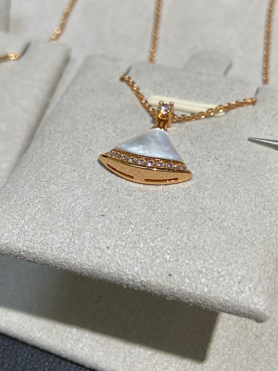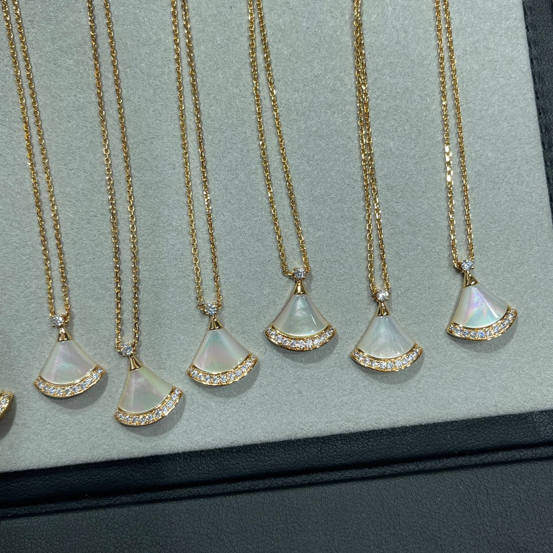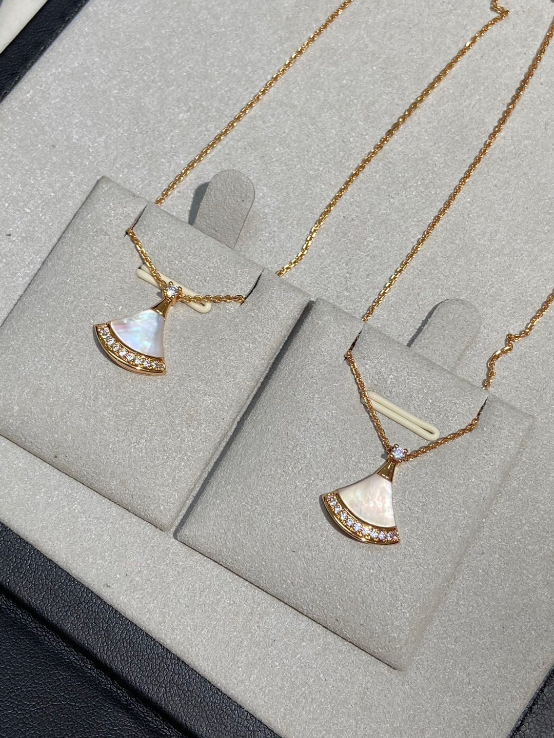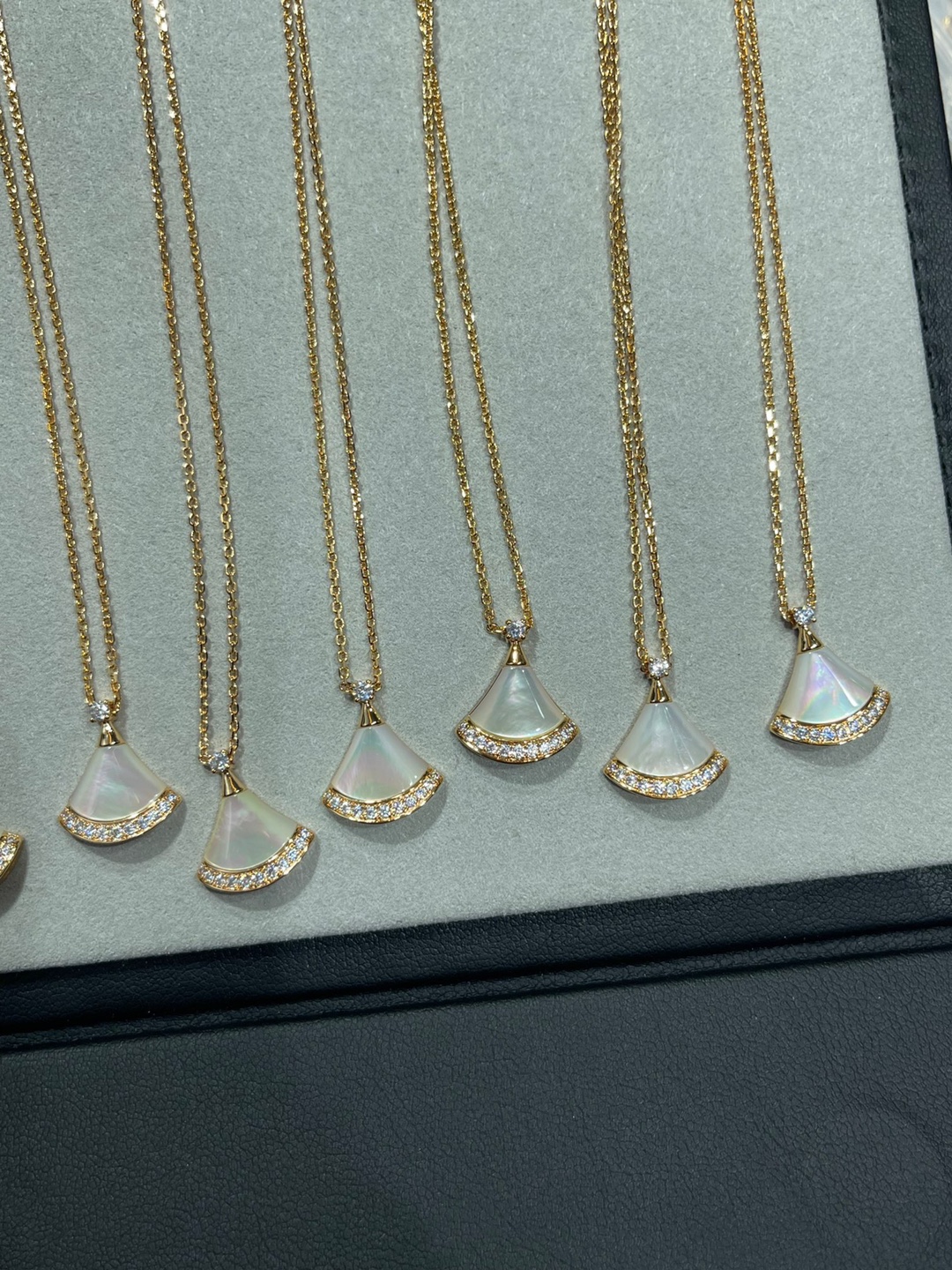 V金高品质小裙子项链经典款扇形18k玫瑰金Cnc白贝母红玉髓 锁骨链