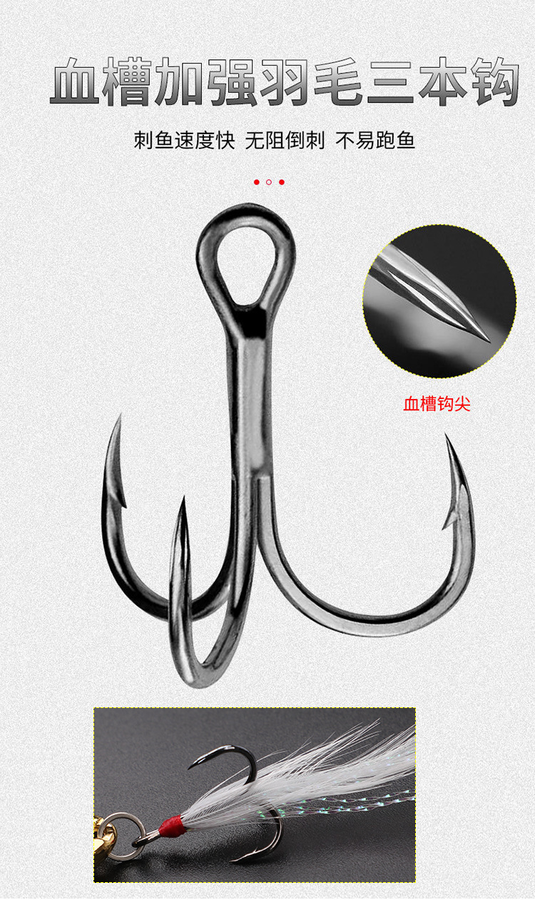 | 10克-羽毛血槽钩 | USD $0.49 | 9272 piece available |
