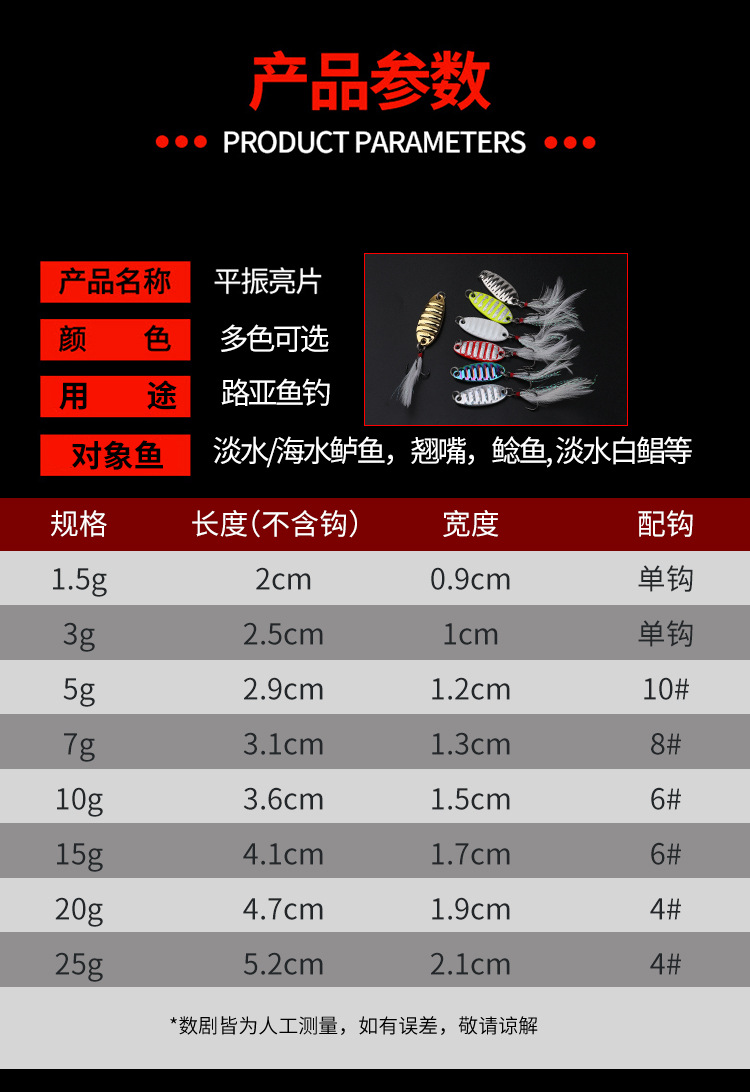 假饵路亚平振亮片鱼饵金属平震路亚饵马口米翘嘴黑鱼白条鲈鱼批发
