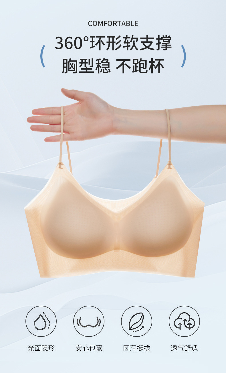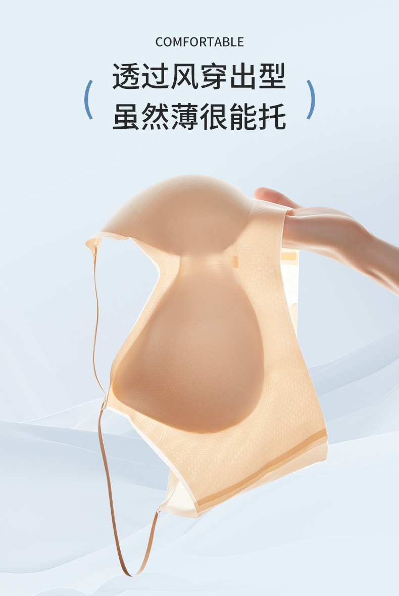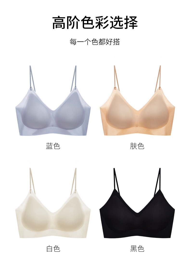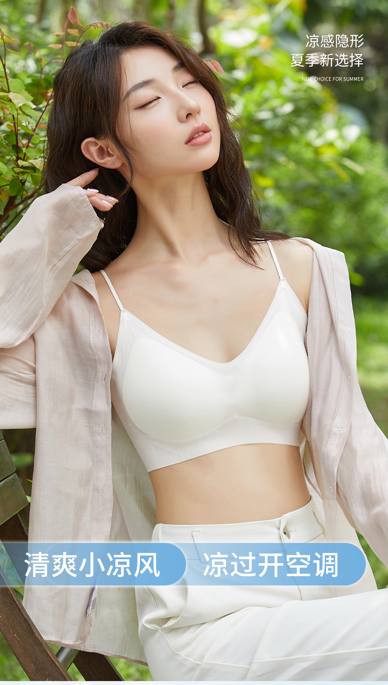 无痕美背文胸夏季超薄款内衣女冰丝凉感透气性感固定杯聚拢胸罩女