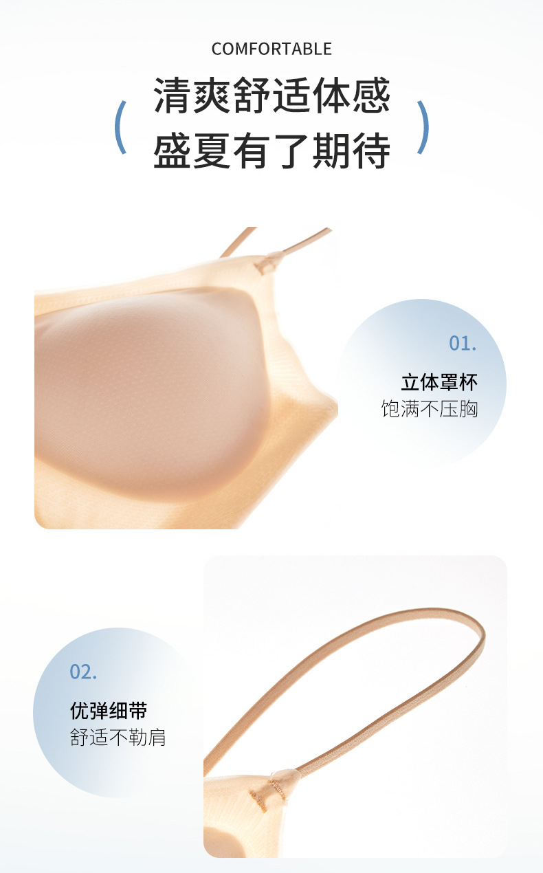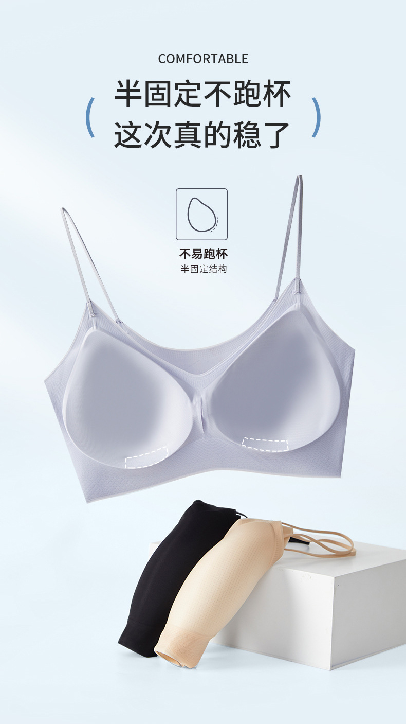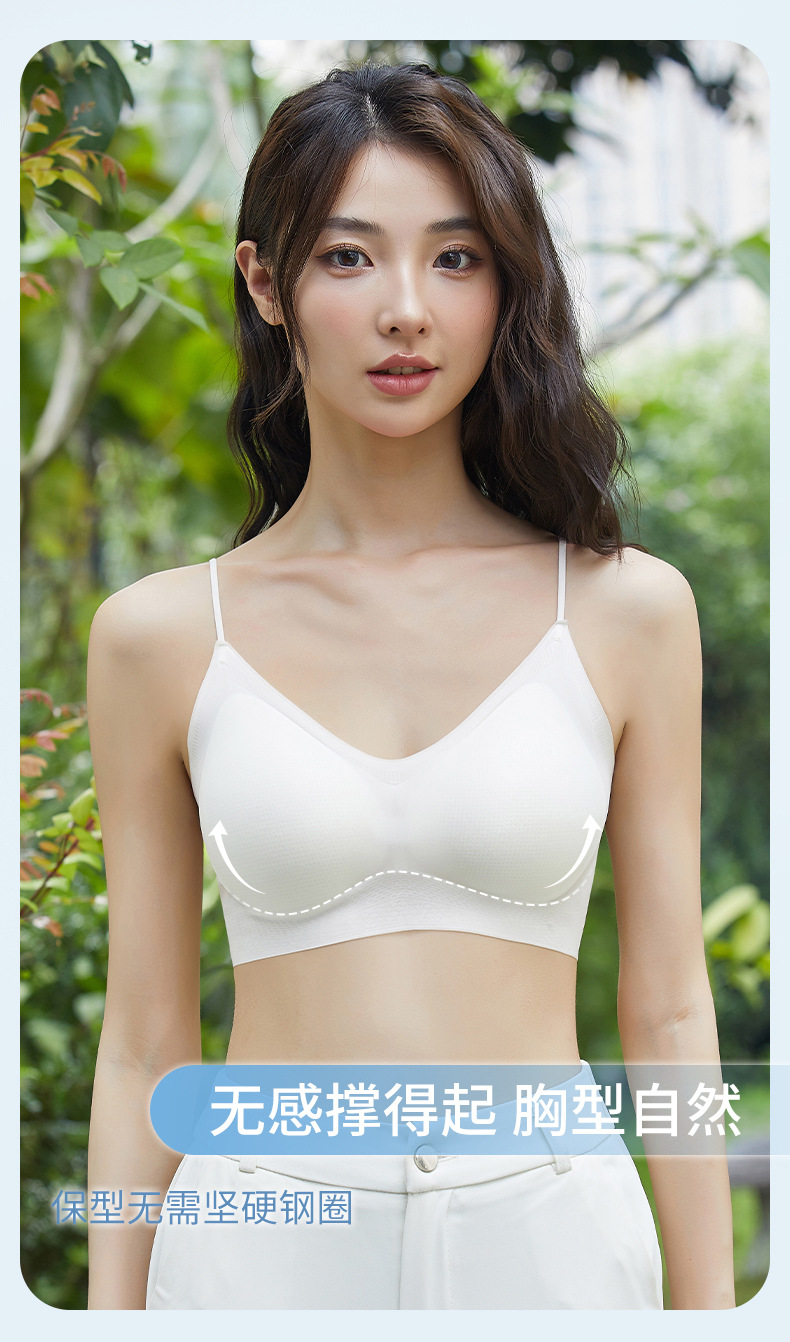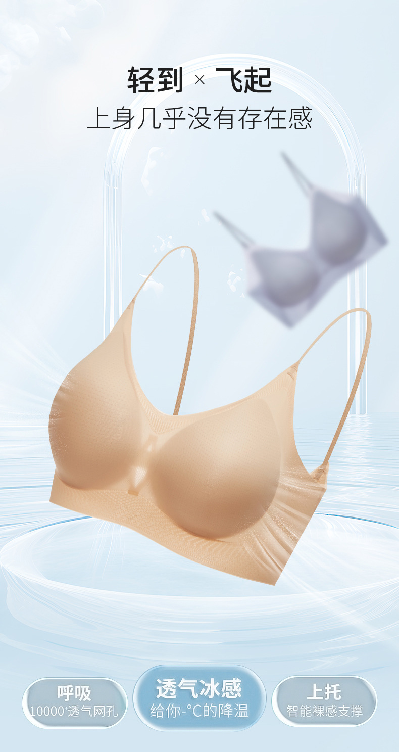 无痕美背文胸夏季超薄款内衣女冰丝凉感透气性感固定杯聚拢胸罩女