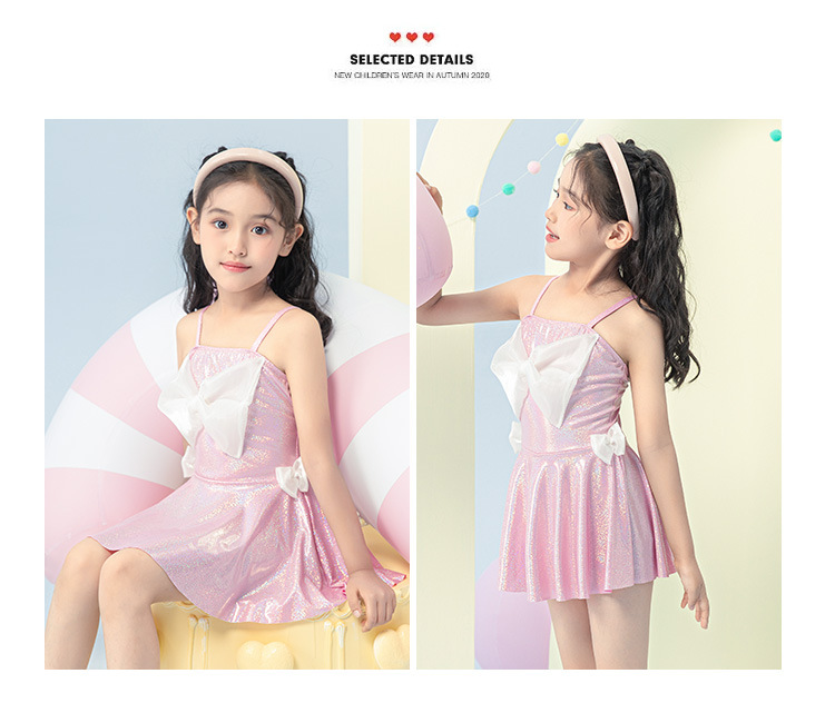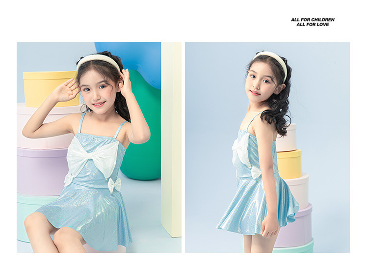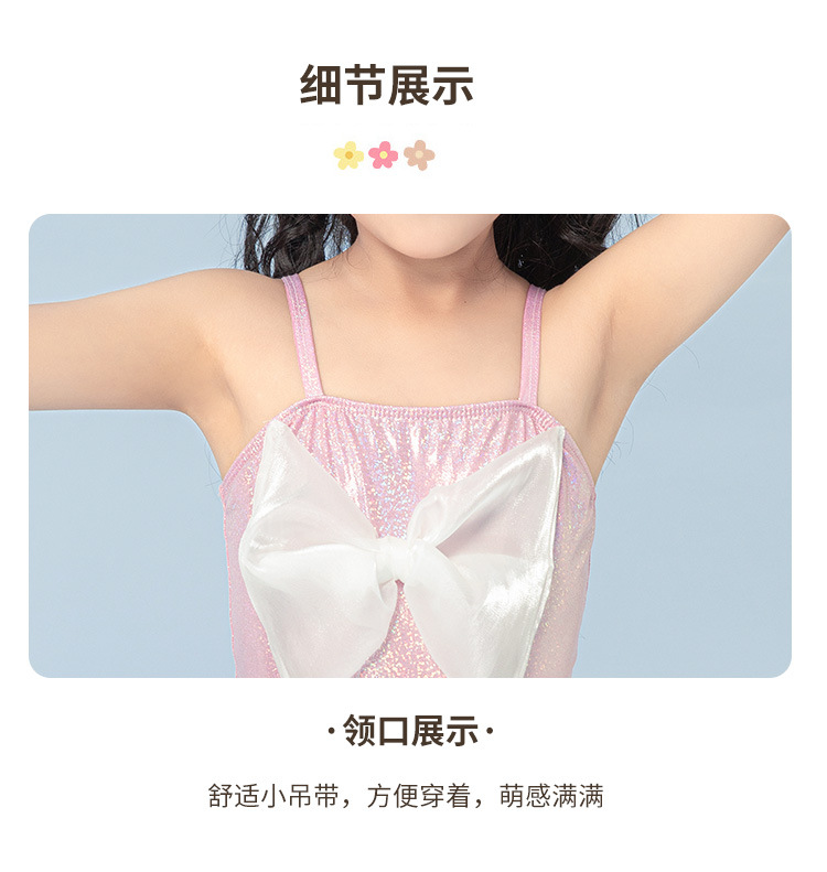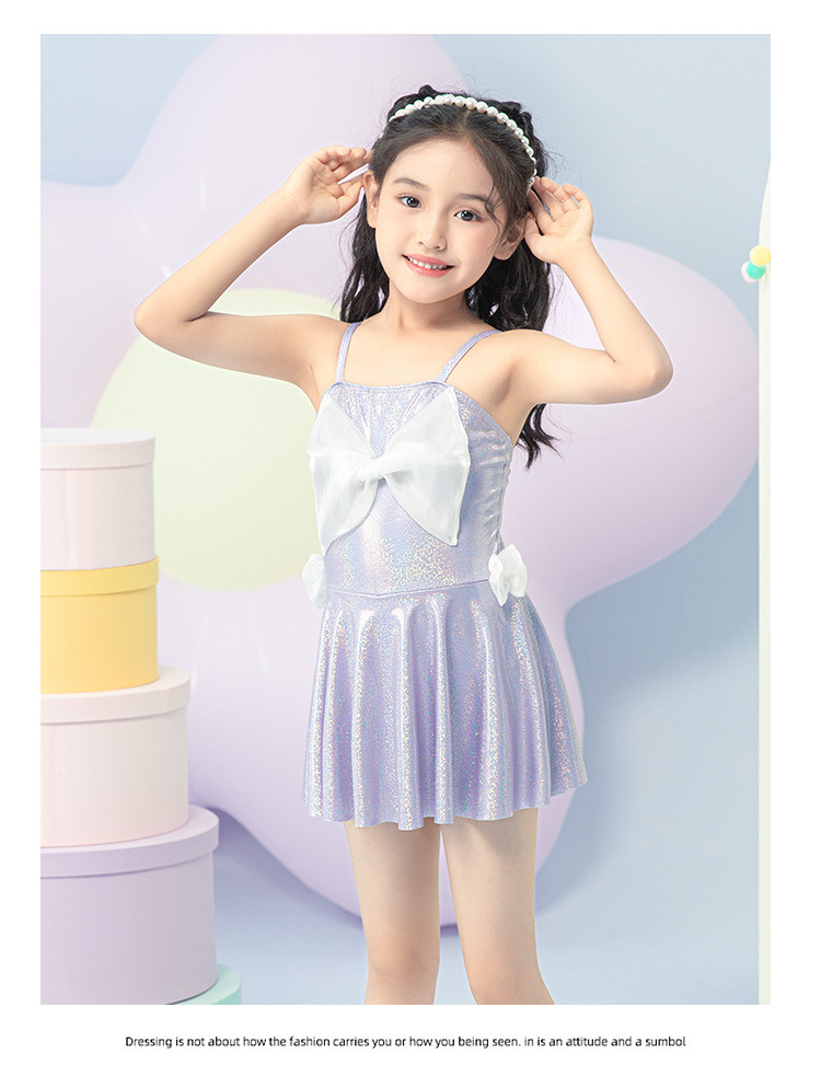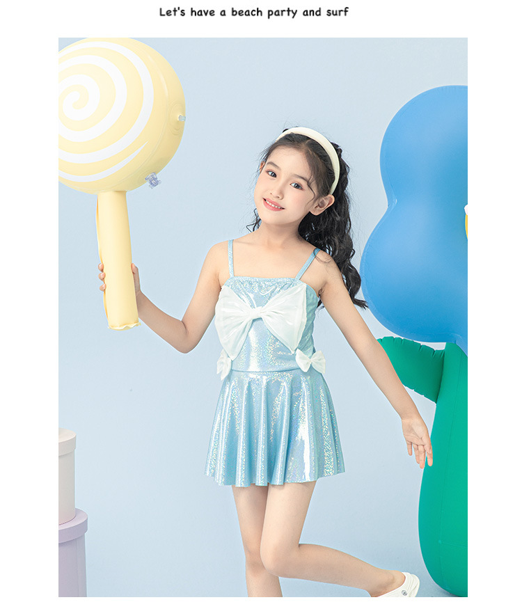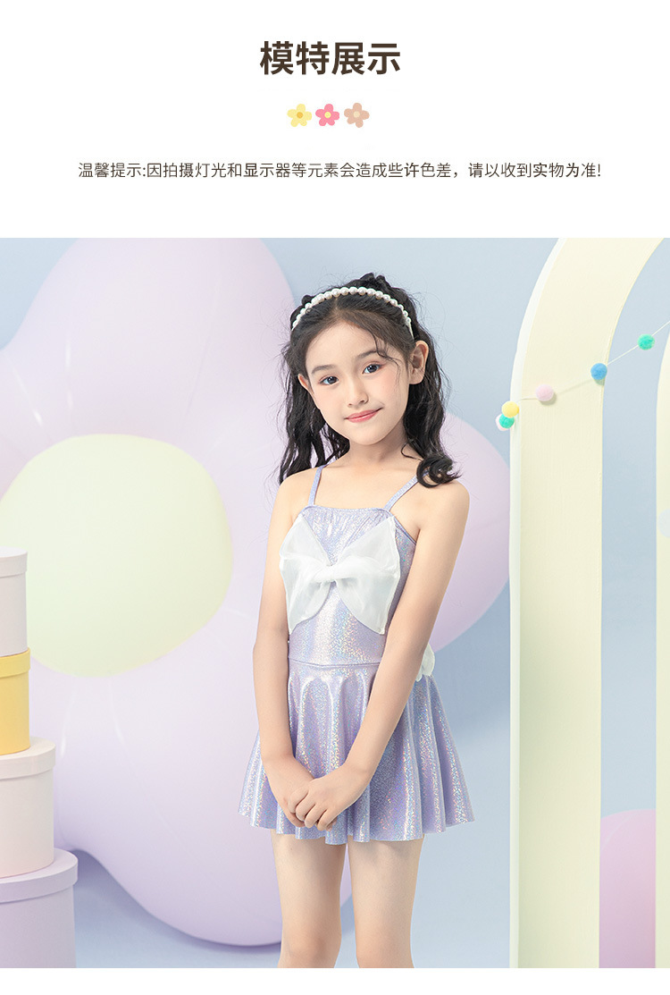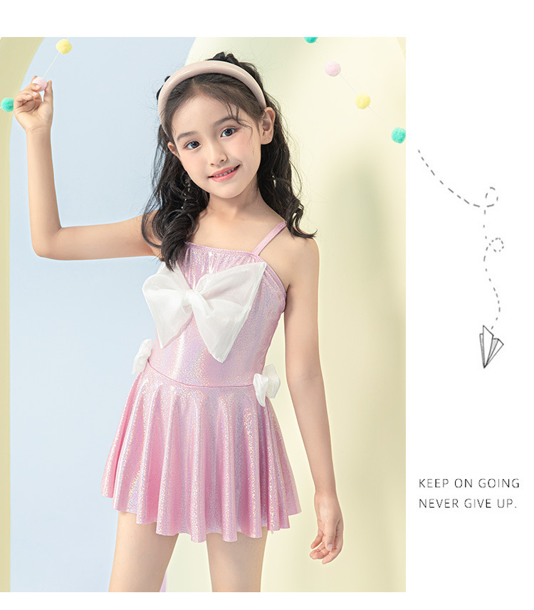 女童泳装夏季可爱连体吊带中小童宝宝公主裙式蝴蝶结速干度假泳装