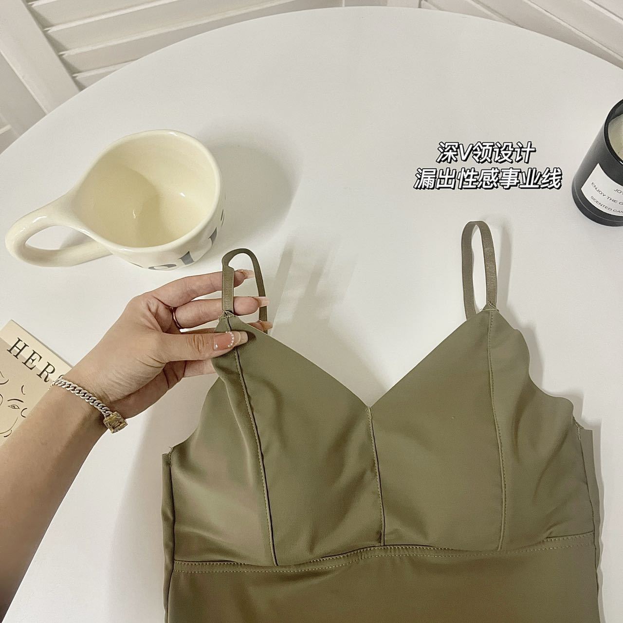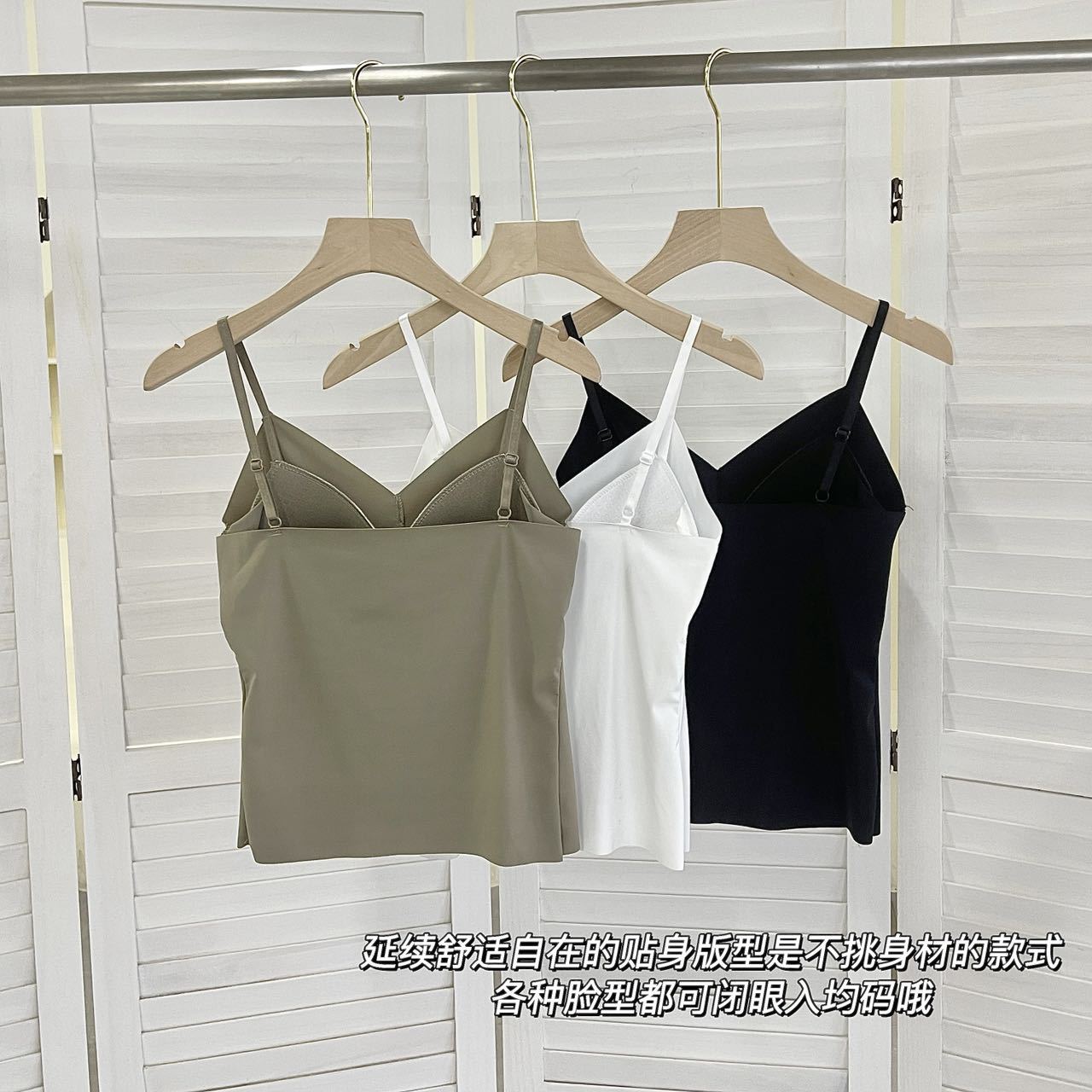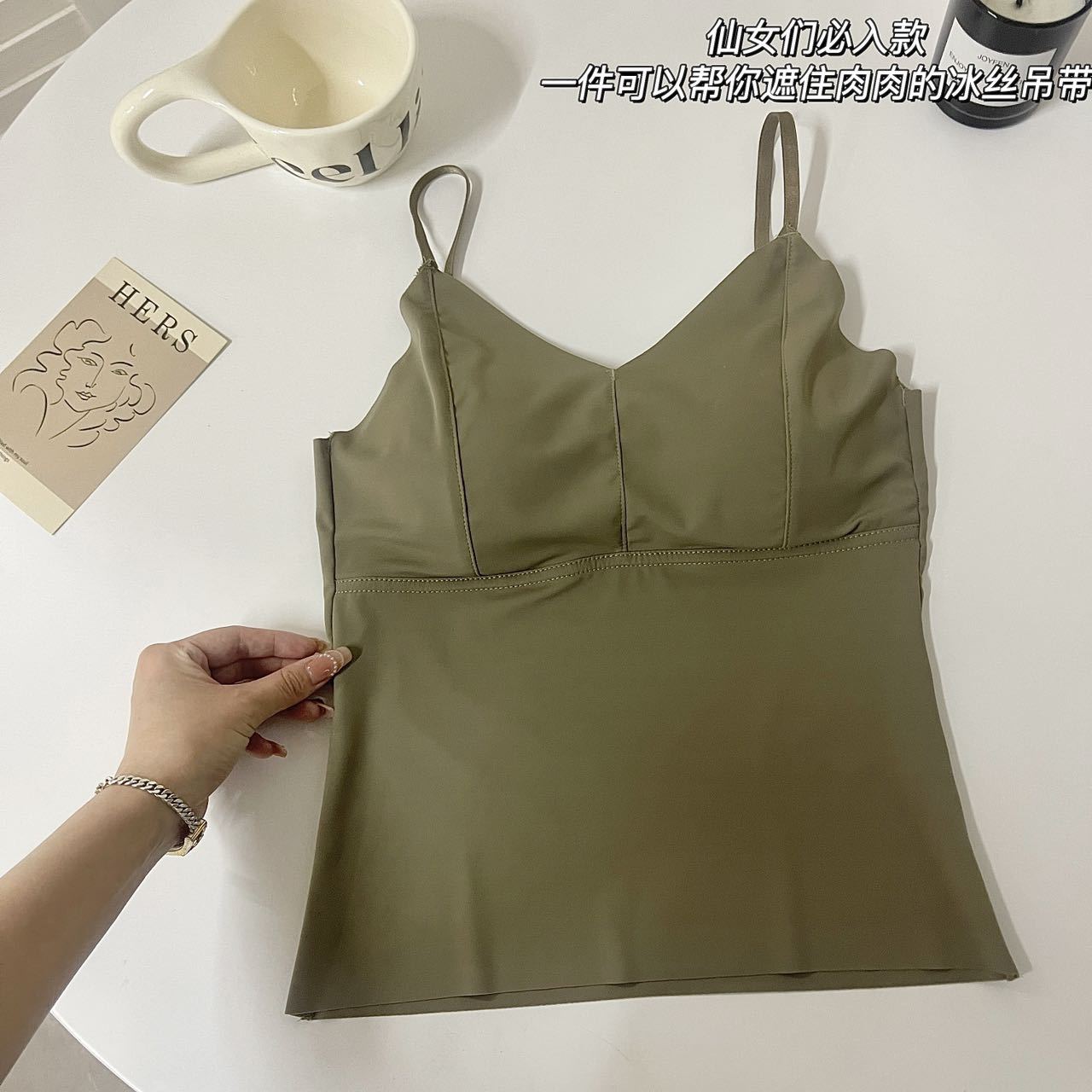 夏季薄款冰丝无痕美背吊带背心一体固定杯免穿文胸遮副乳打底内衣