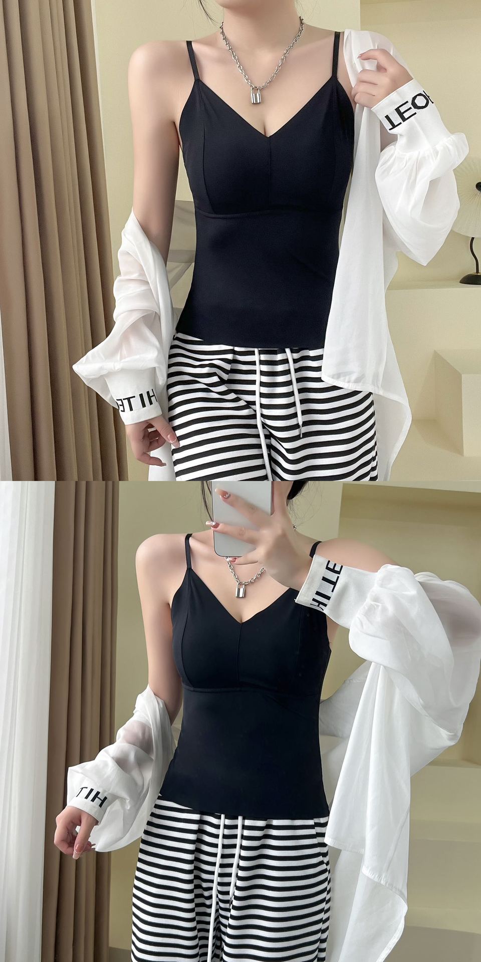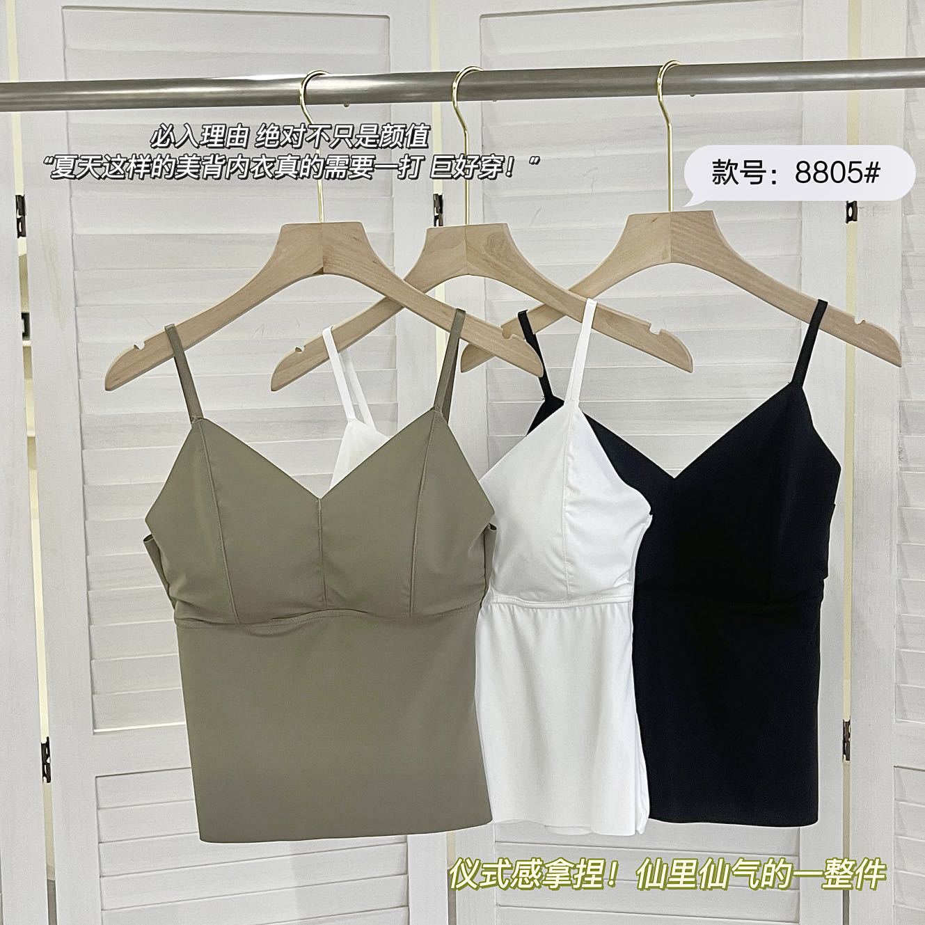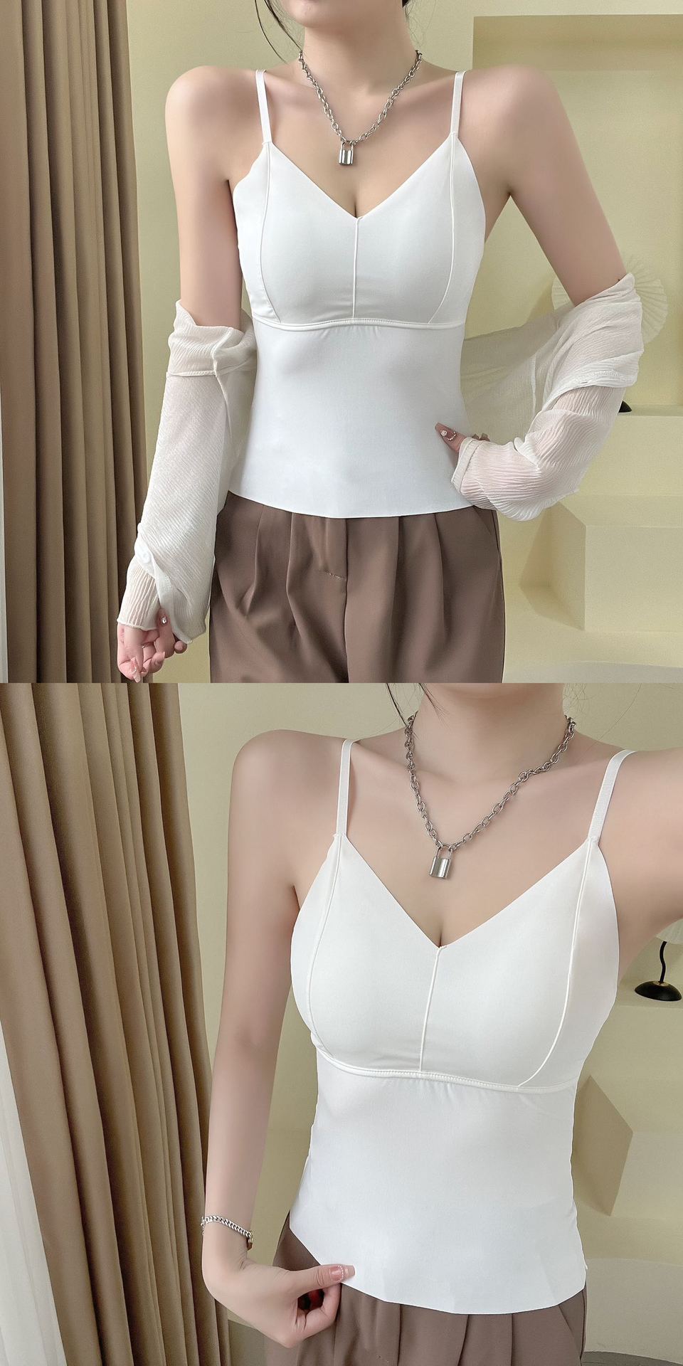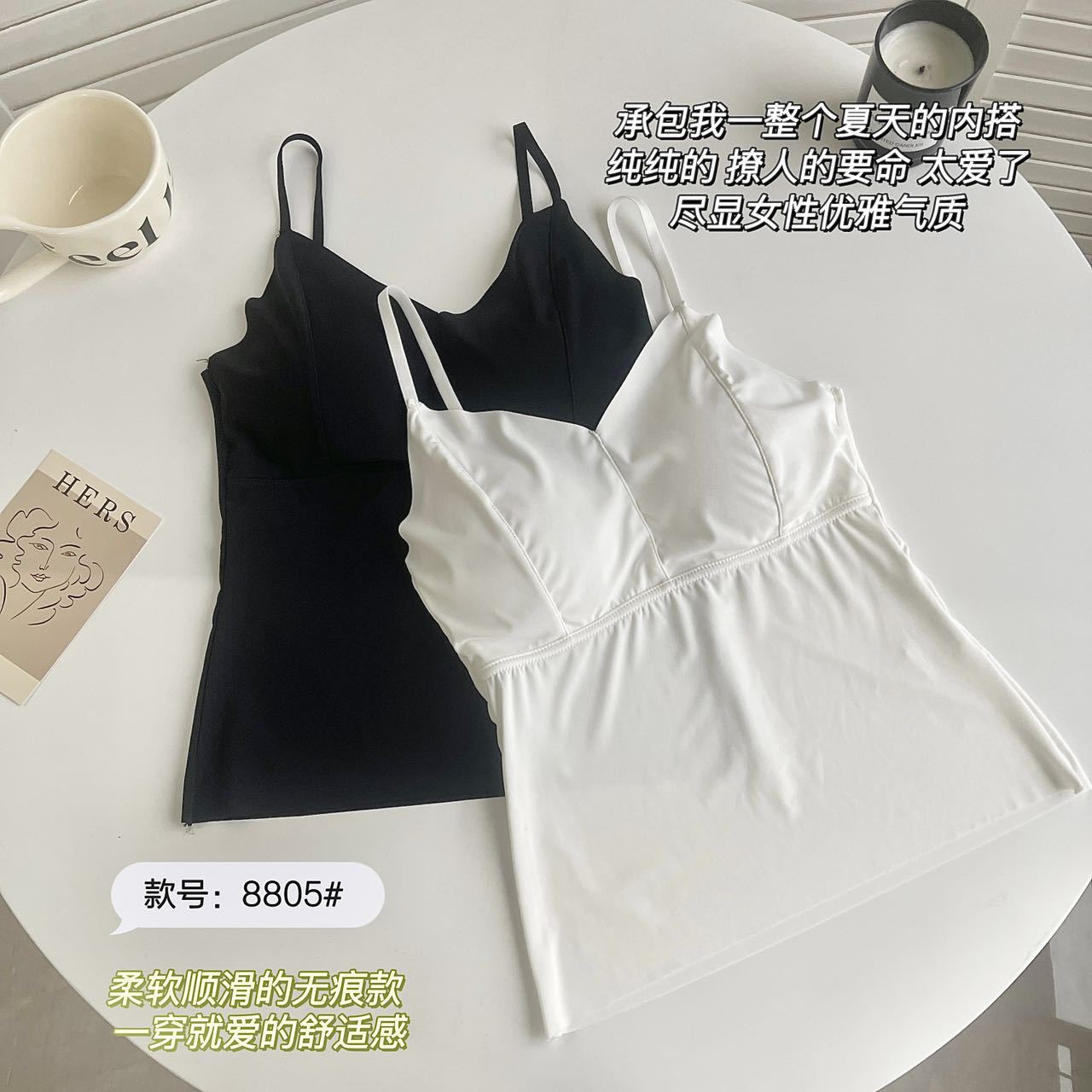 夏季薄款冰丝无痕美背吊带背心一体固定杯免穿文胸遮副乳打底内衣