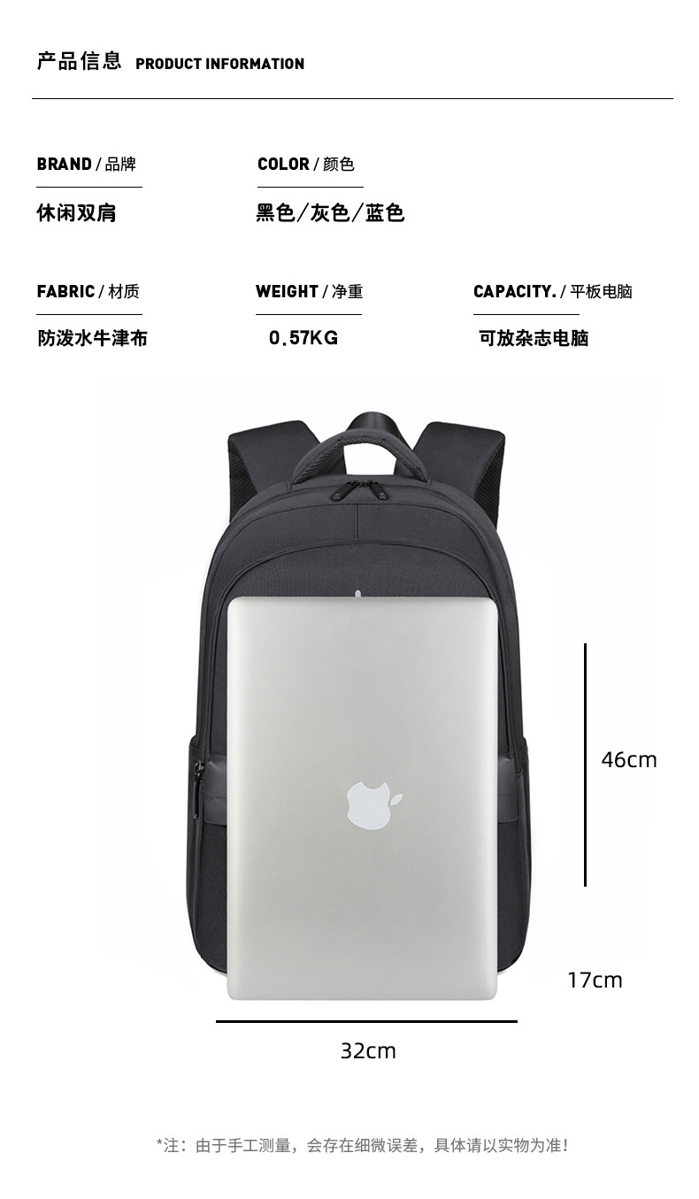 新款男士双肩包商务休闲电脑包出差旅行背包耐磨书包