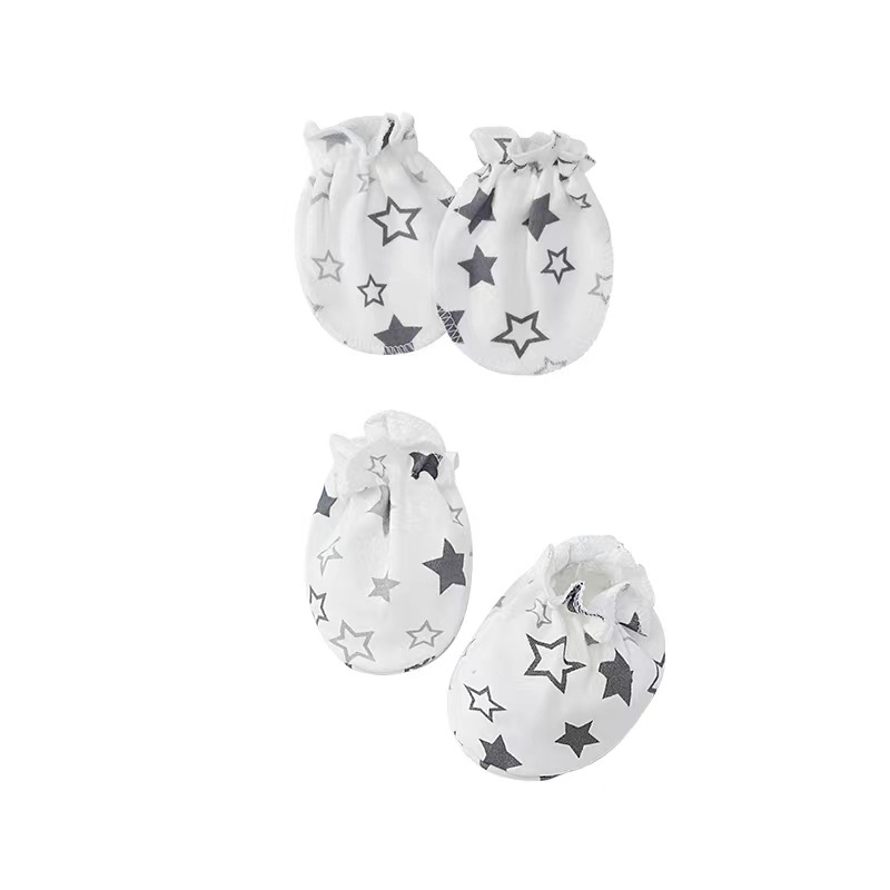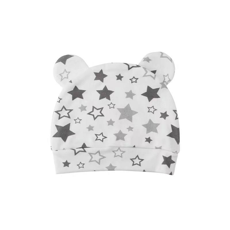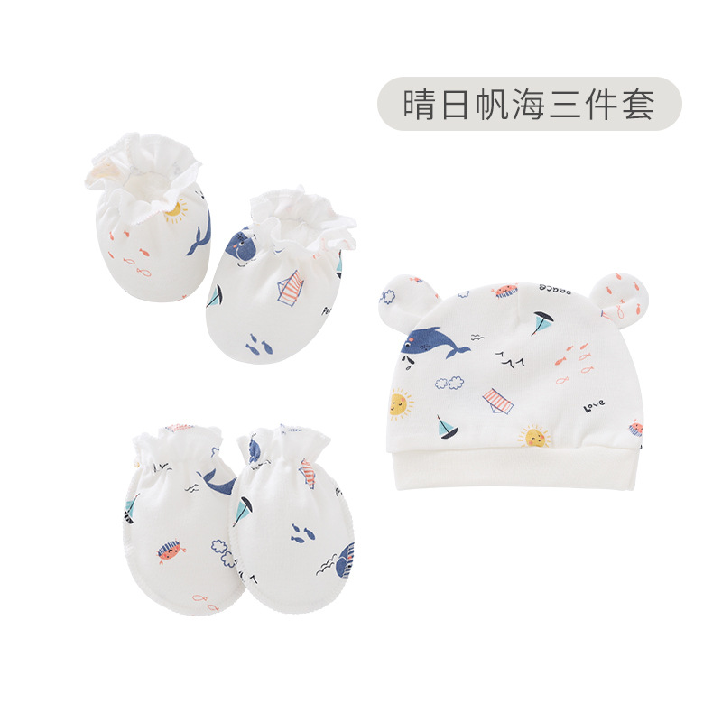 外贸欧美双耳印花新生儿胎帽婴儿手套脚套婴儿帽手脚套82104货源