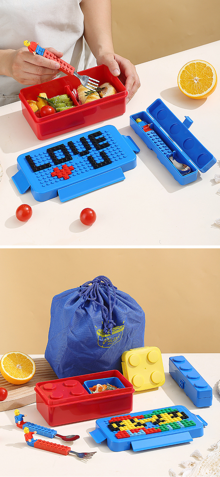 积木分格饭盒便携手提餐盒学生上班族带饭微波加热简约轻食便当盒