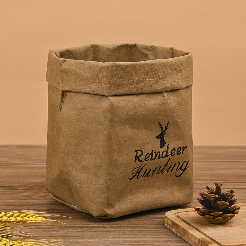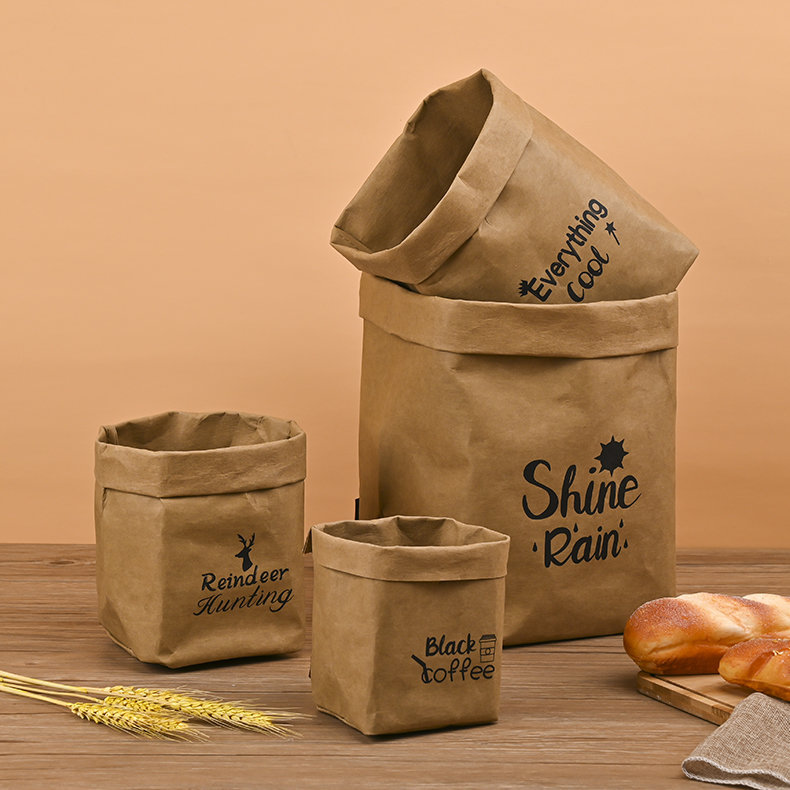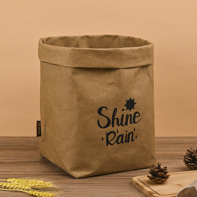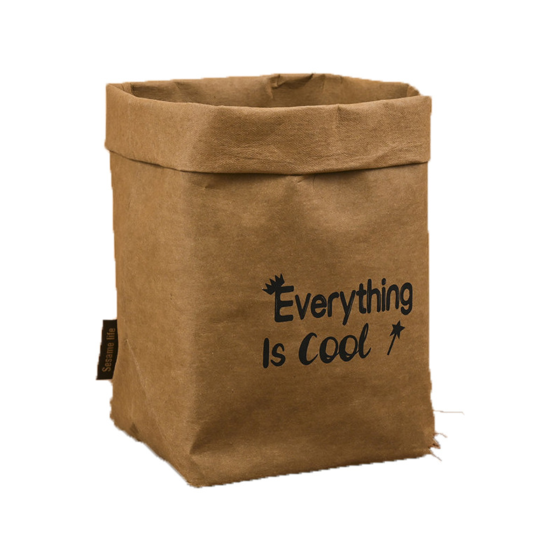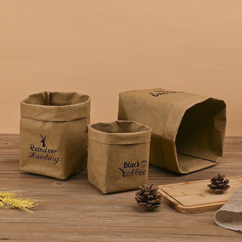 可水洗牛皮纸收纳袋定 制方底打包袋包装纸可印字加厚淋膜袋ins风