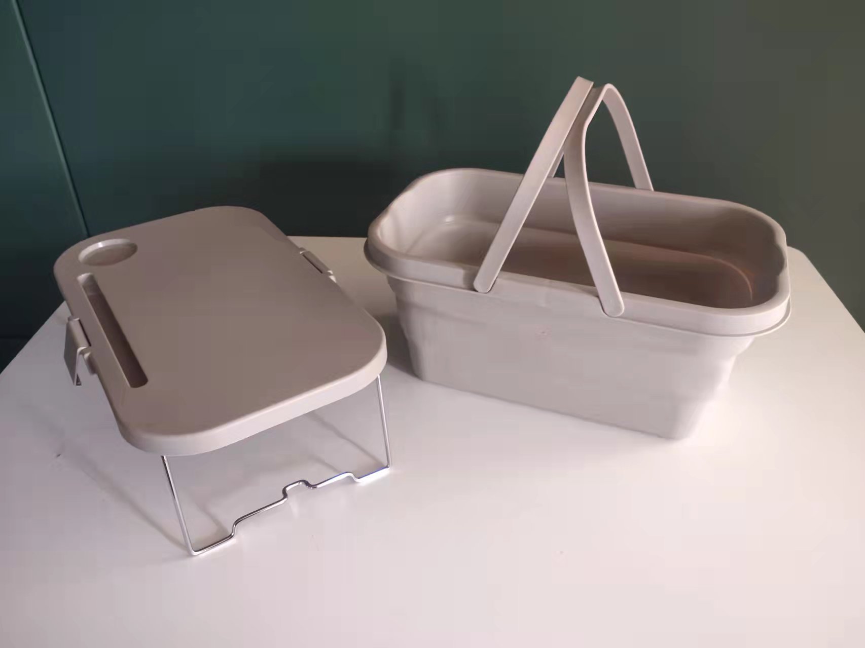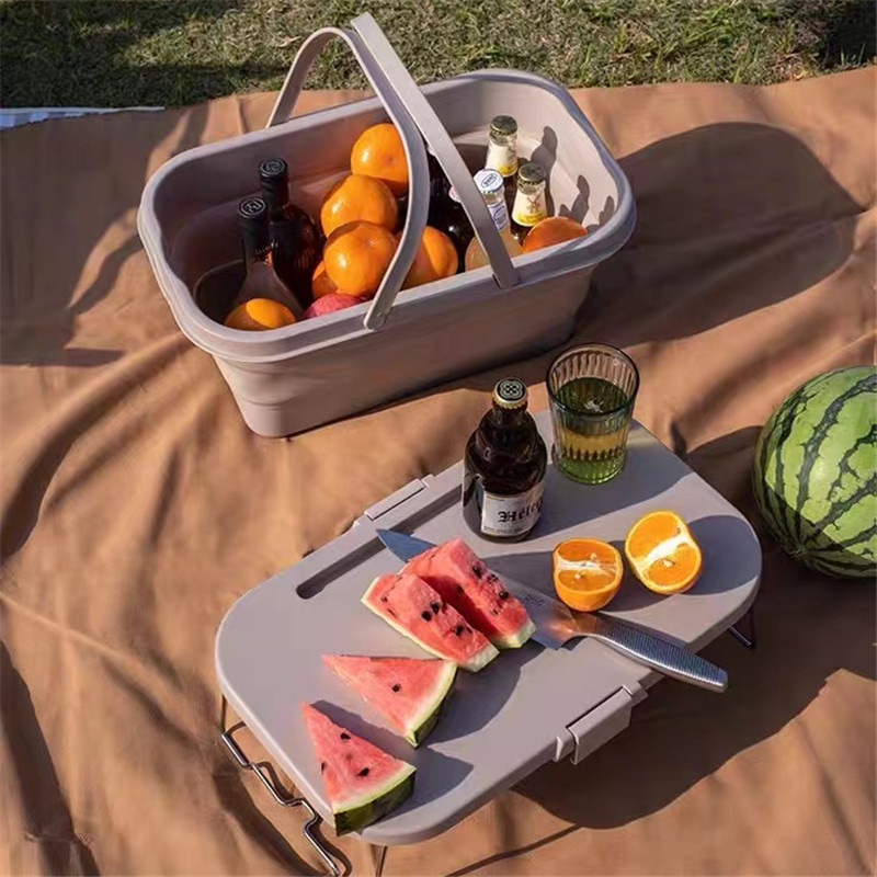 户外野营用品野餐篮带桌子可折叠手提购物篮多功能野炊桌子折叠桶