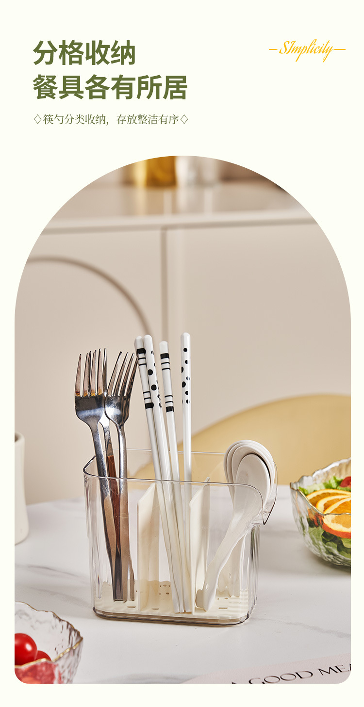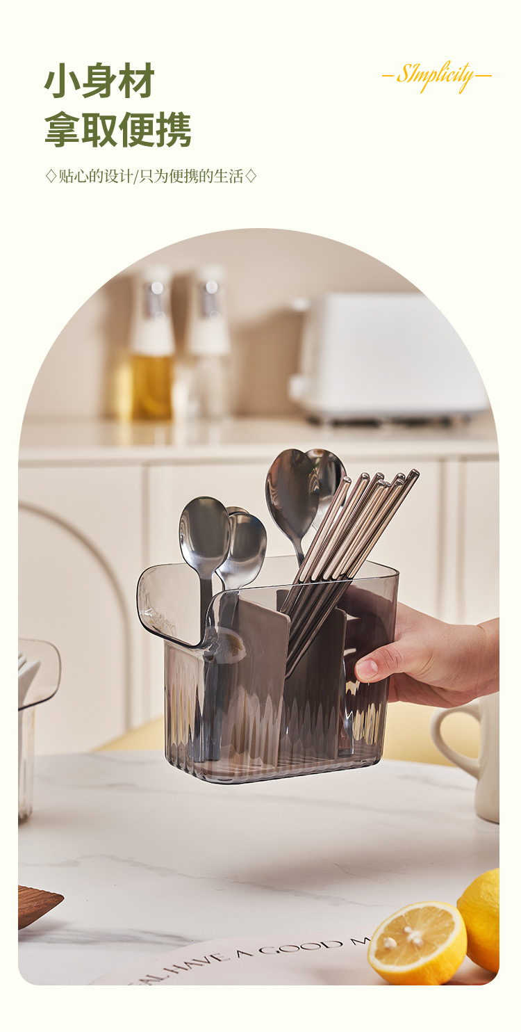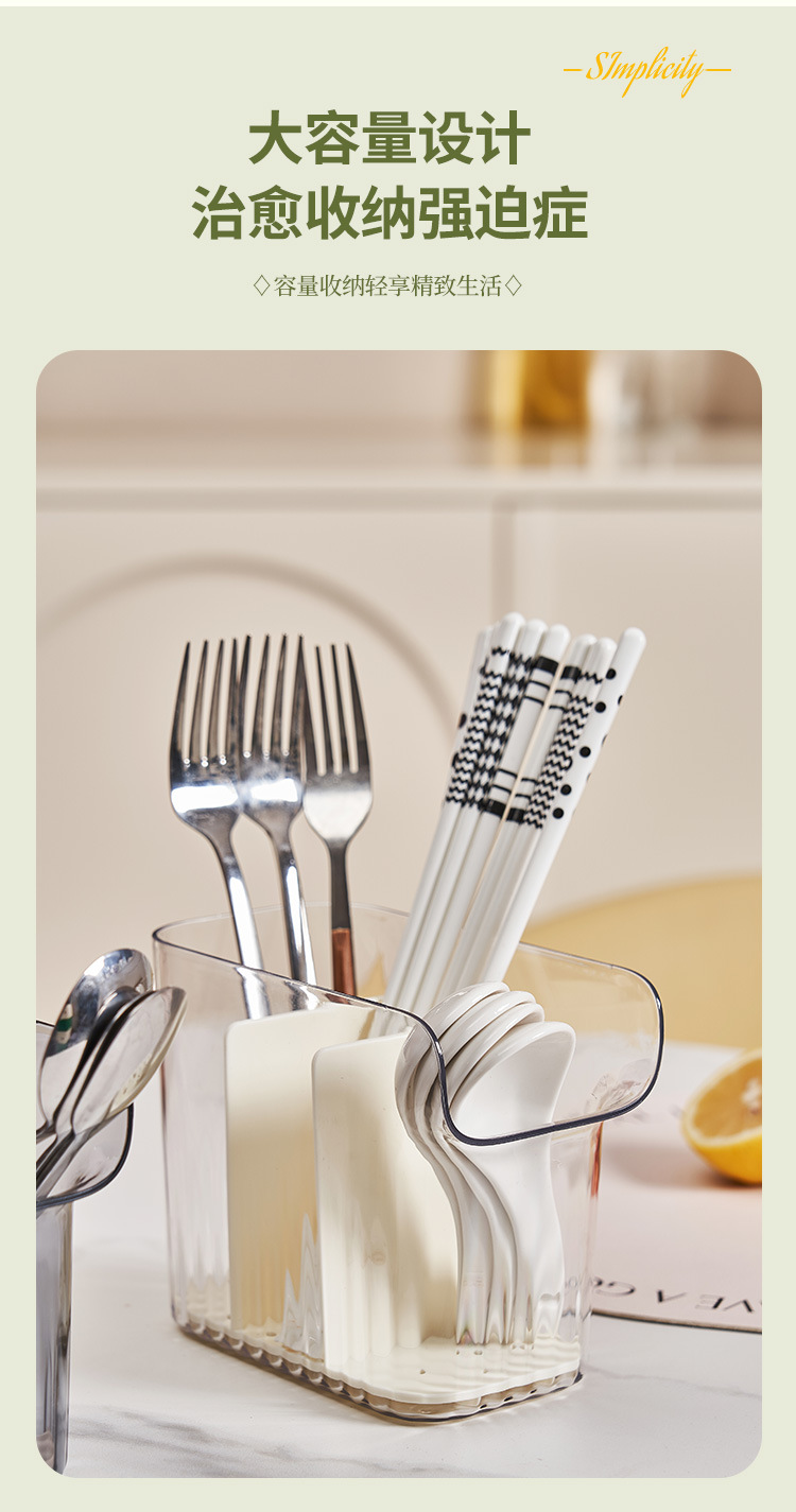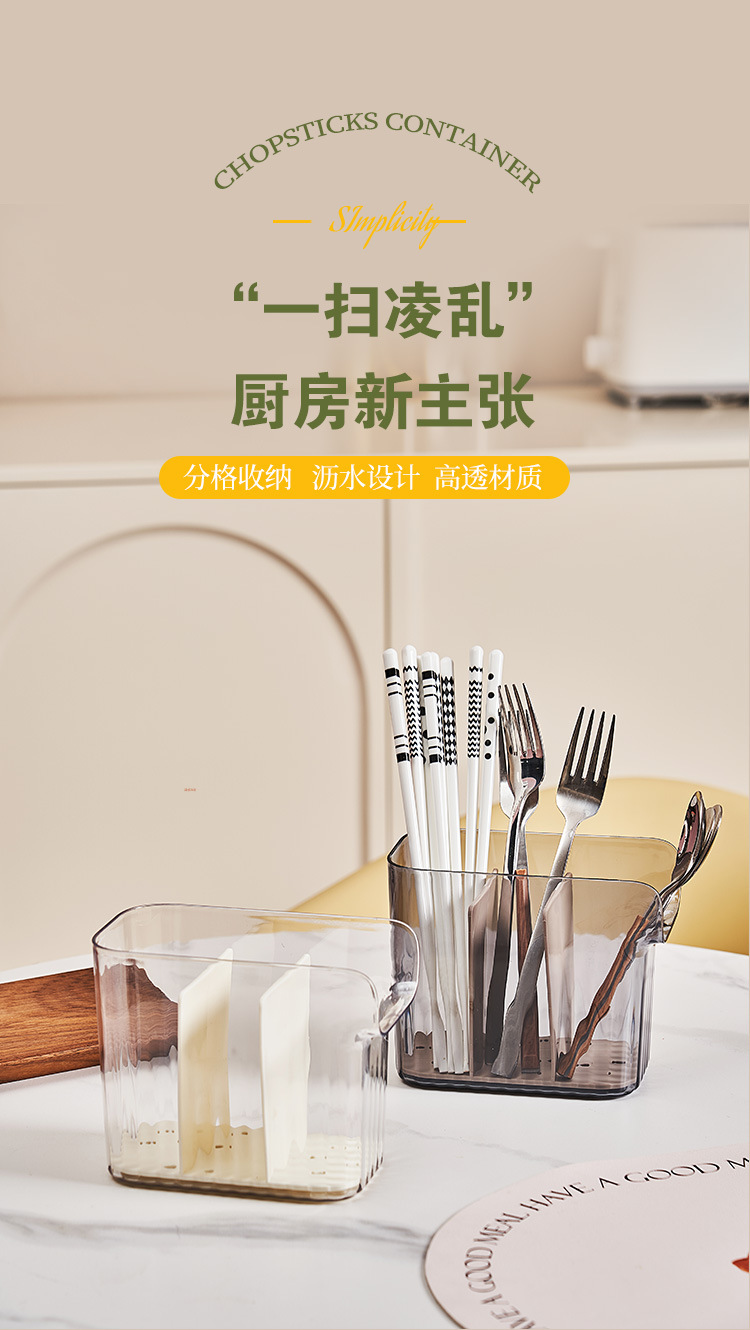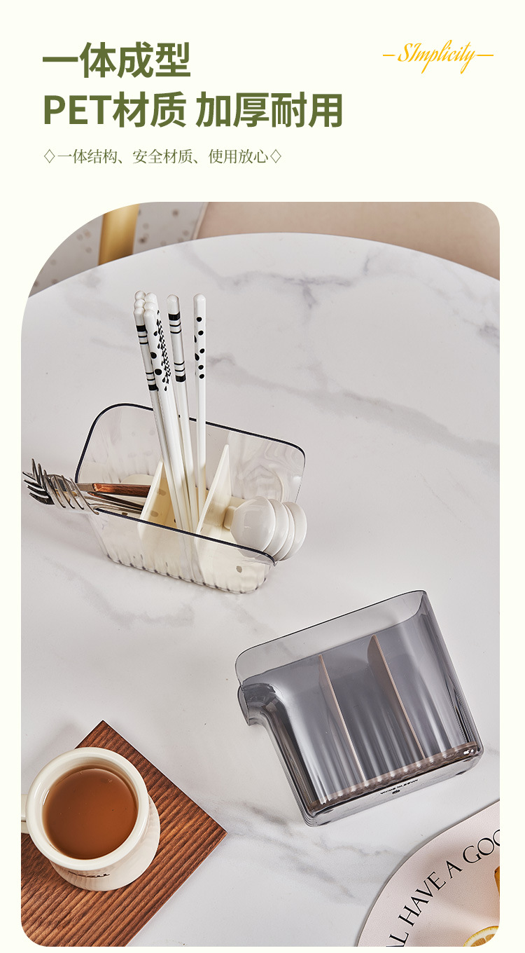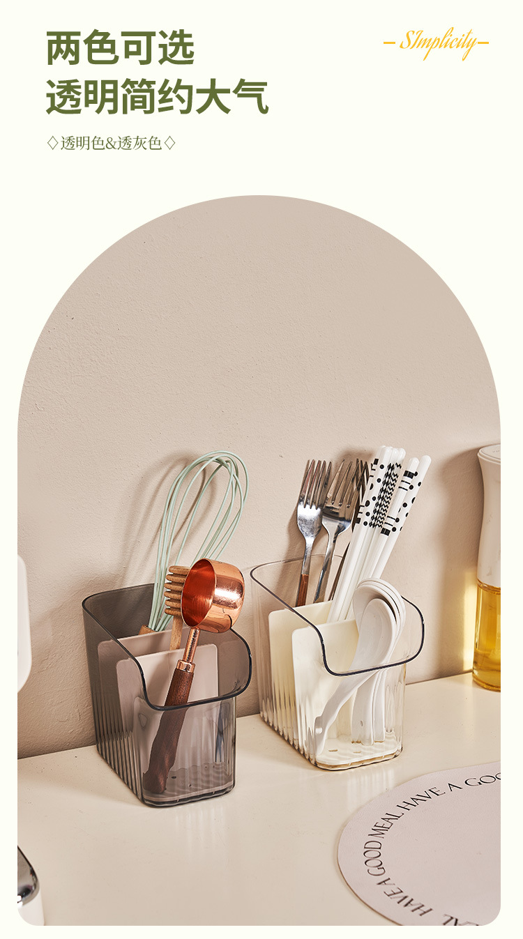 ins风简约筷笼波浪纹透明PET厨房筷子筒分格式刀叉汤勺收纳桶