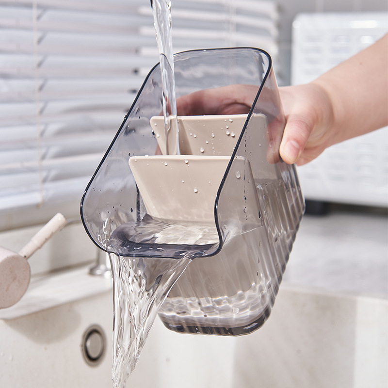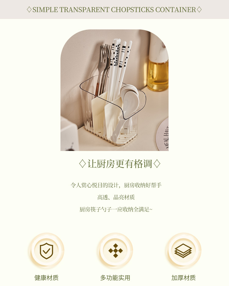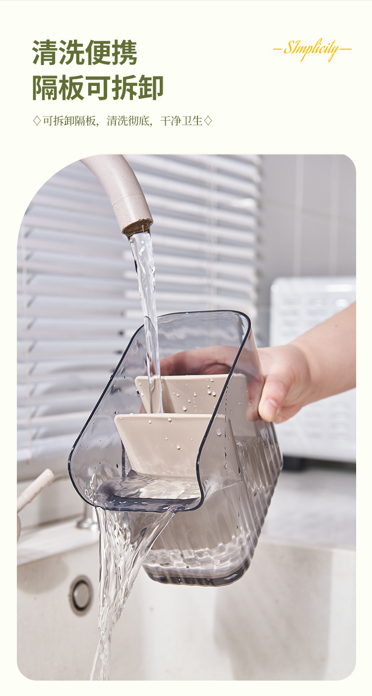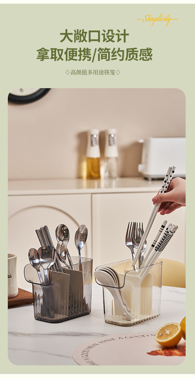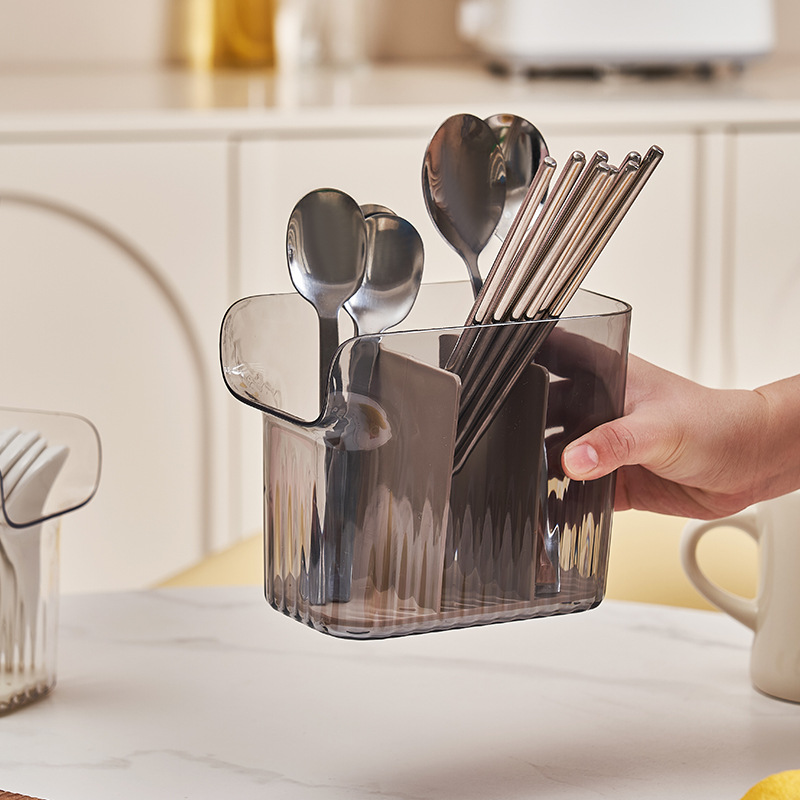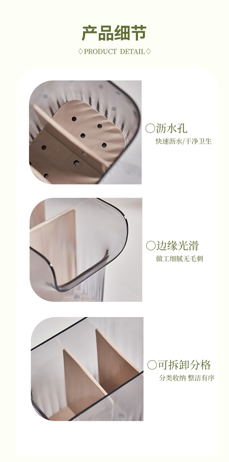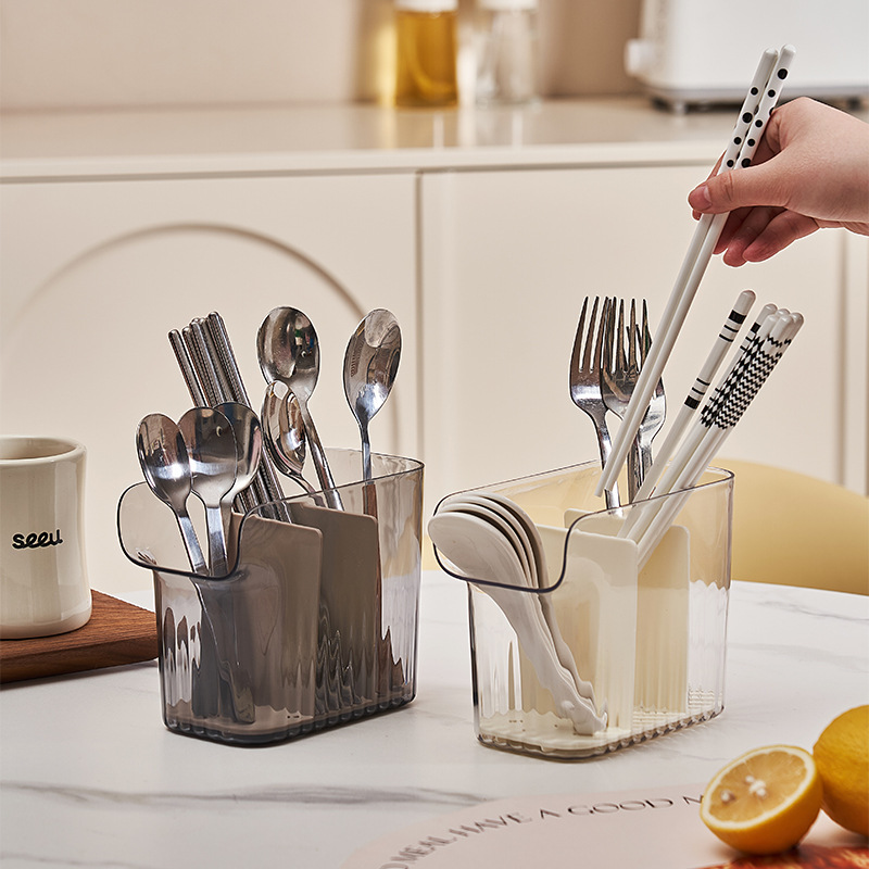 ins风简约筷笼波浪纹透明PET厨房筷子筒分格式刀叉汤勺收纳桶