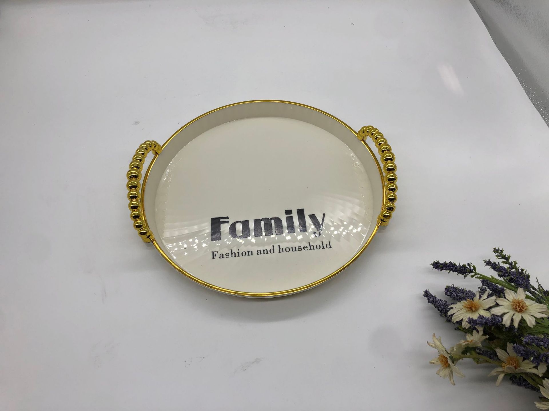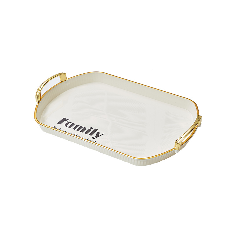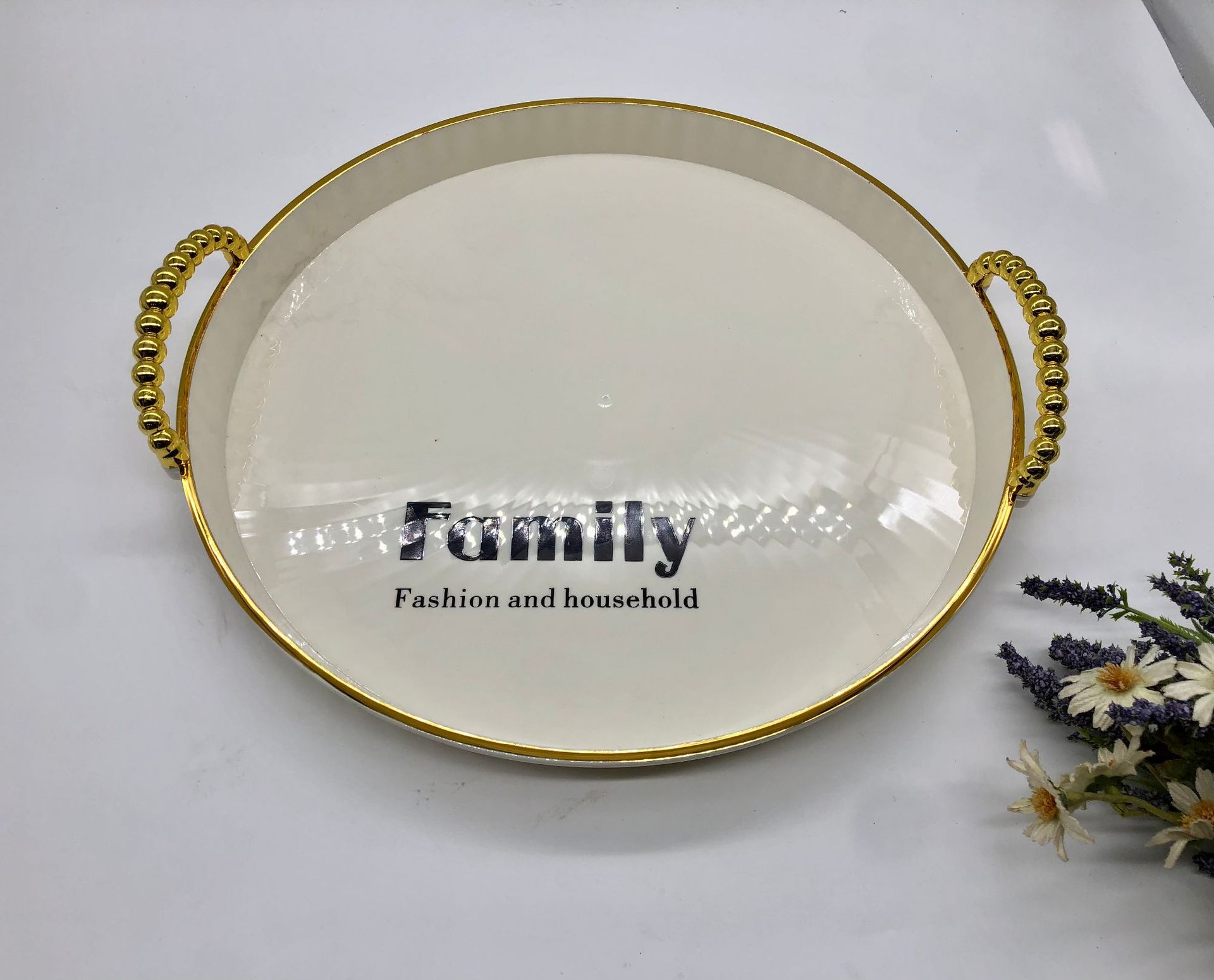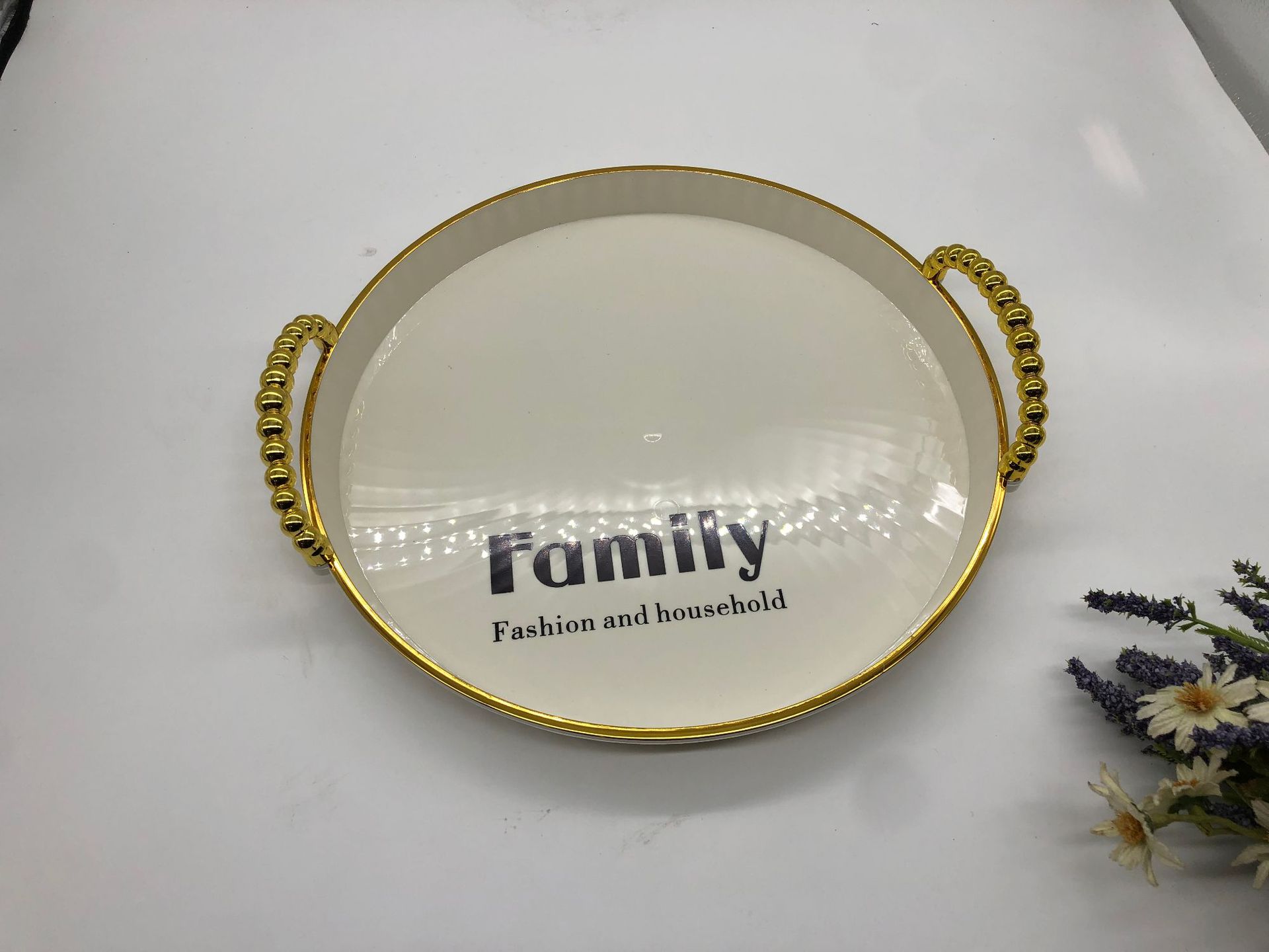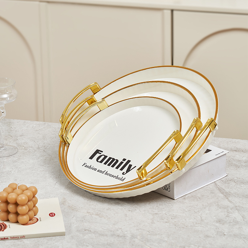 法式奶油色果盘大号轻奢带提手水果盘KTV客厅茶几收纳托盘干果盘