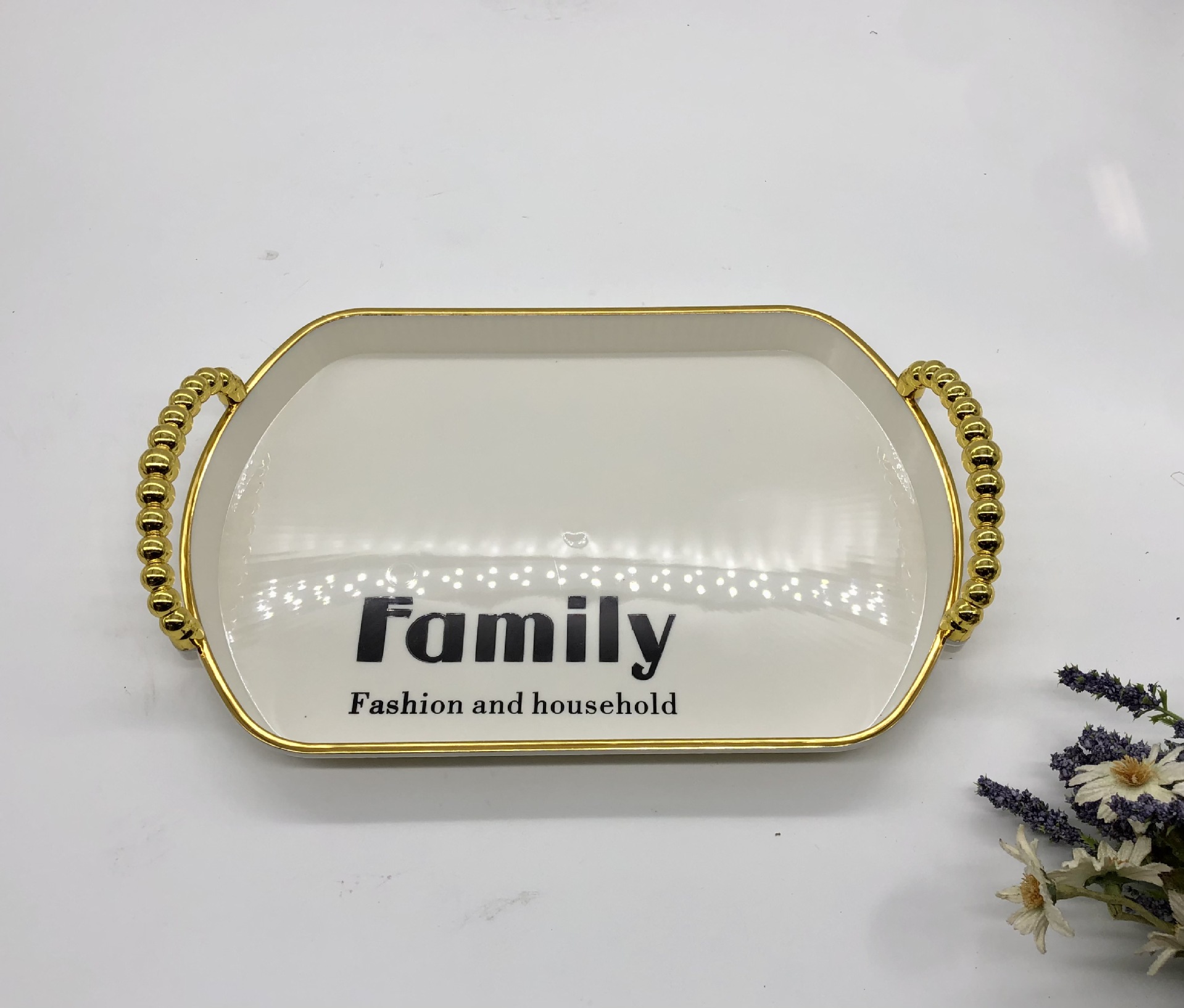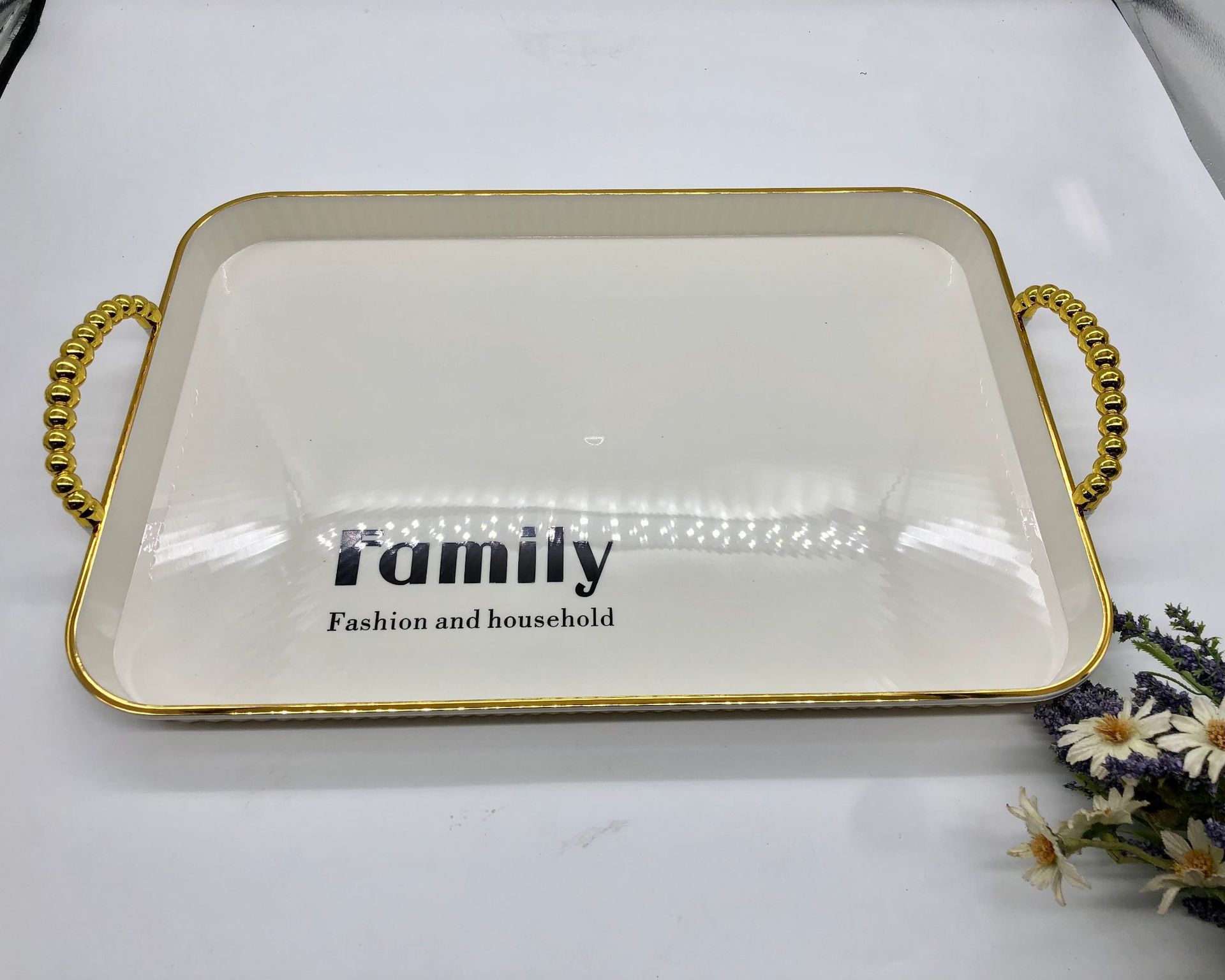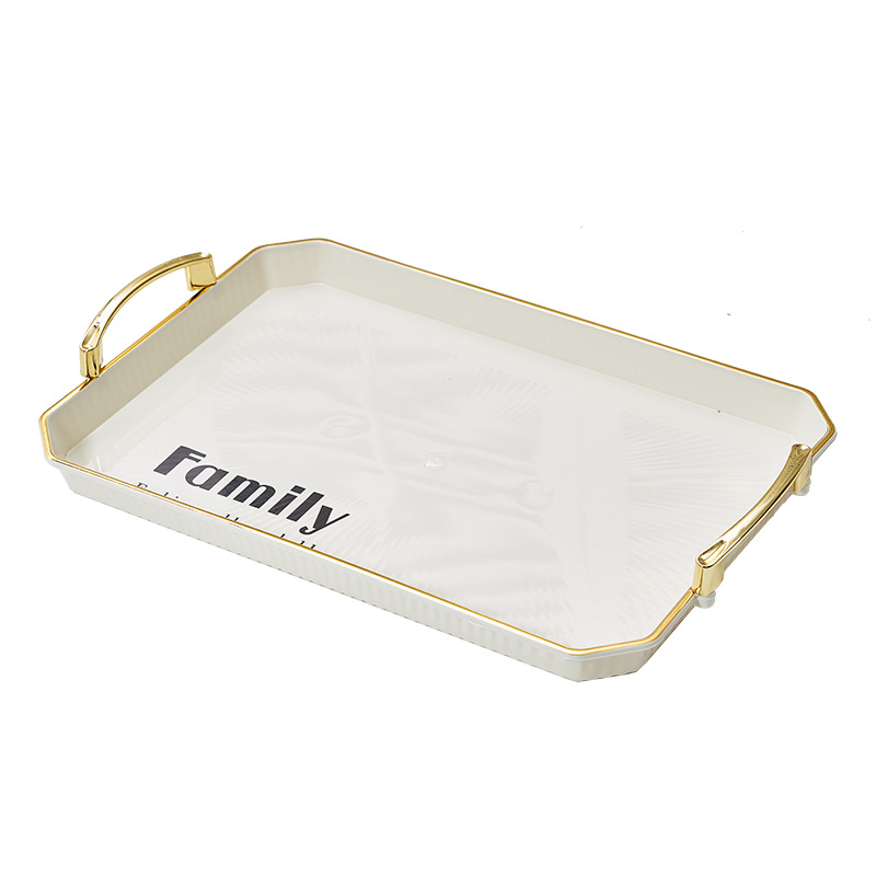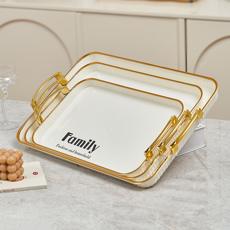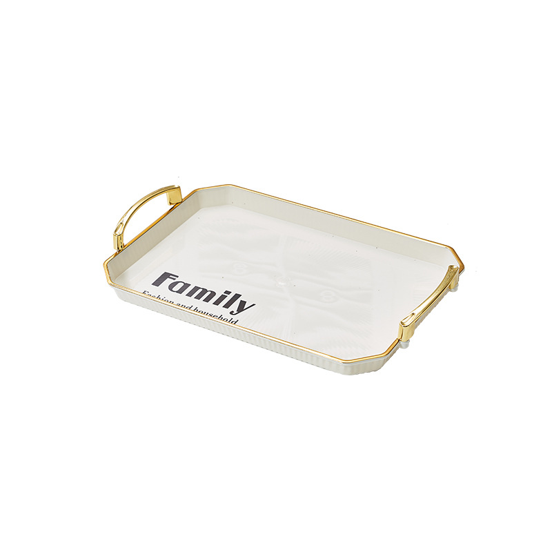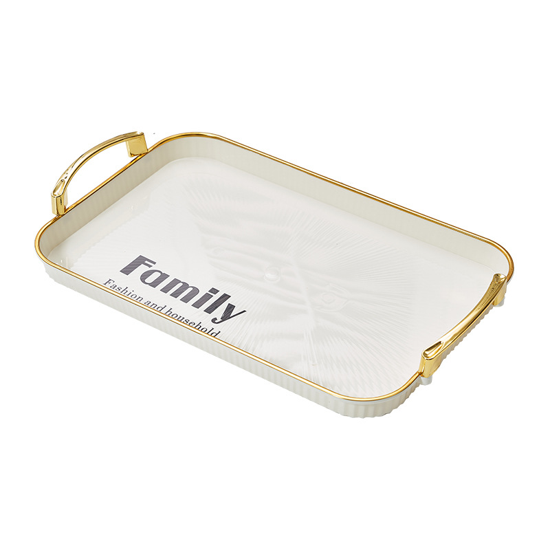 法式奶油色果盘大号轻奢带提手水果盘KTV客厅茶几收纳托盘干果盘