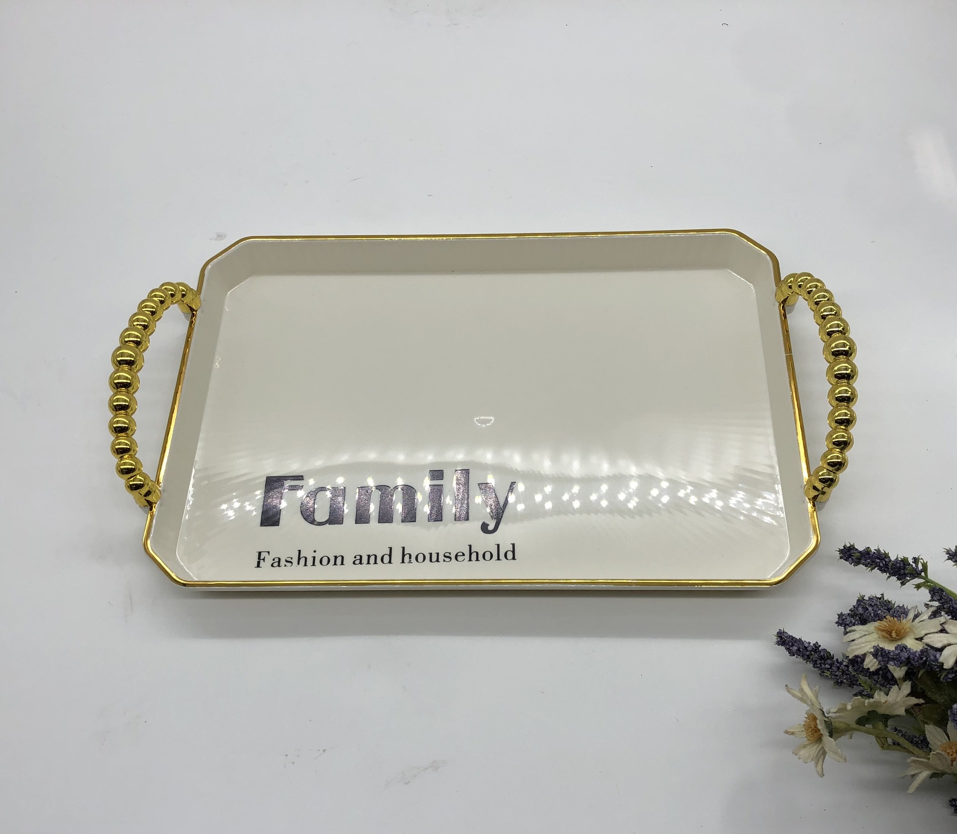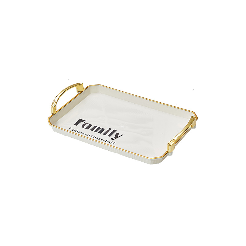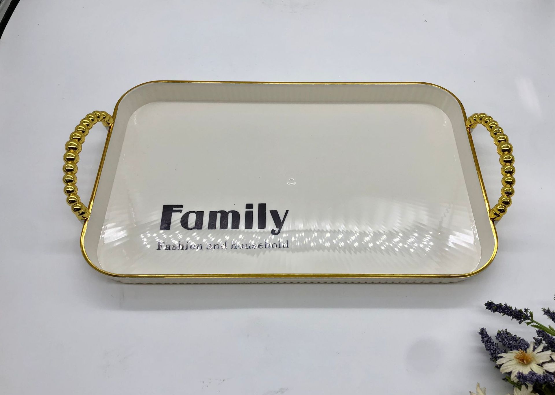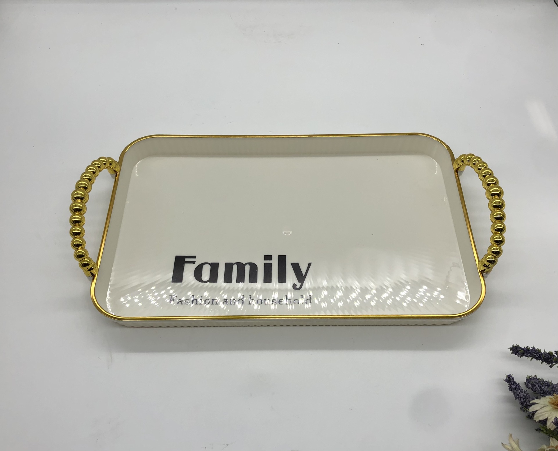 法式奶油色果盘大号轻奢带提手水果盘KTV客厅茶几收纳托盘干果盘