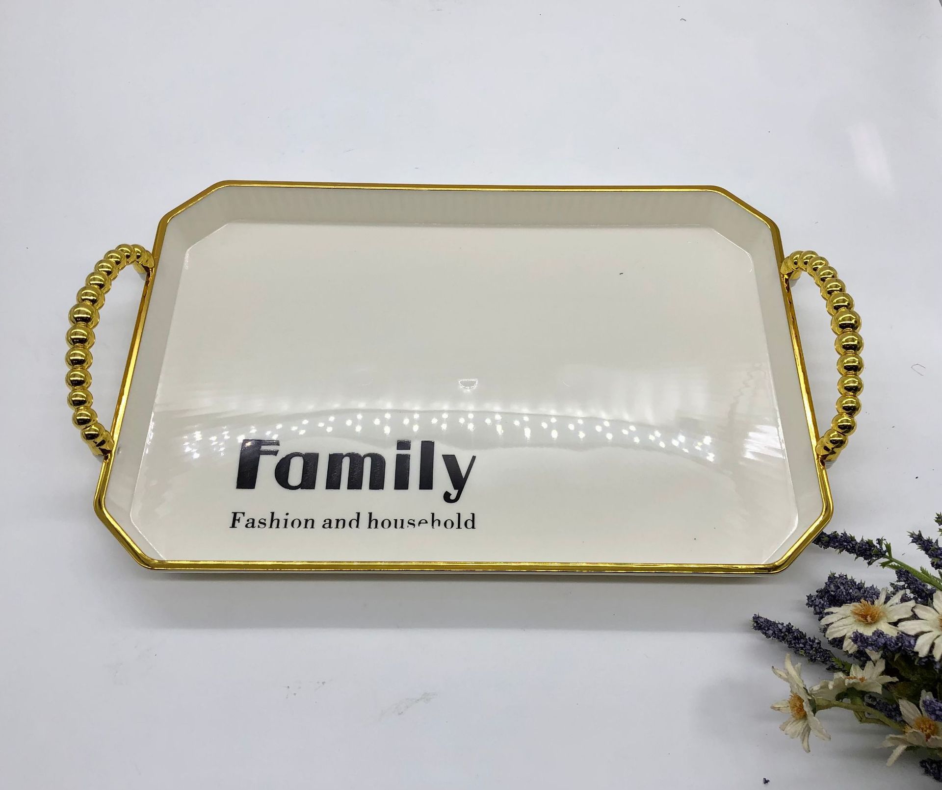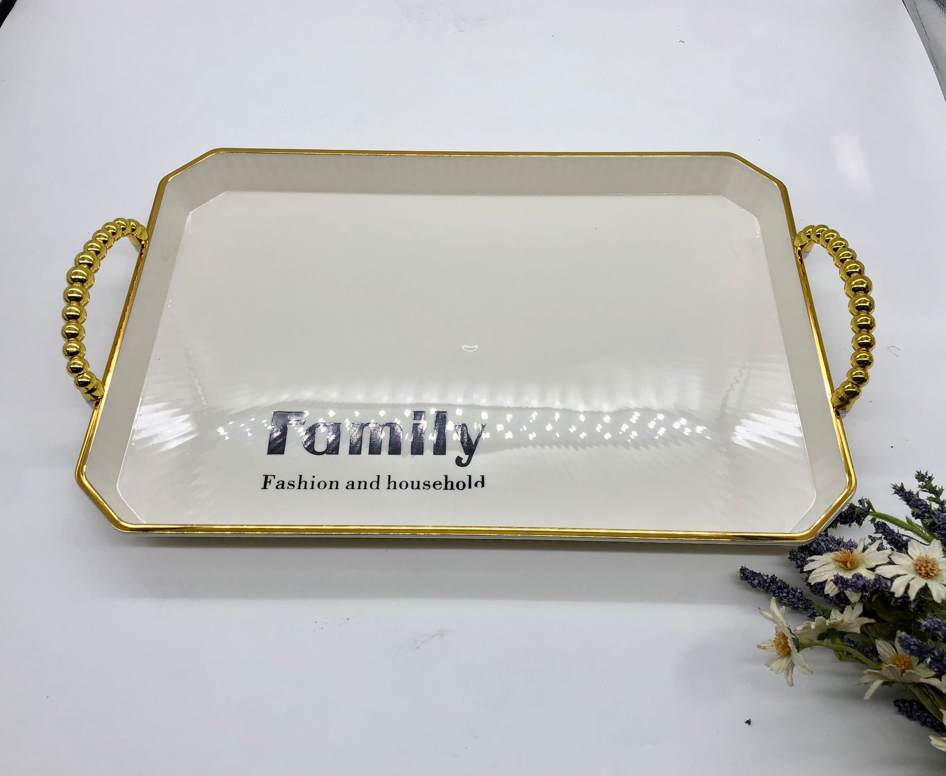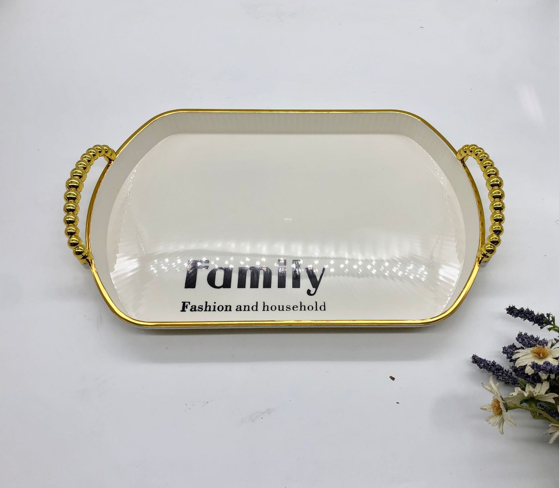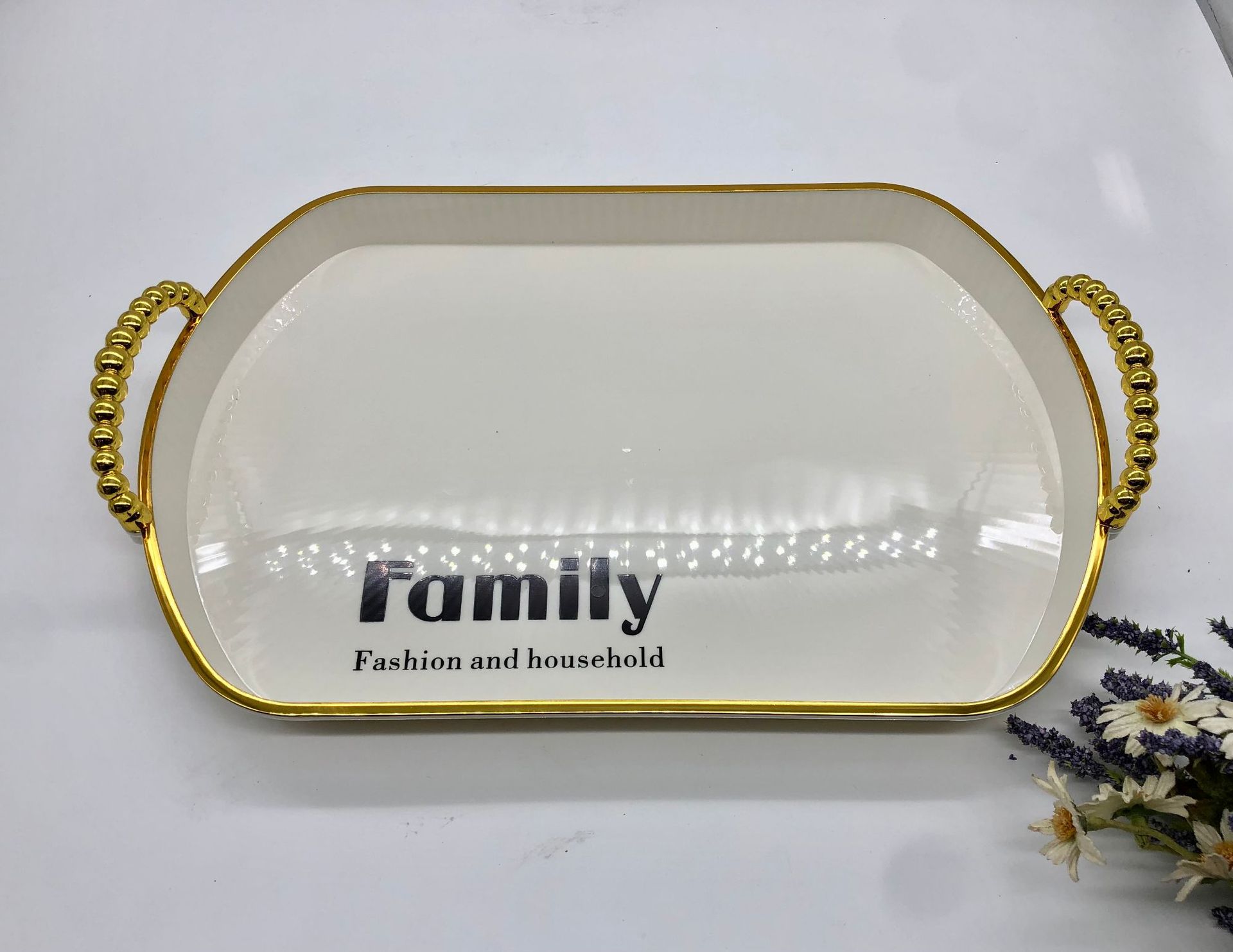 法式奶油色果盘大号轻奢带提手水果盘KTV客厅茶几收纳托盘干果盘