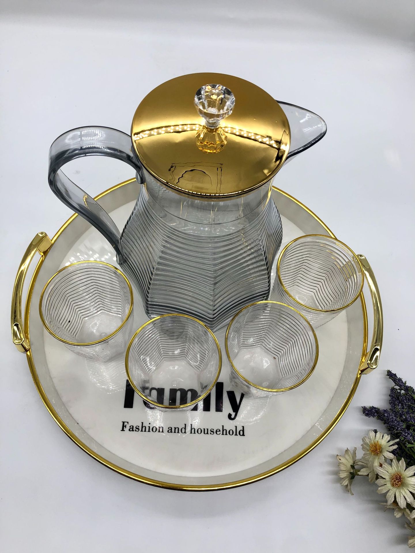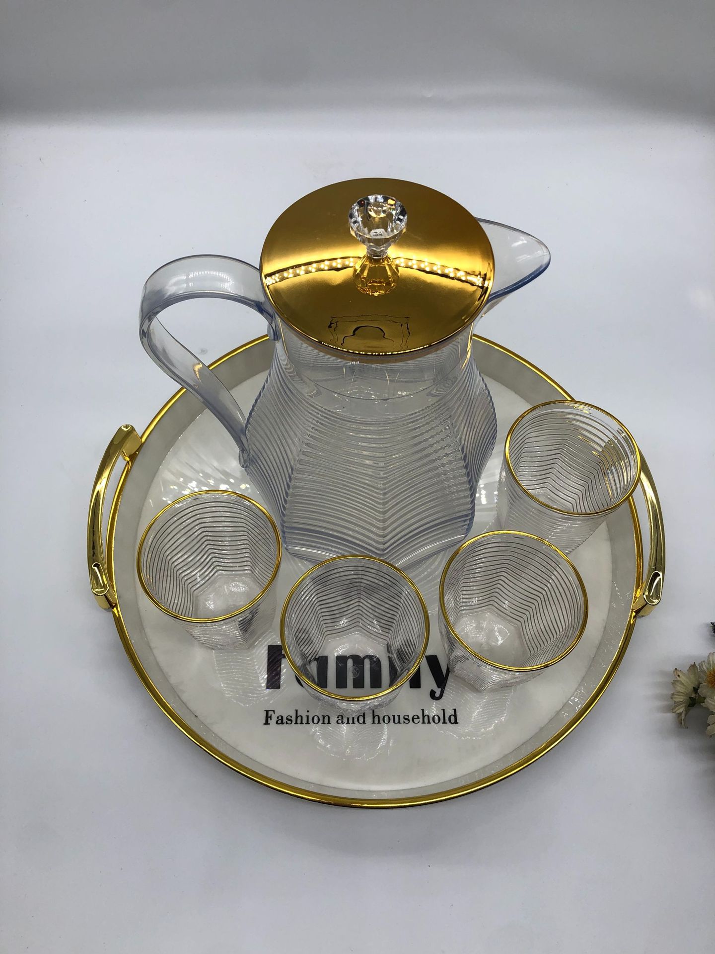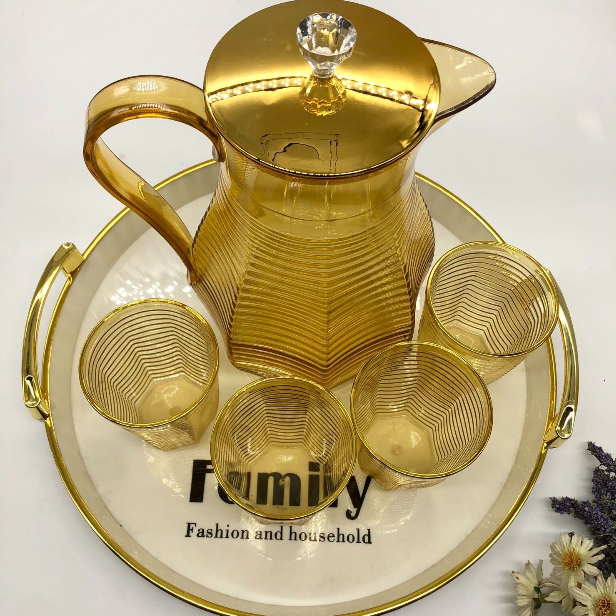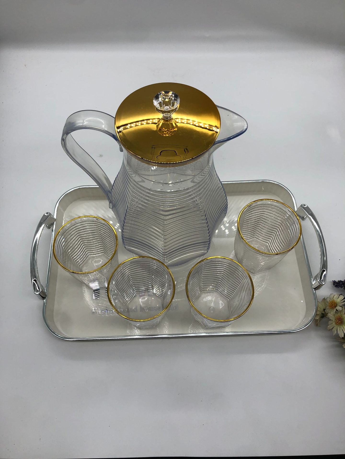 金边PET塑料桌面茶壶 带盖菱形凉白开收纳茶壶套装现代简约小茶杯