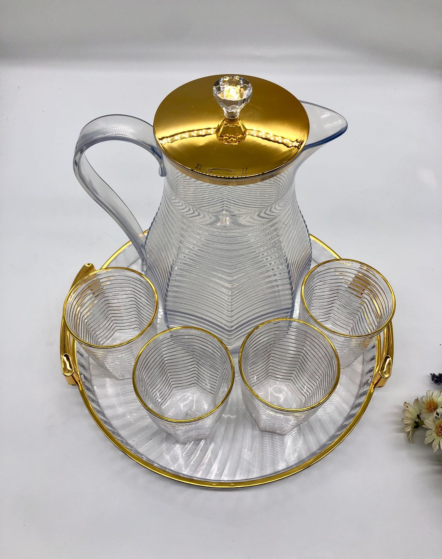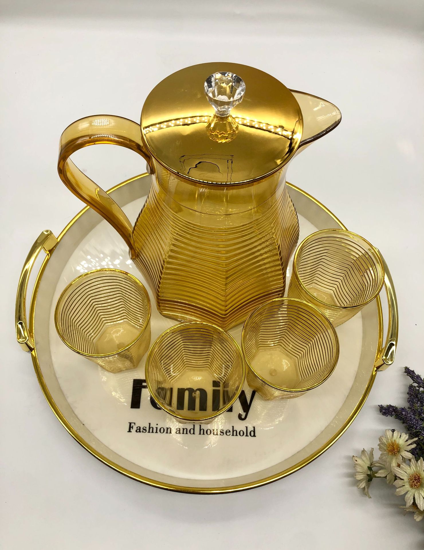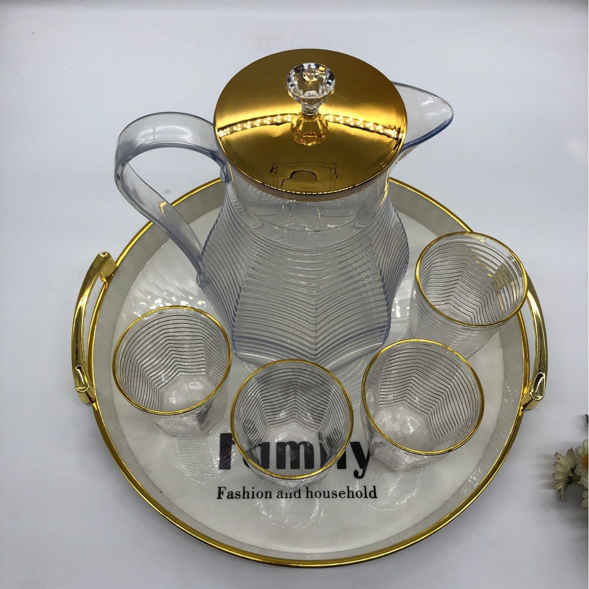 金边PET塑料桌面茶壶 带盖菱形凉白开收纳茶壶套装现代简约小茶杯