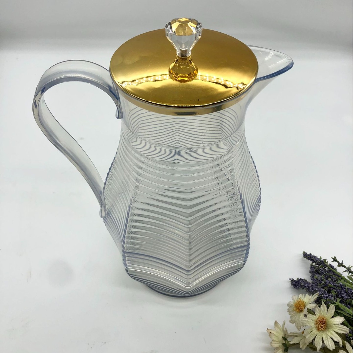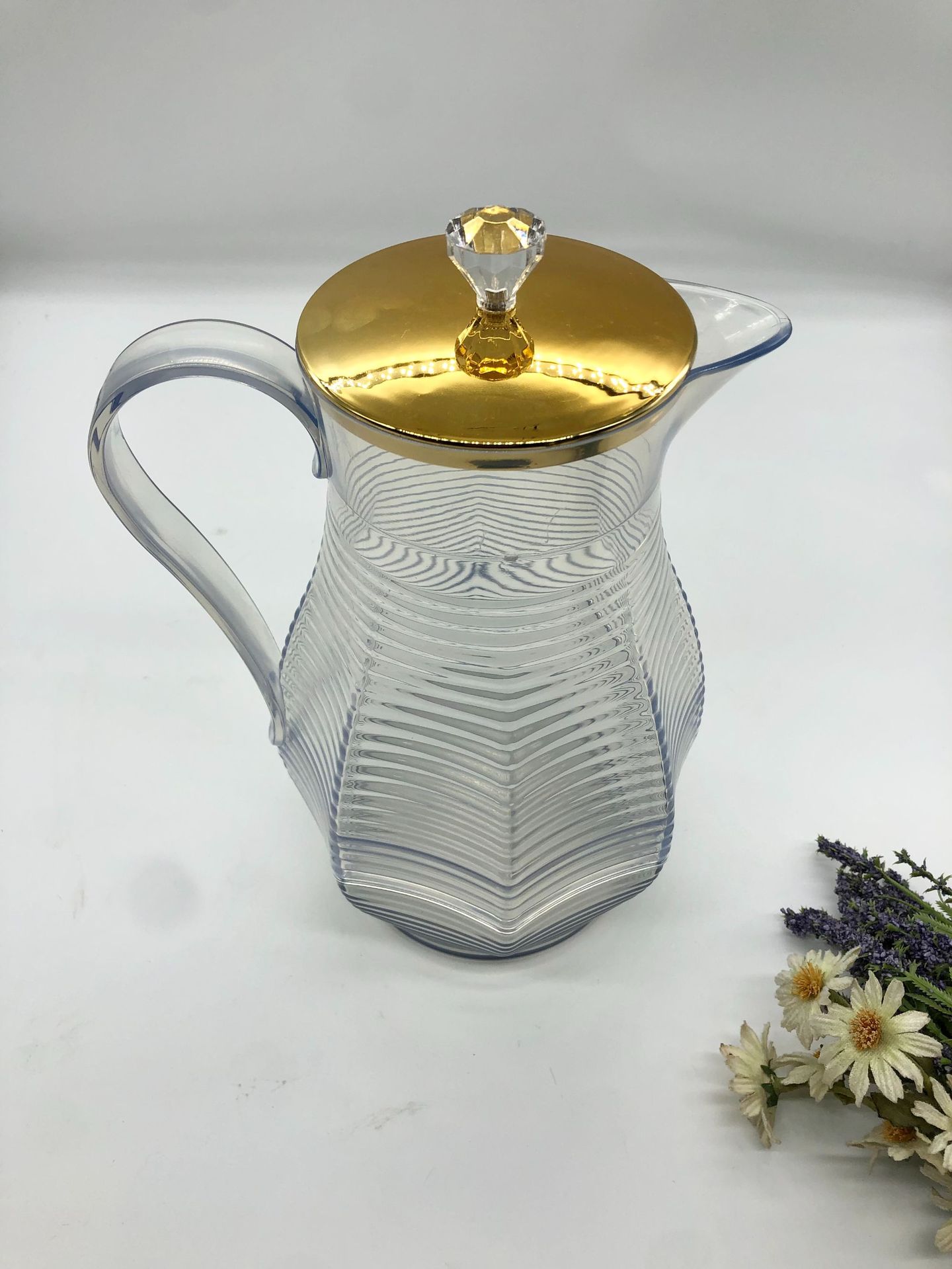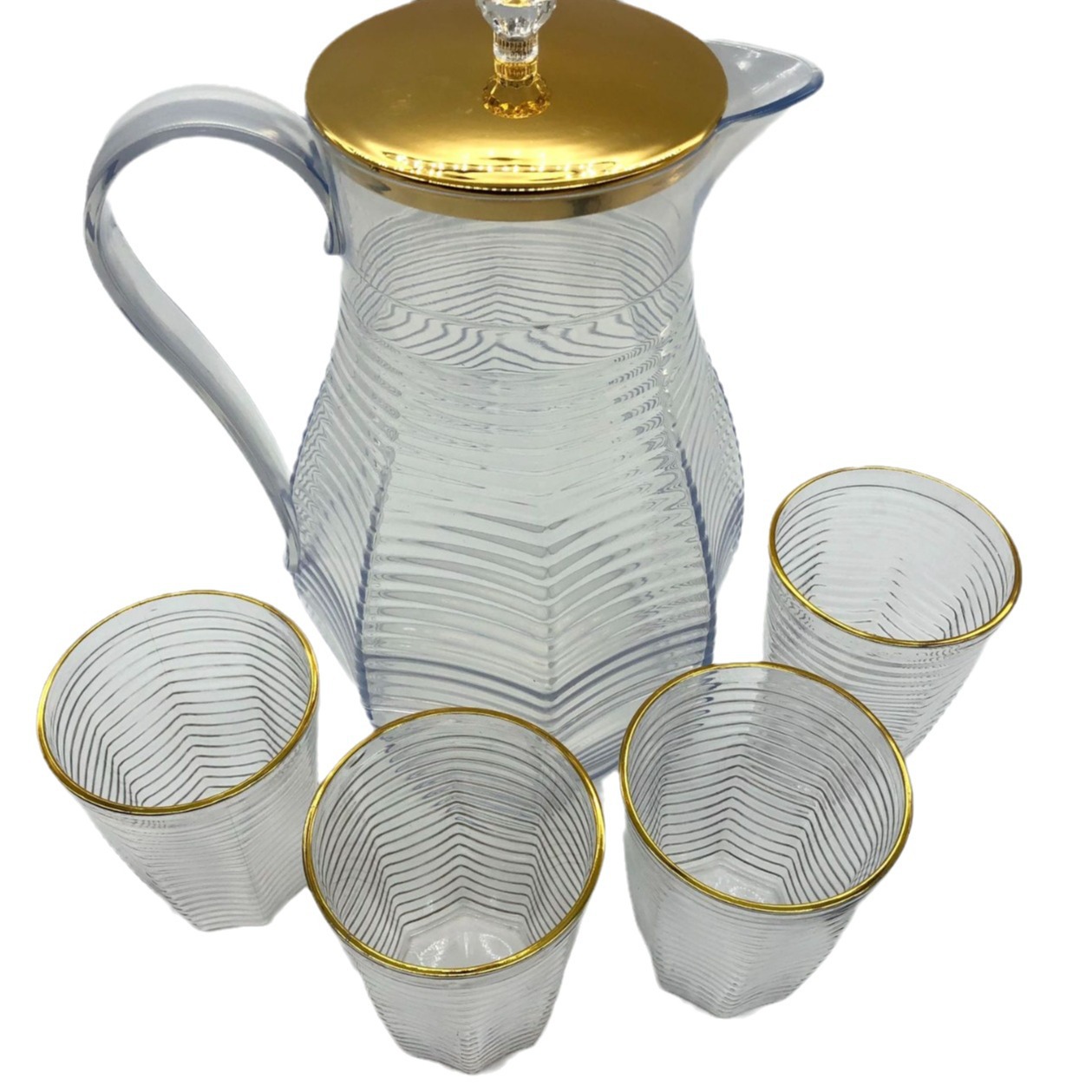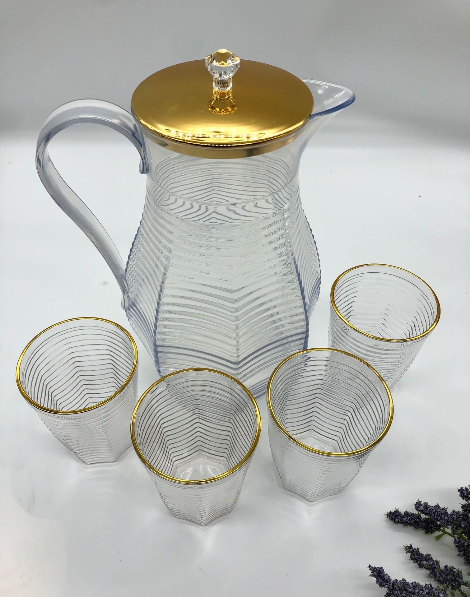 金边PET塑料桌面茶壶 带盖菱形凉白开收纳茶壶套装现代简约小茶杯