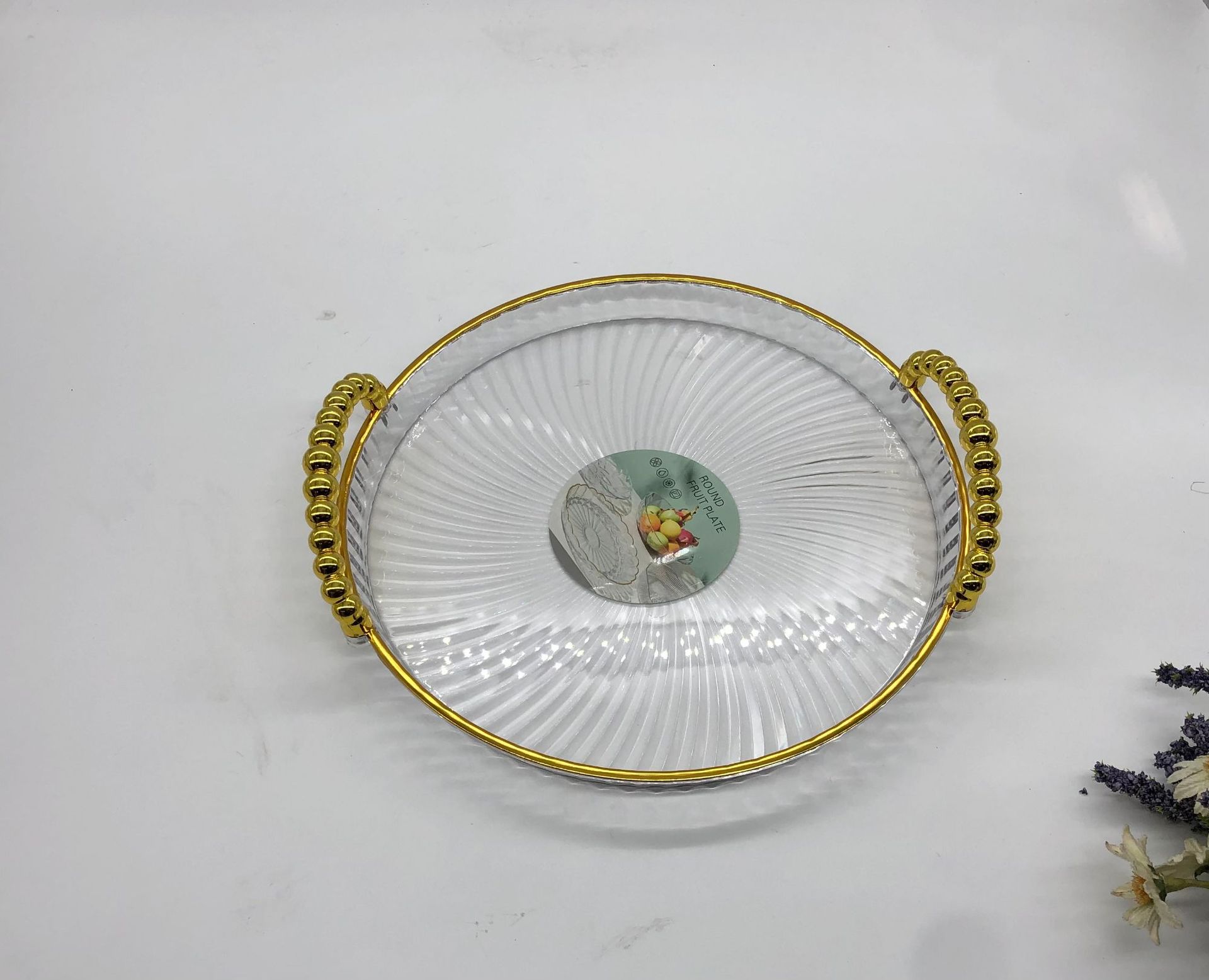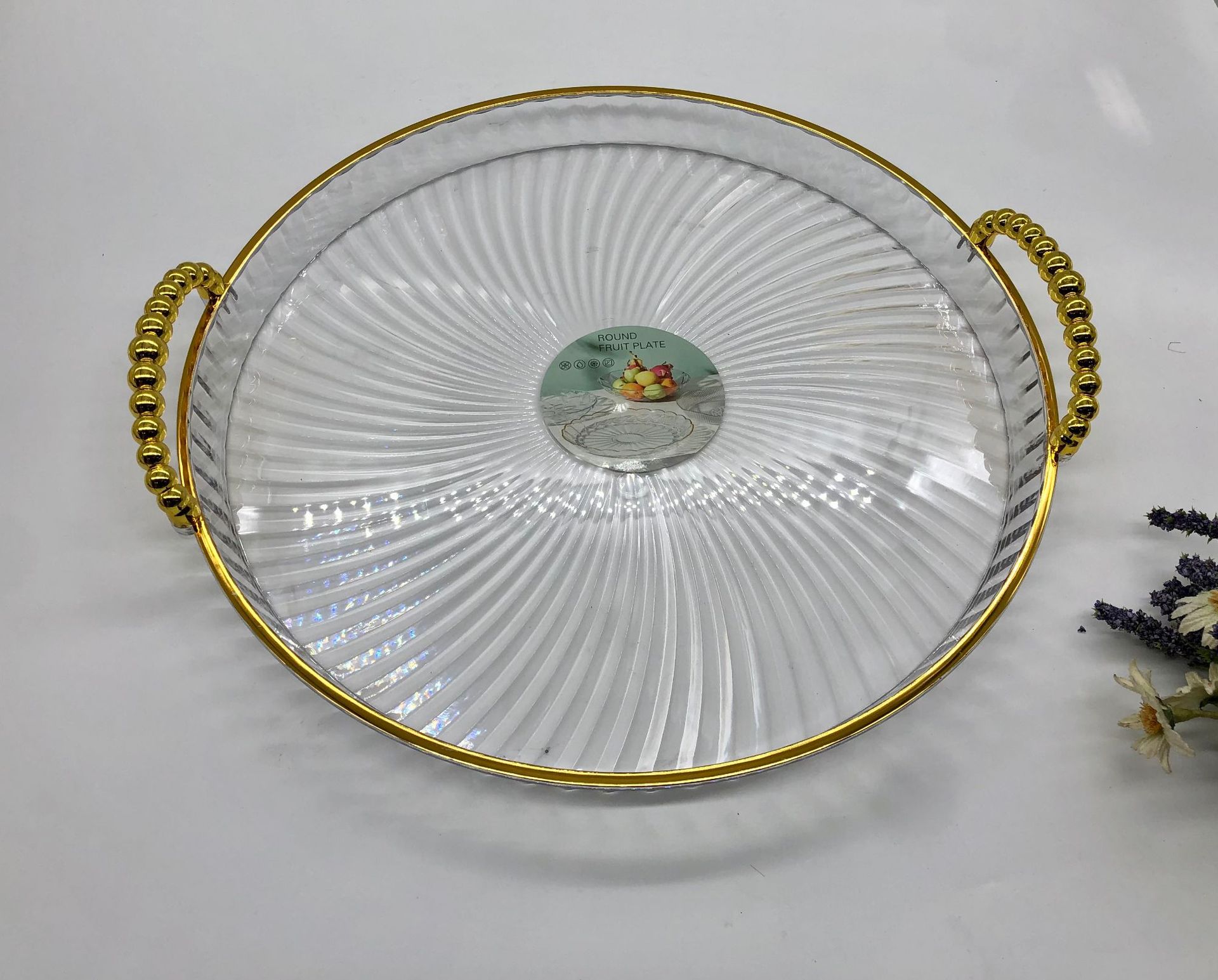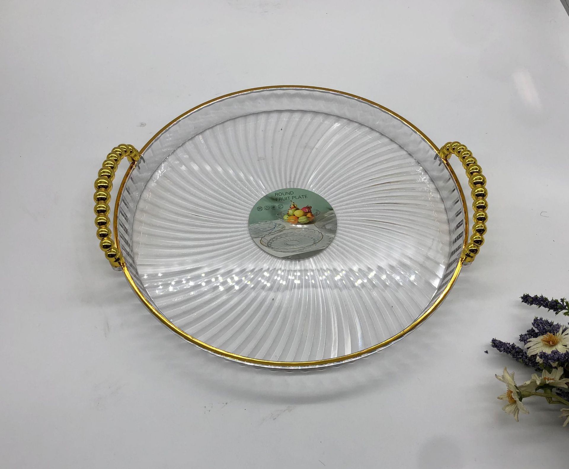 ins透明金边水果盘轻奢提手果盘PET零食盘干果盘坚果盘子