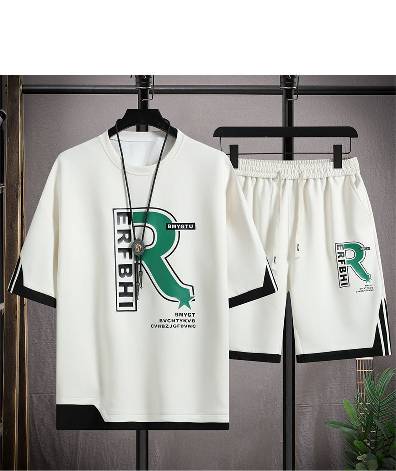 夏季休闲套装男2024新款冰丝t恤男短袖短裤一套搭配潮牌痞帅衣服