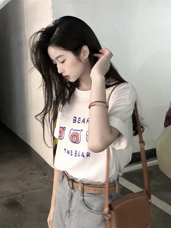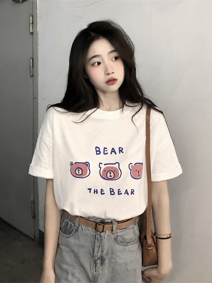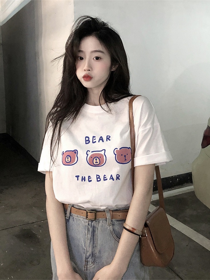 夏季新款短袖t恤女纯棉宽松韩版ins女装百搭卡通印花内搭半袖上衣