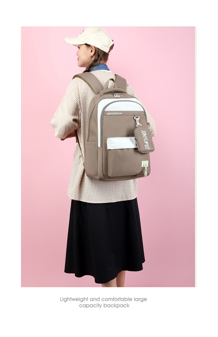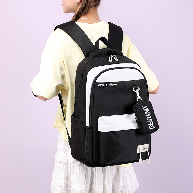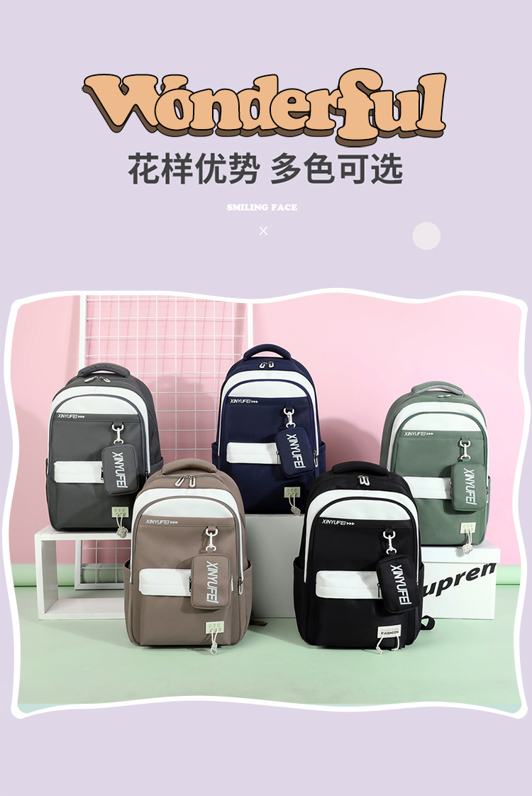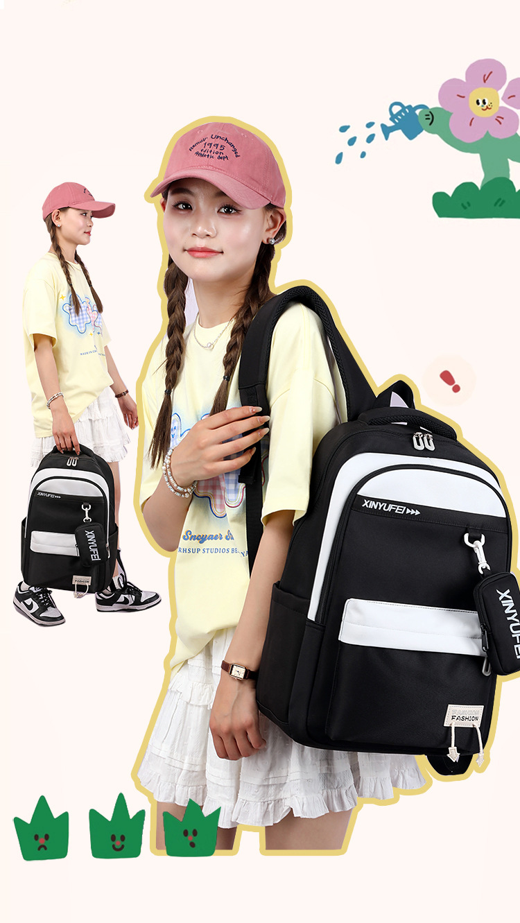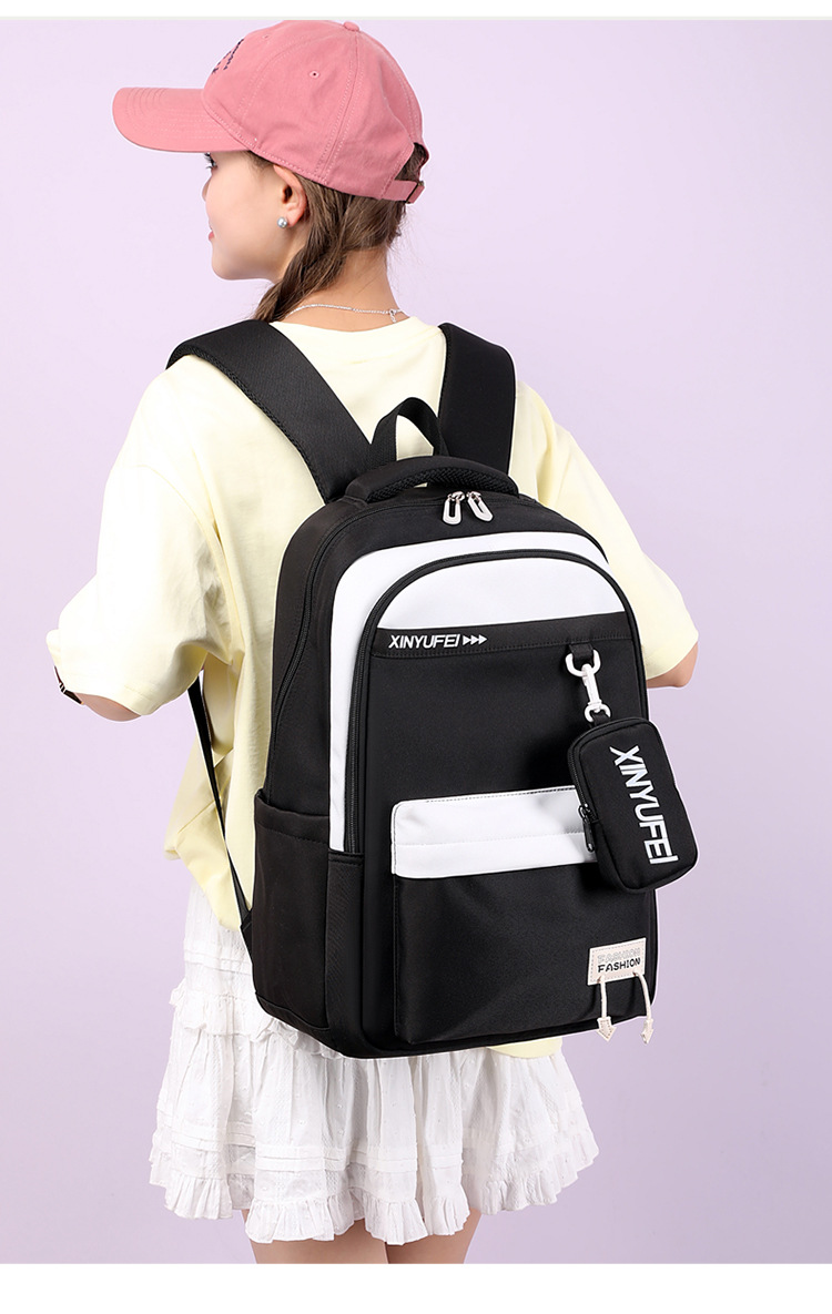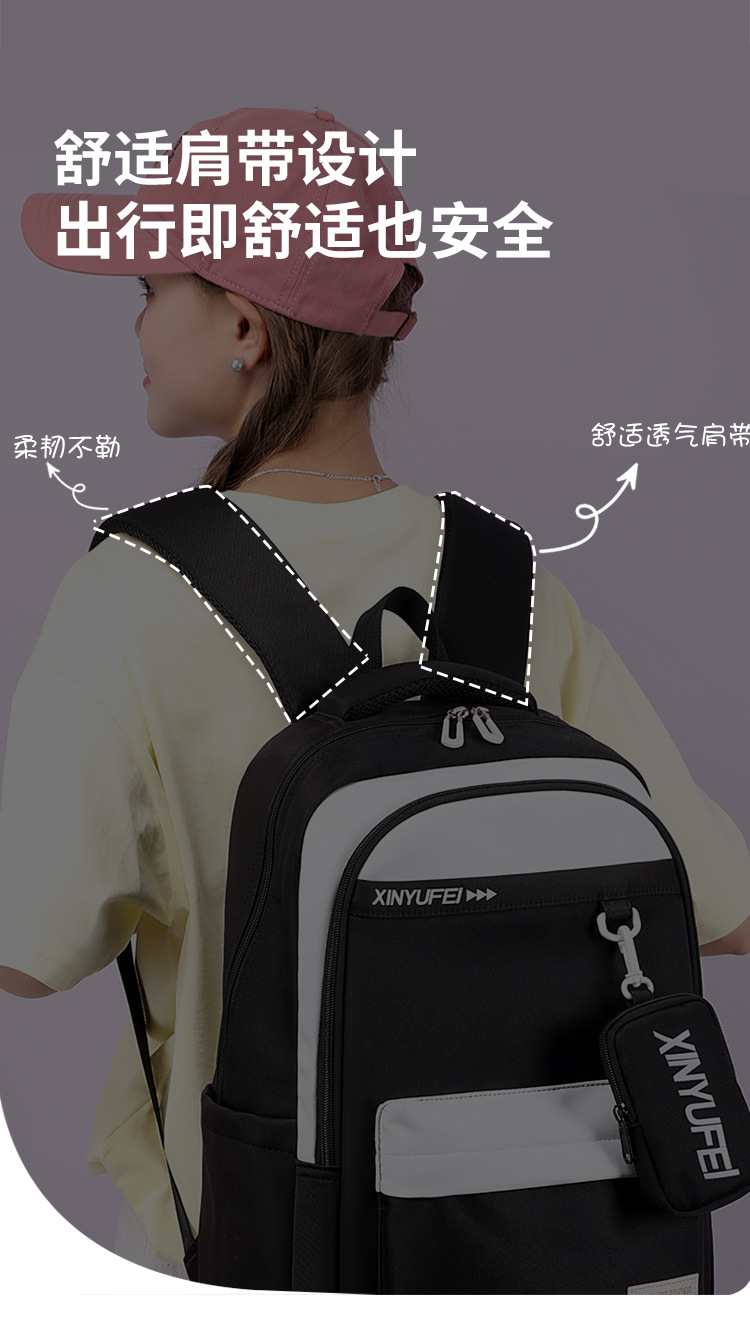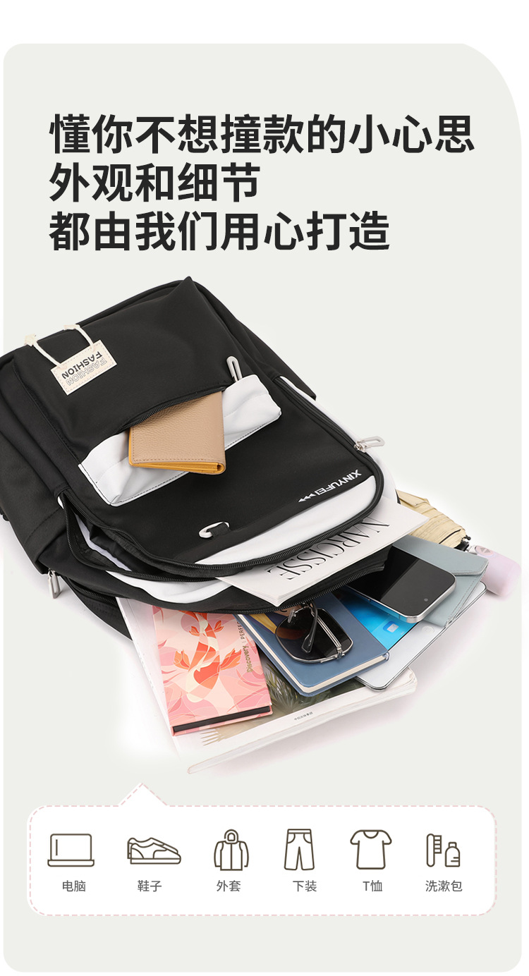 外贸新款书包男女生大学生初高中学生背包简约撞色双肩包