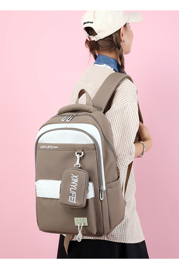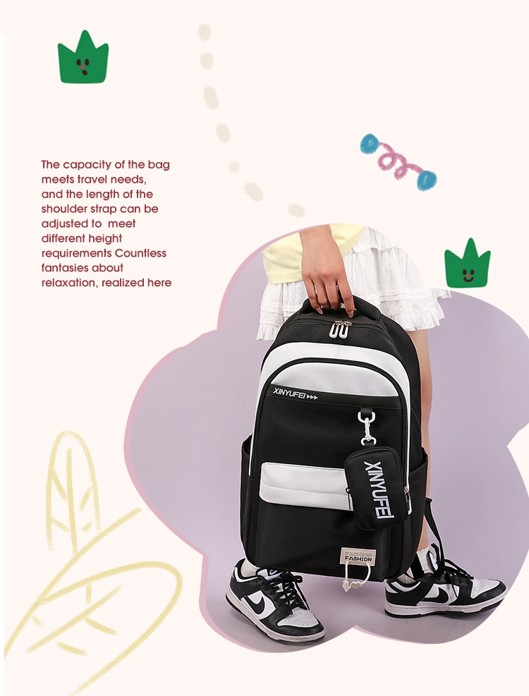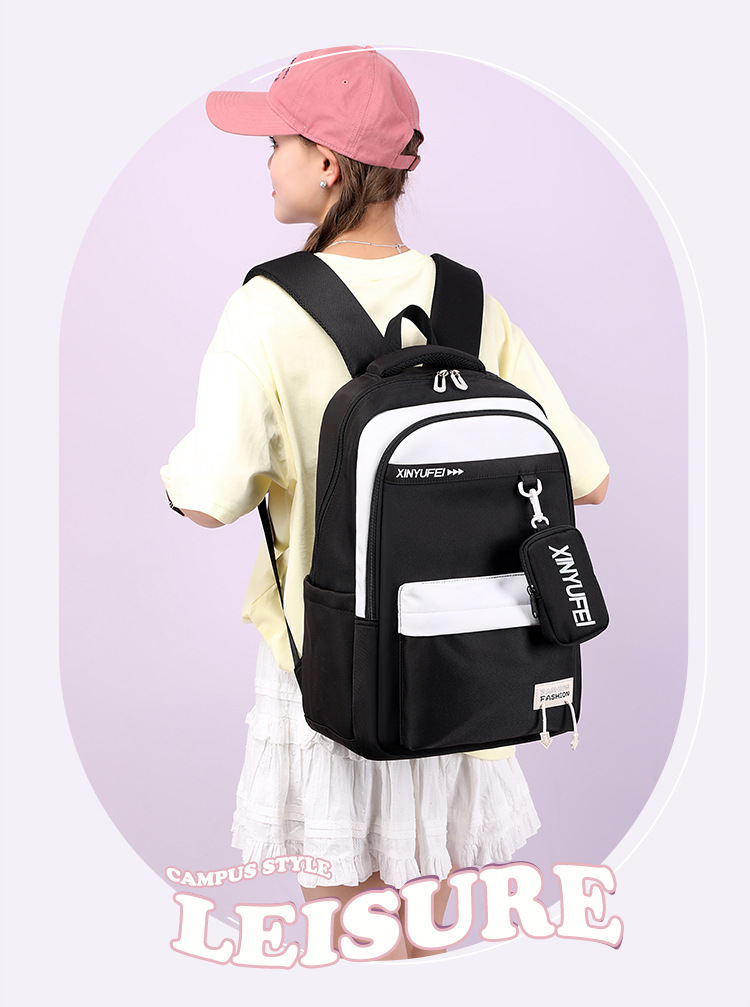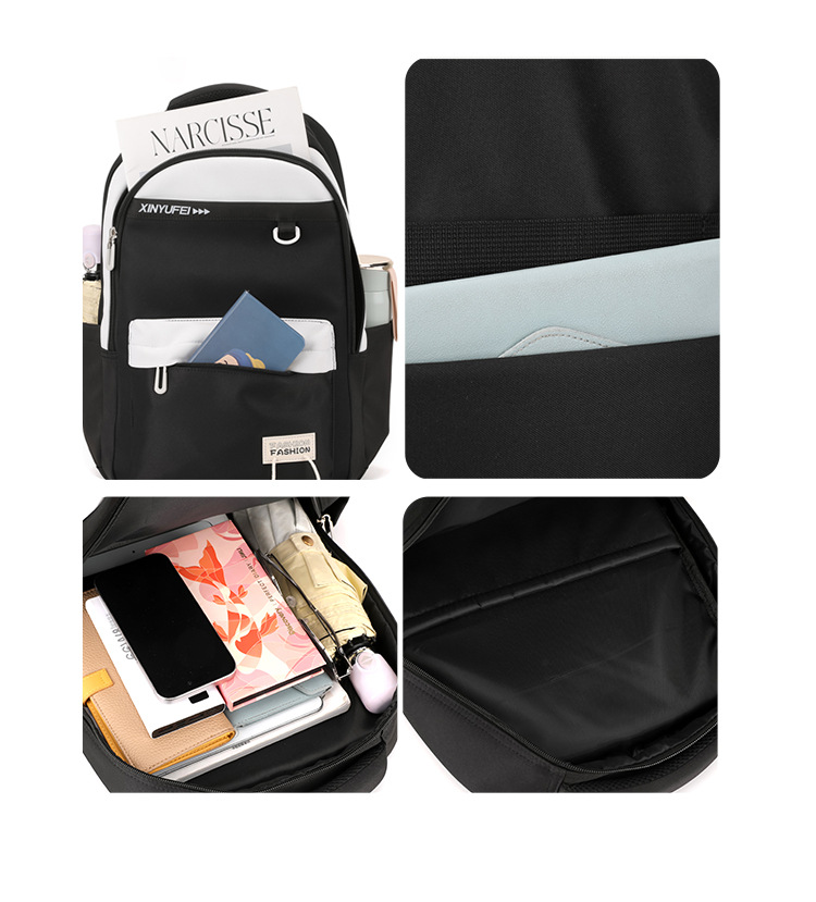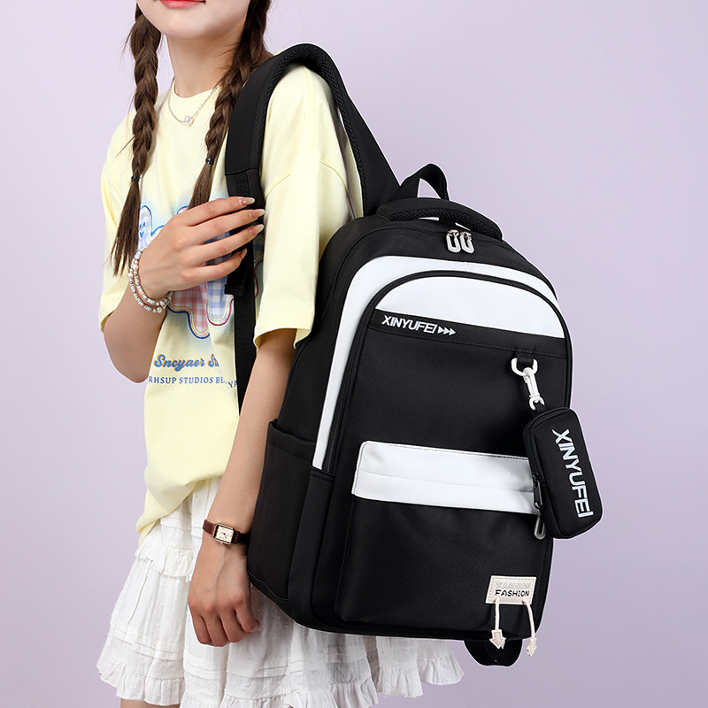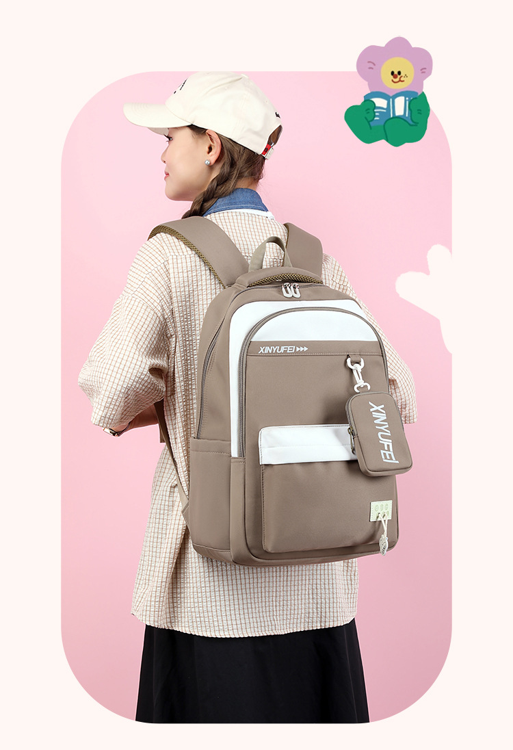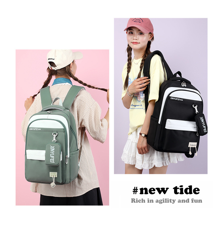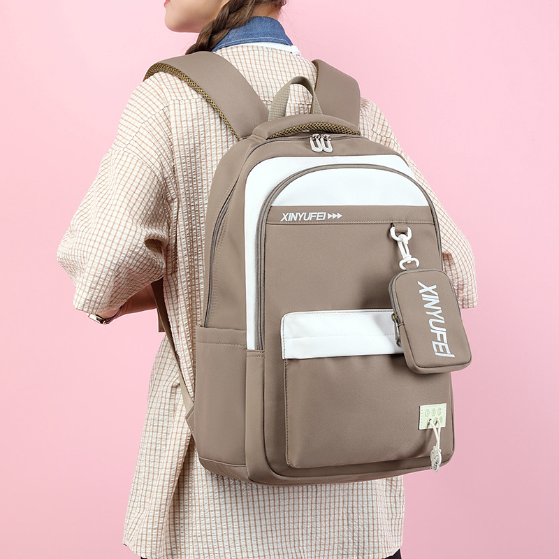 外贸新款书包男女生大学生初高中学生背包简约撞色双肩包