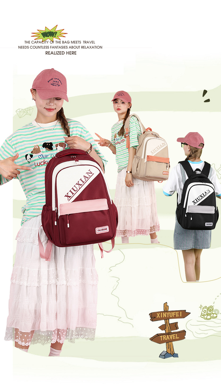 双肩包女士撞色背包户外旅游登山包学生书包批发