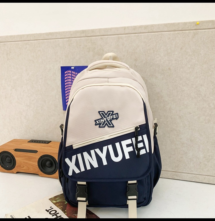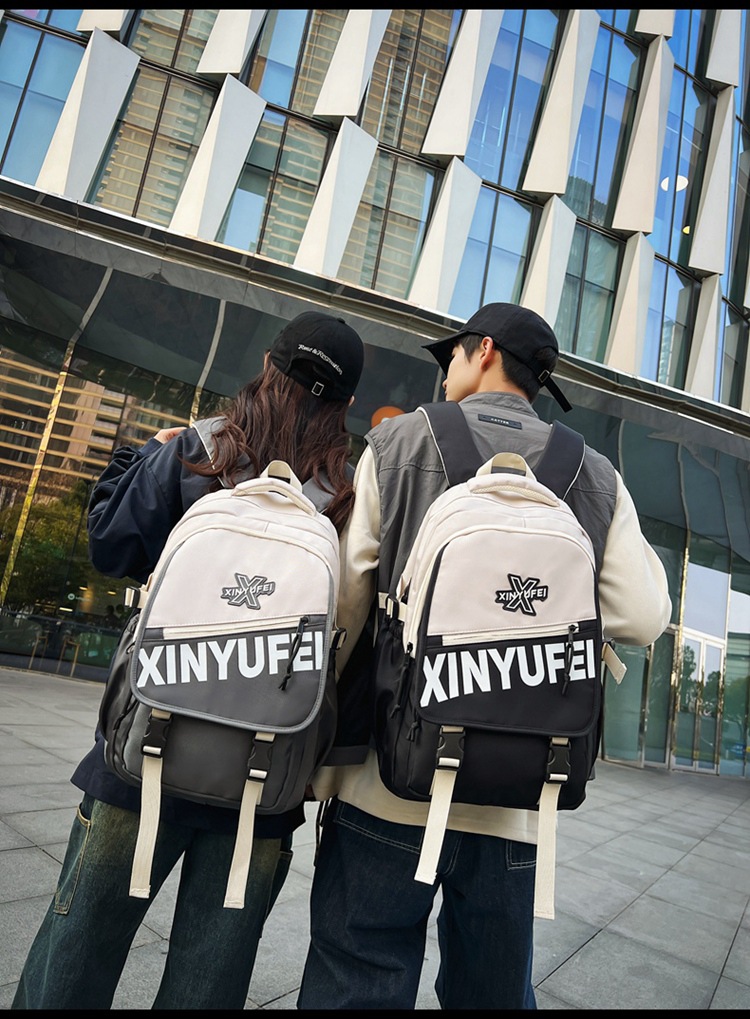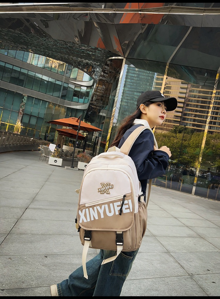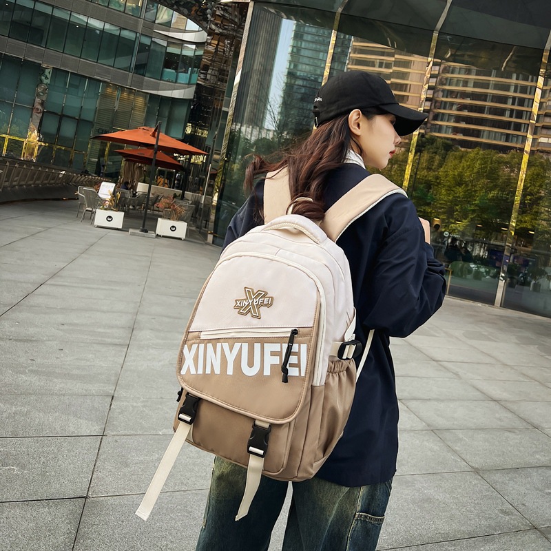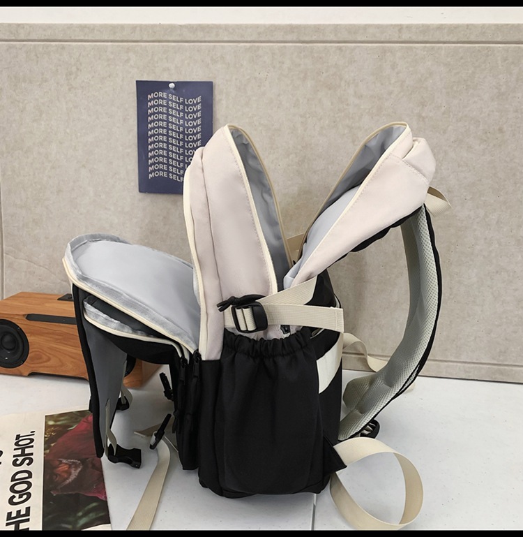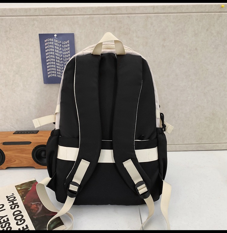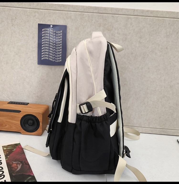 背包女大学生双肩包高中初中生简约撞色学生书包