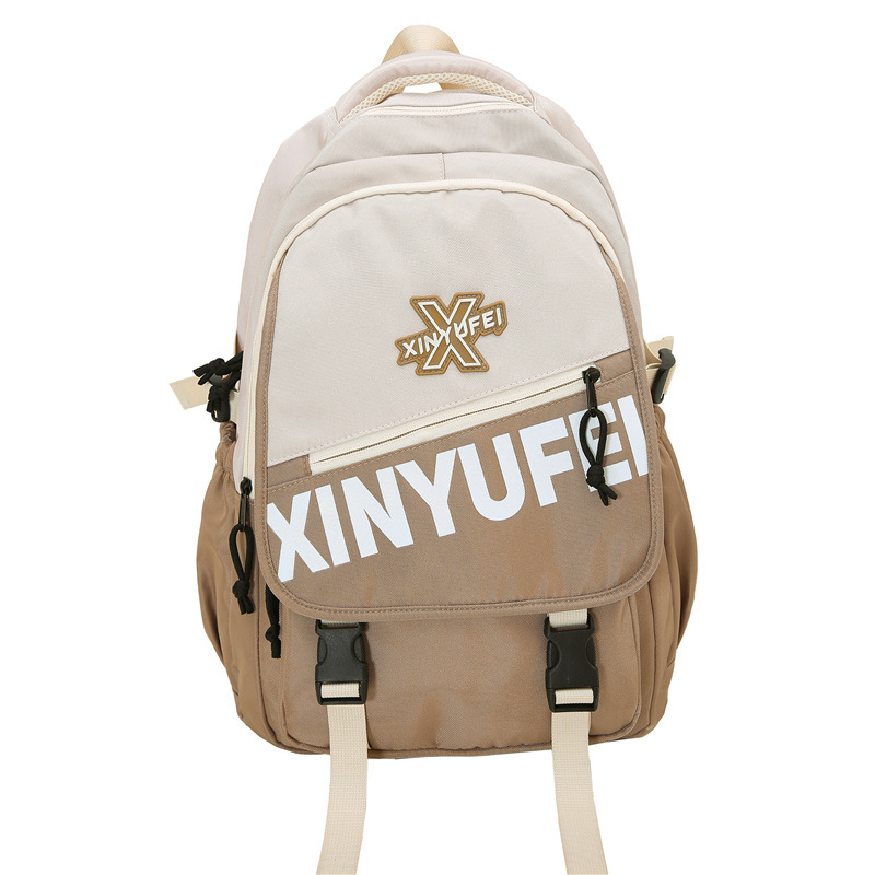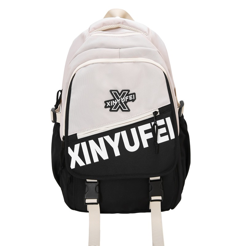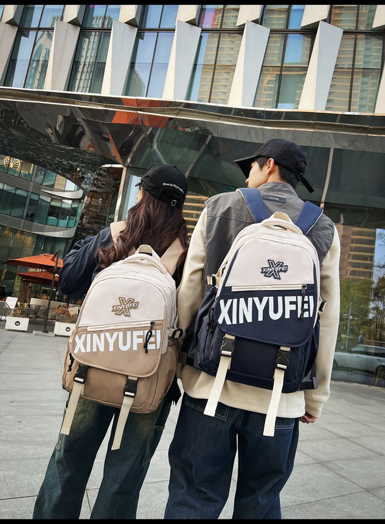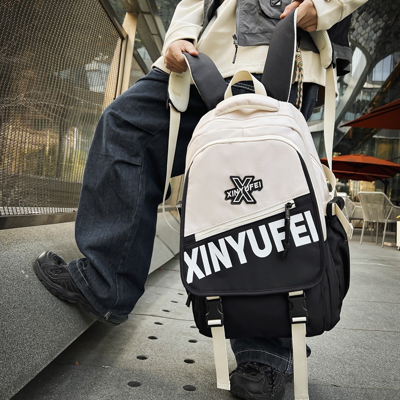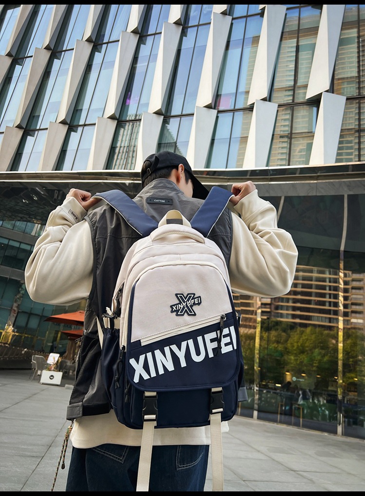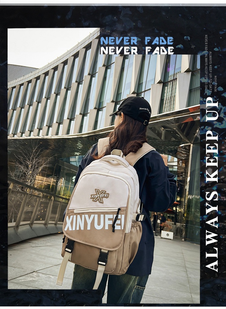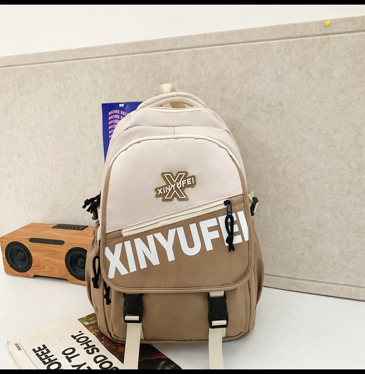 背包女大学生双肩包高中初中生简约撞色学生书包