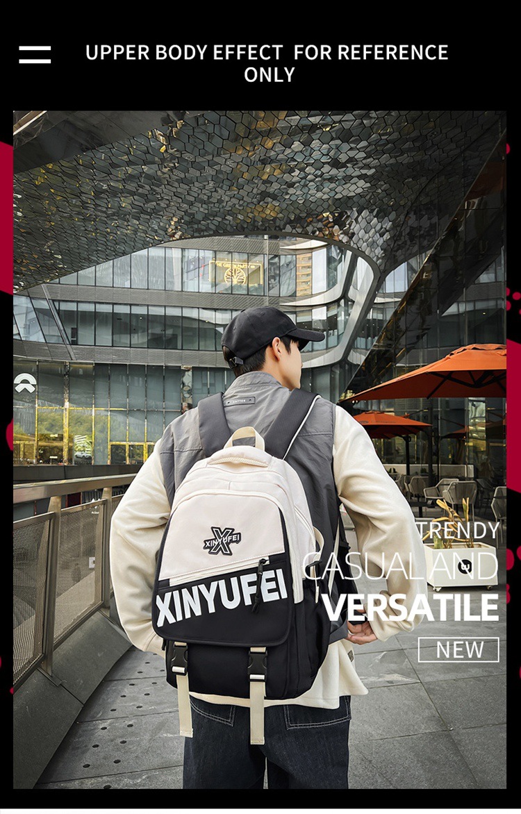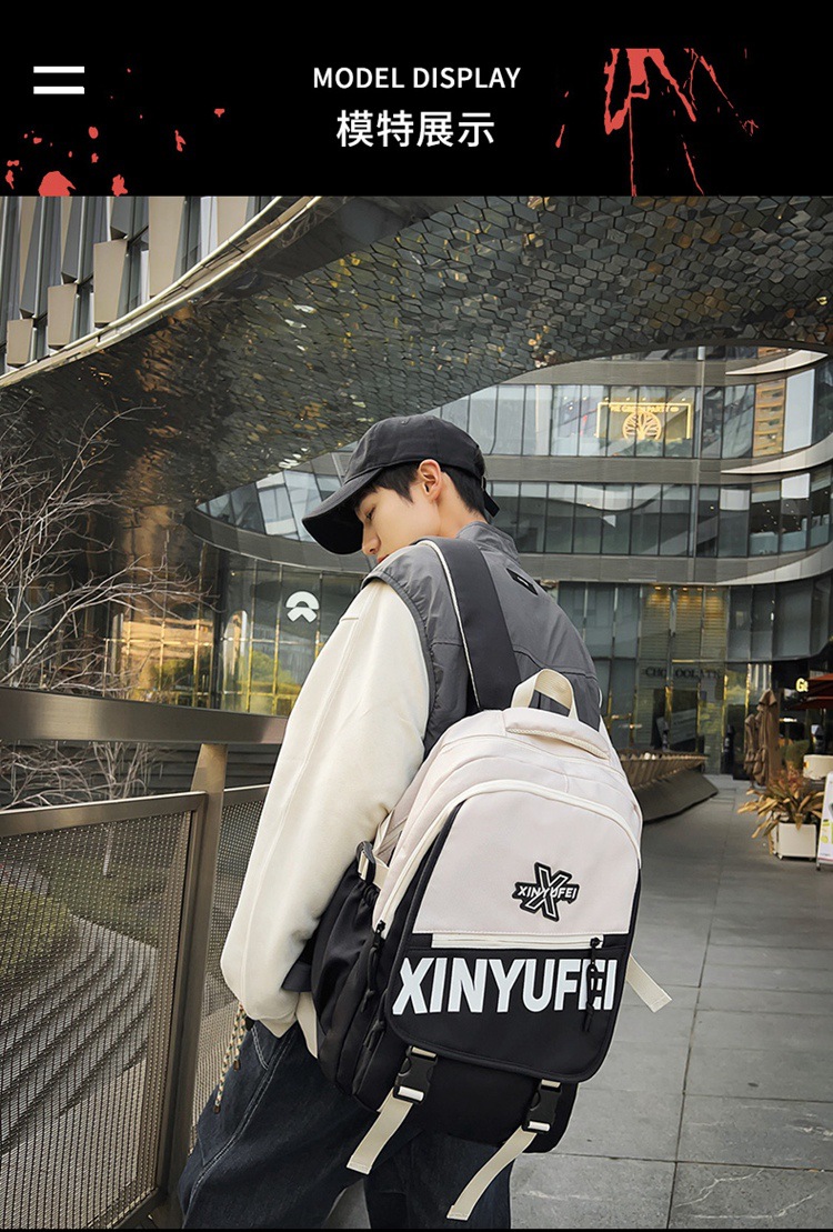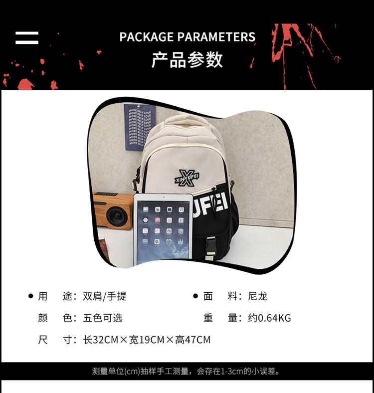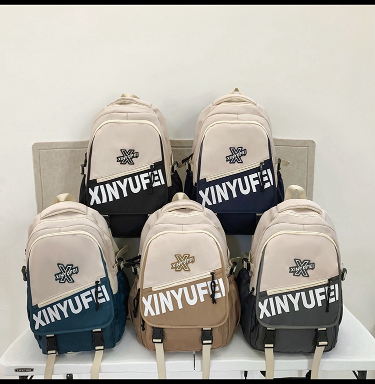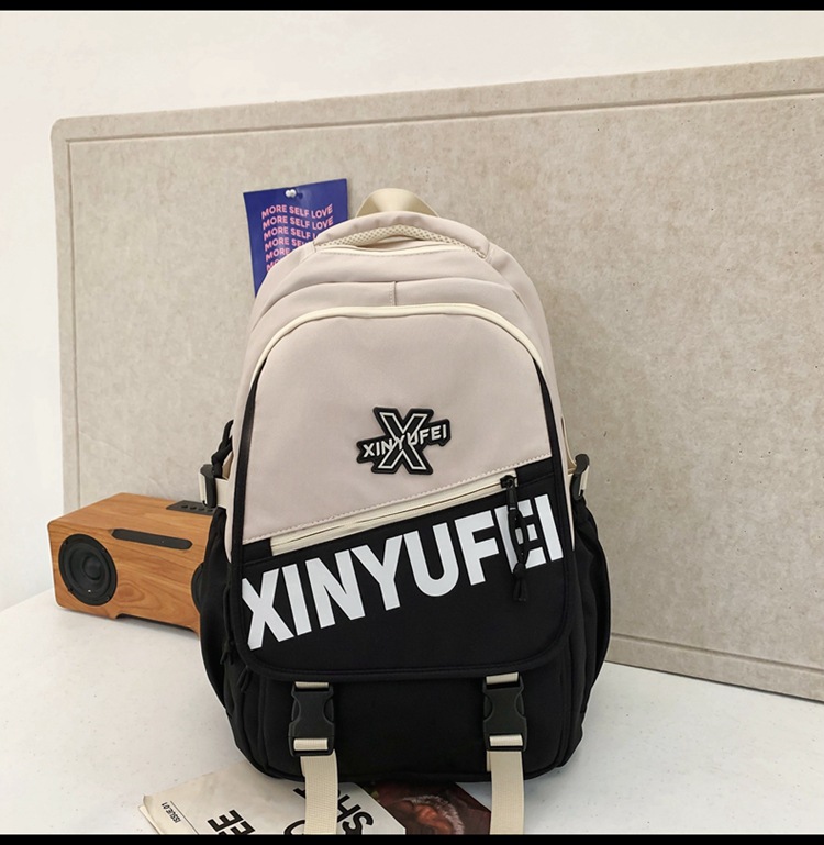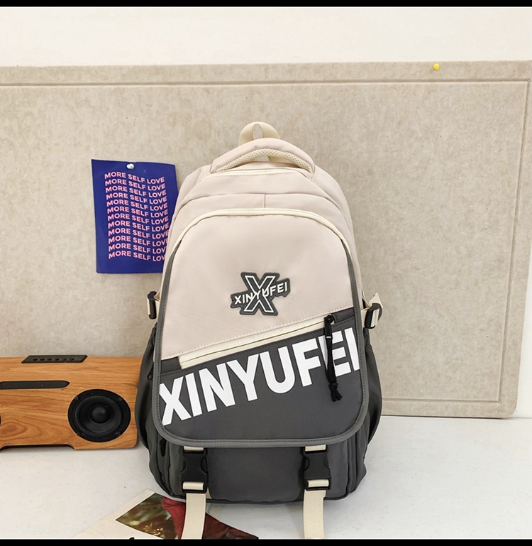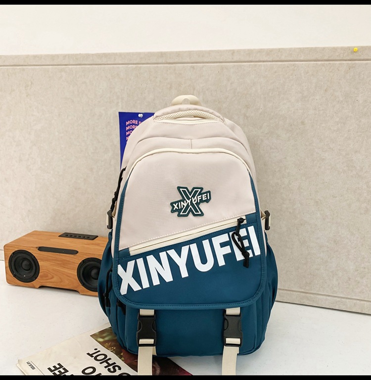 背包女大学生双肩包高中初中生简约撞色学生书包