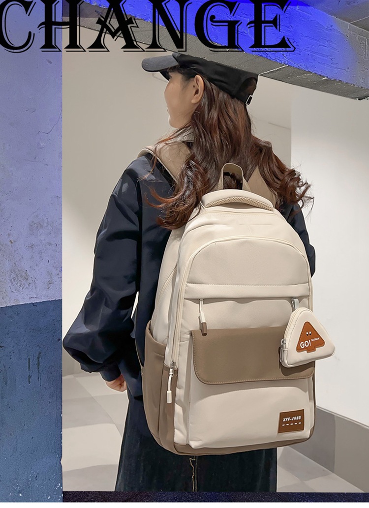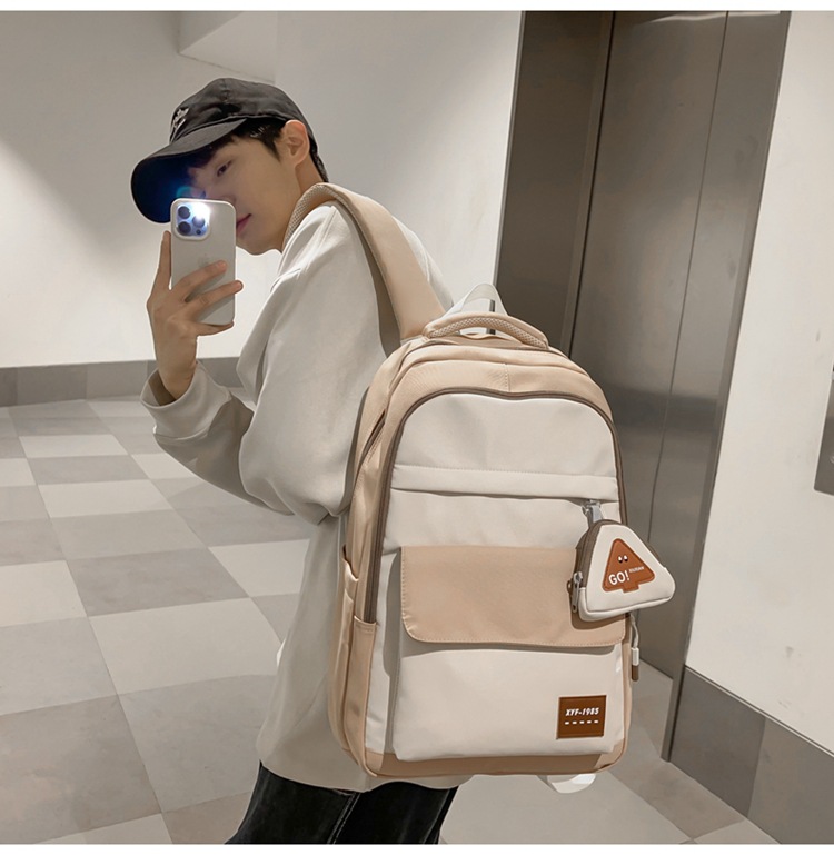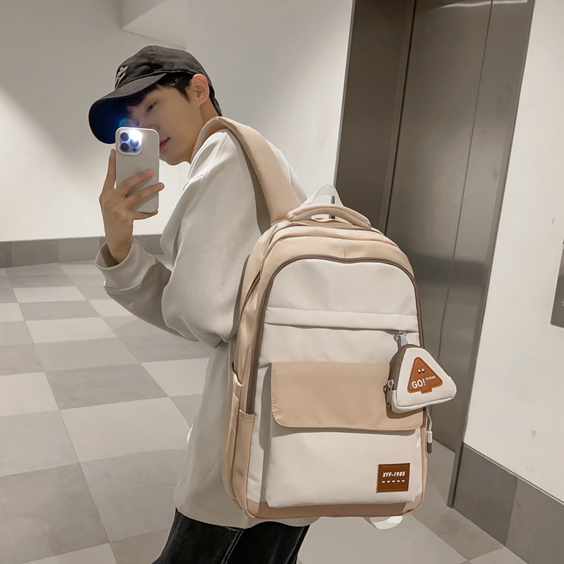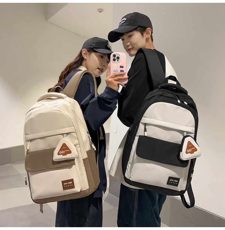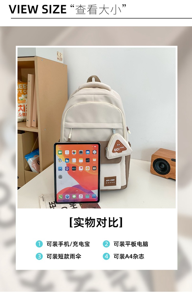 2024高级感中大学生书包撞色高颜值护肩双肩包