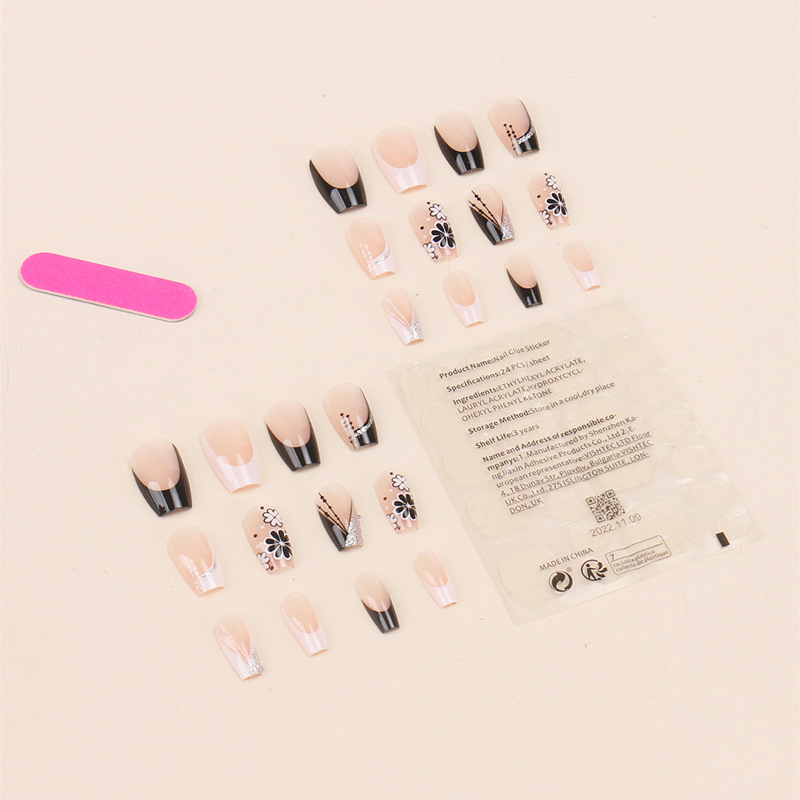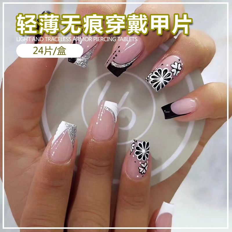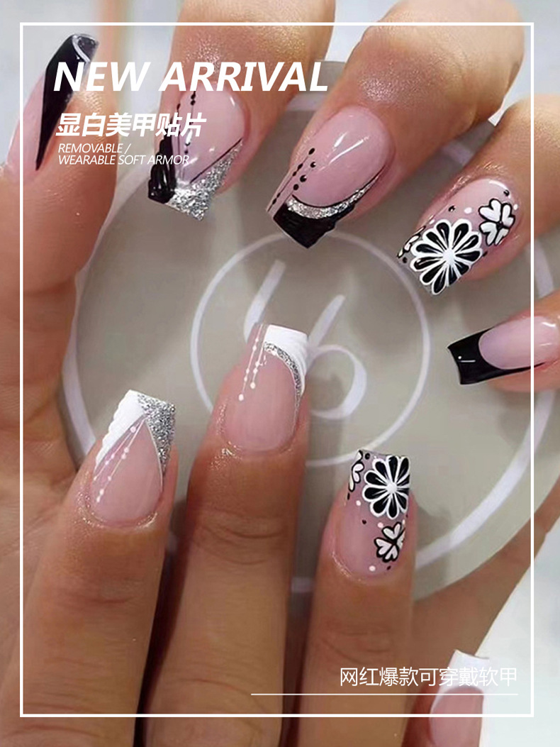 穿戴甲定制短款花朵闪粉辣妹美甲片成品指甲贴片甜酷风美甲加工厂