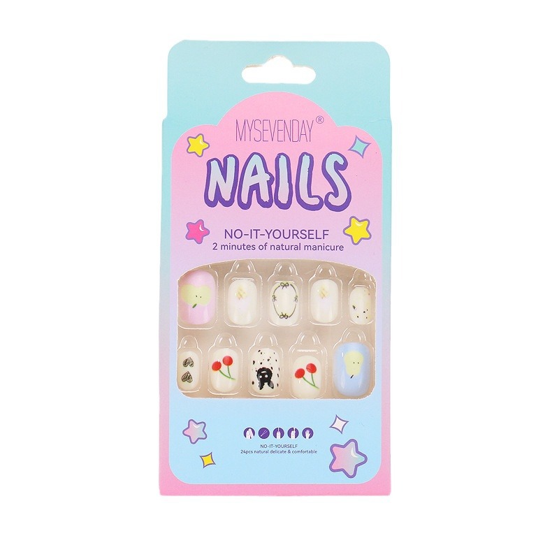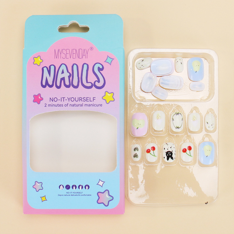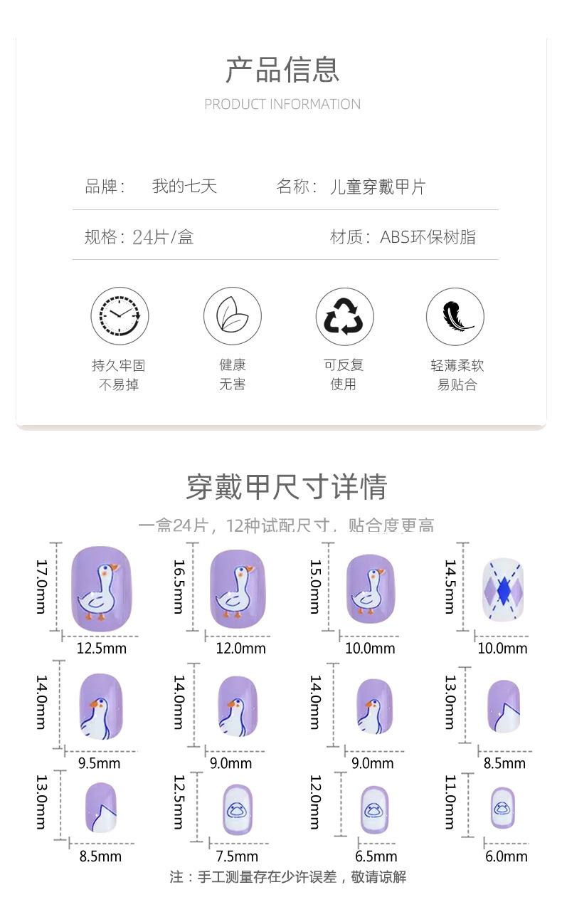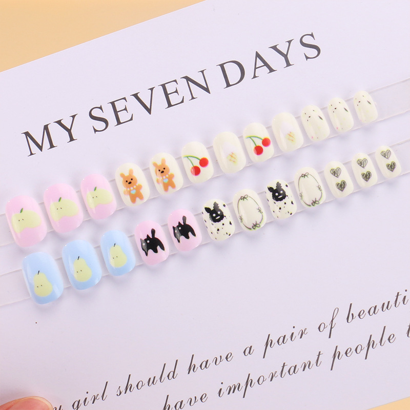 儿童穿戴甲批发可爱卡通撞色美甲贴片可拆卸女童假指甲片成品24片