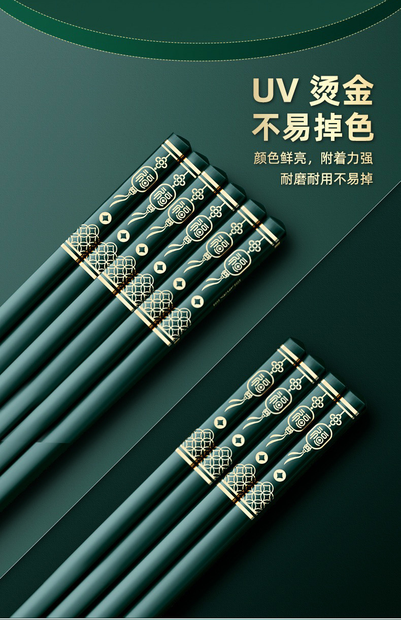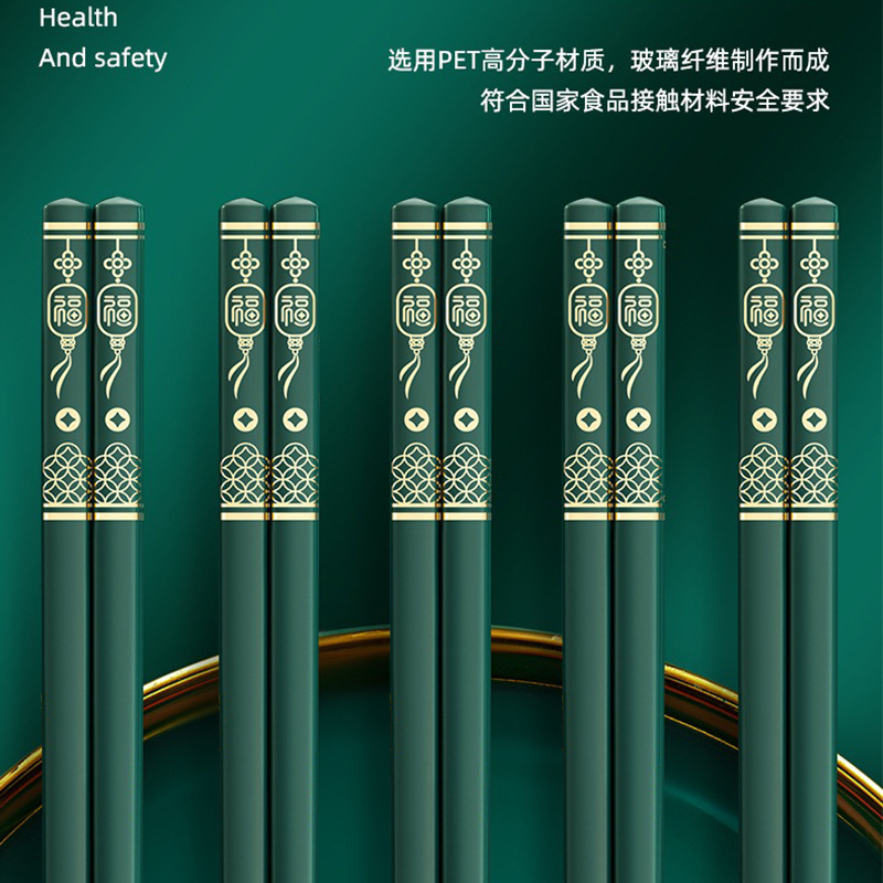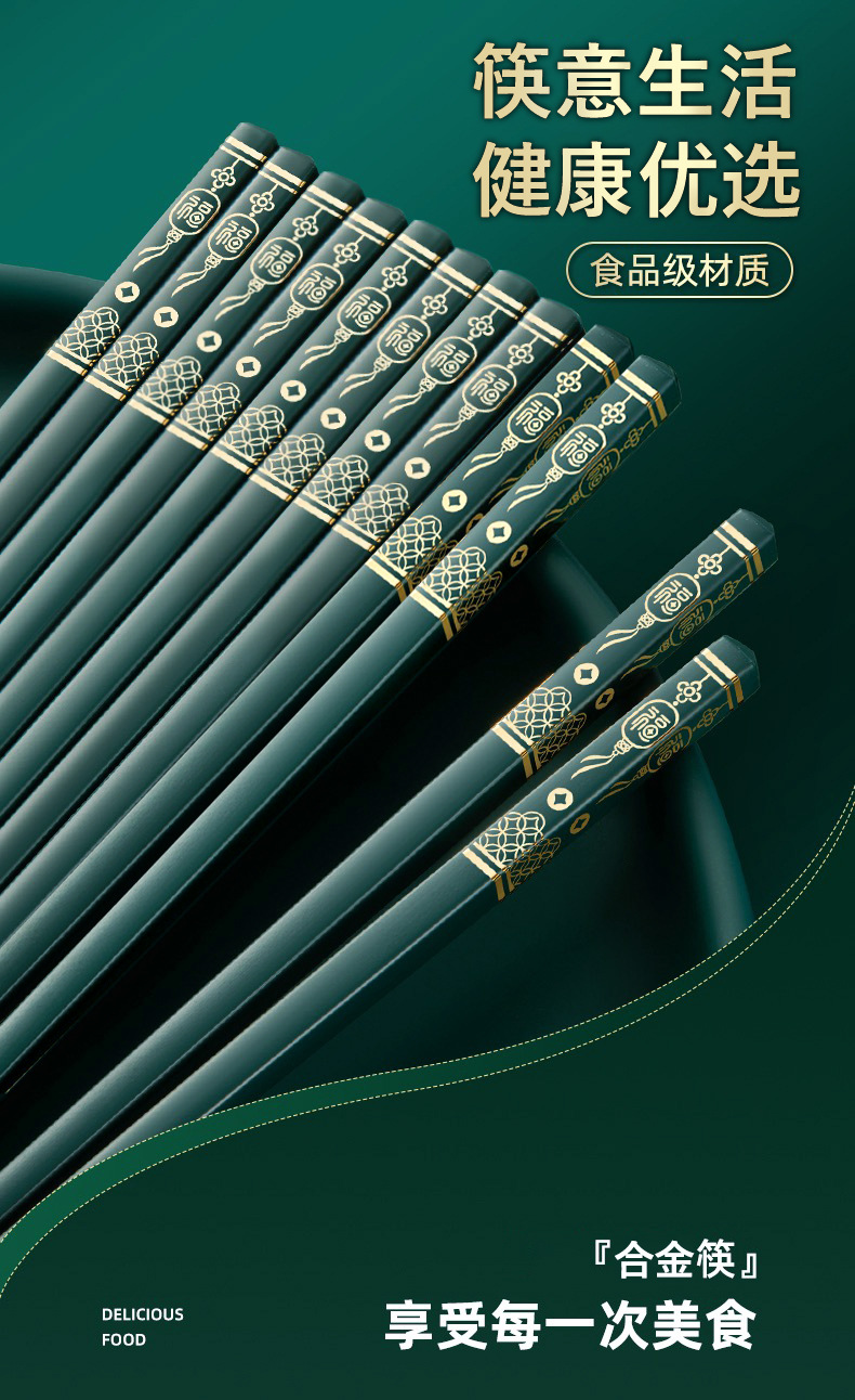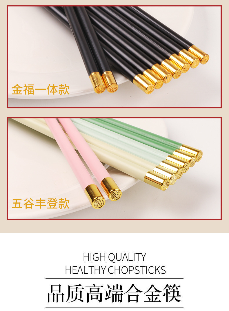 福字筷子合金批发酒店家用高档简约耐高温防霉防滑轻奢家庭装餐具