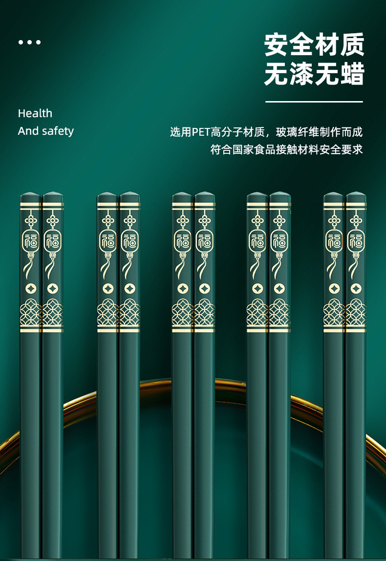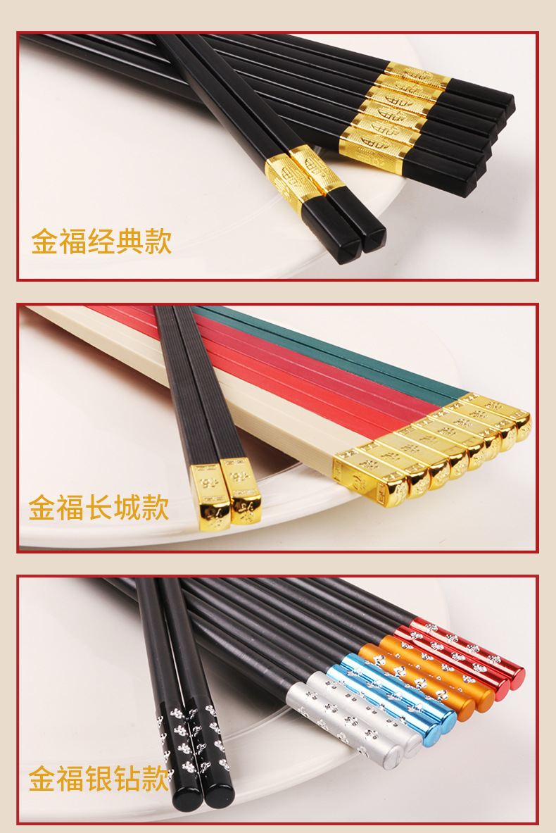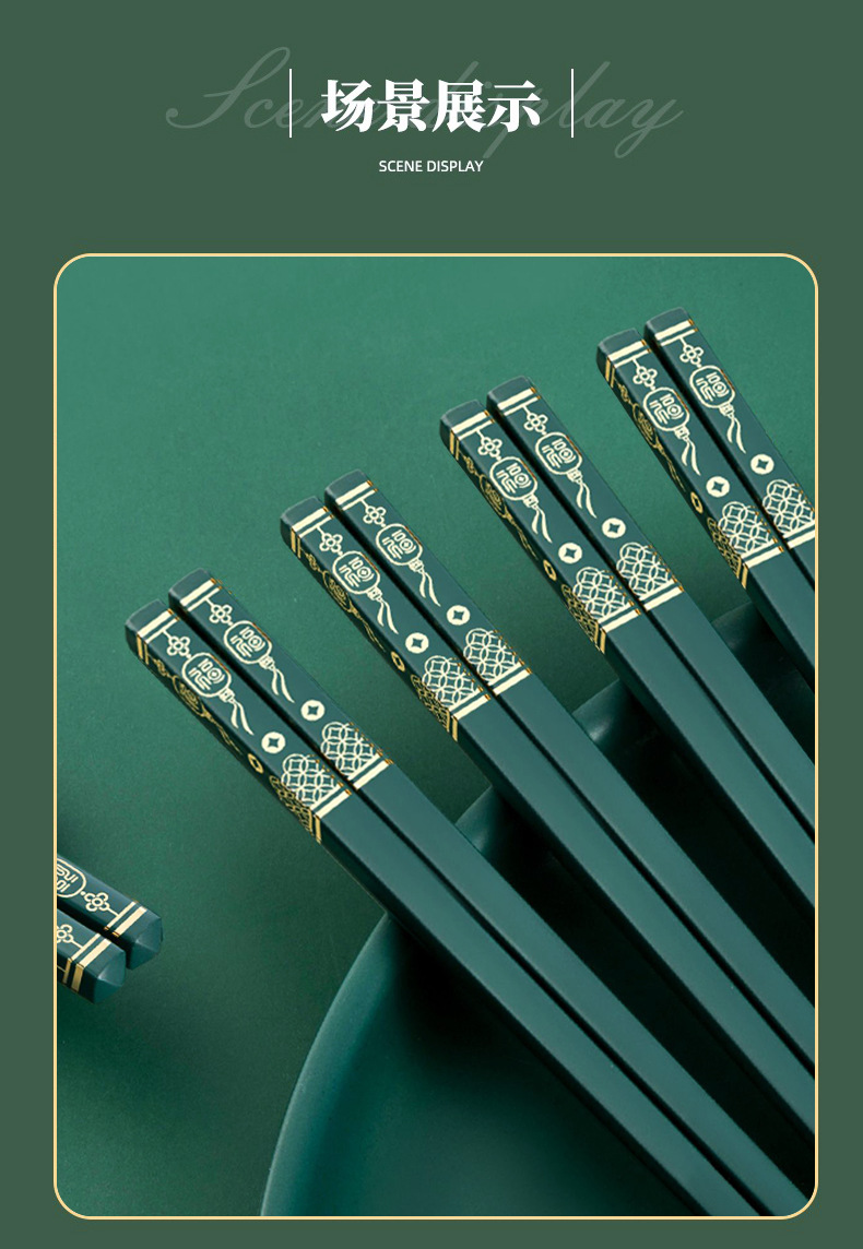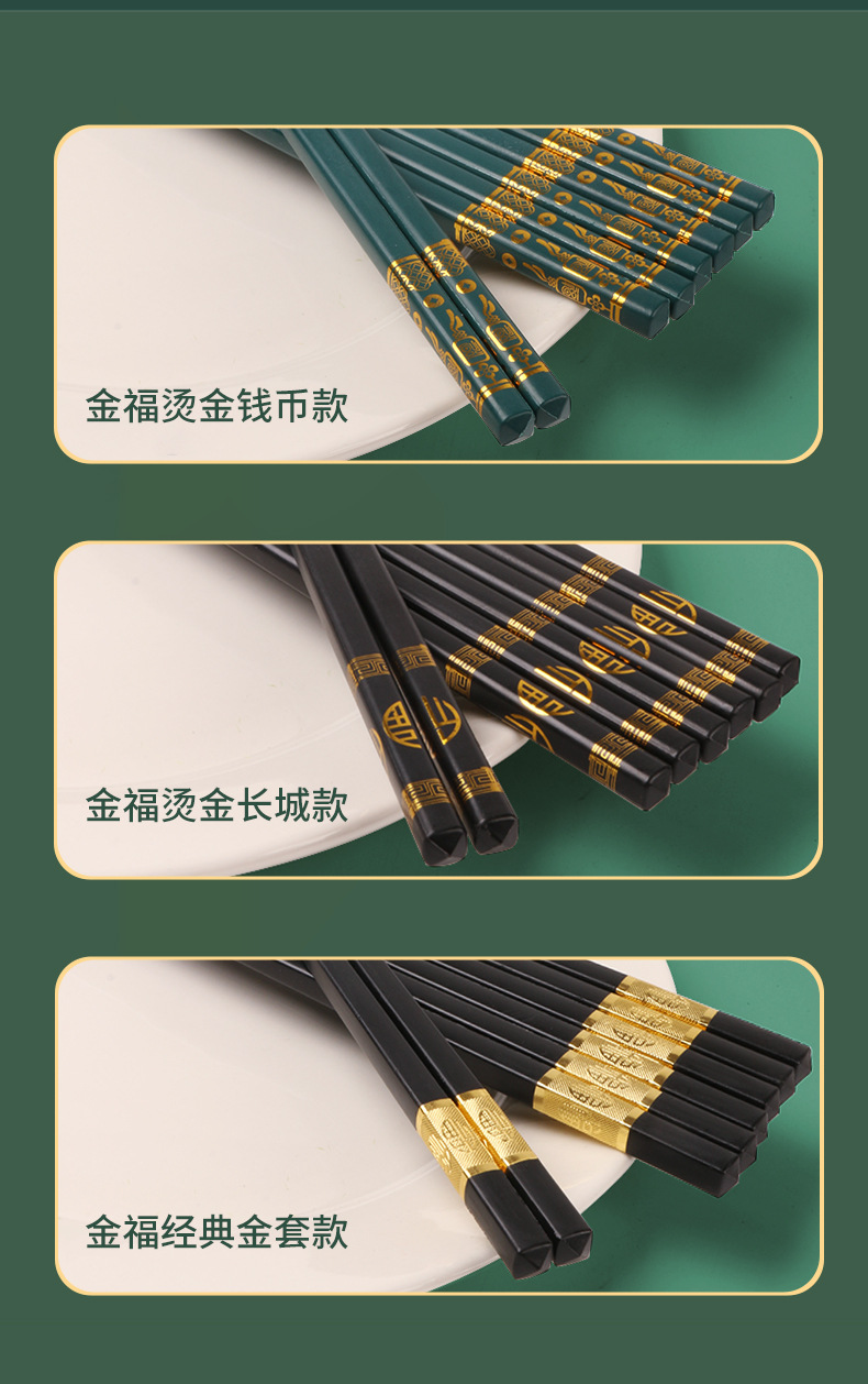 福字筷子合金批发酒店家用高档简约耐高温防霉防滑轻奢家庭装餐具
