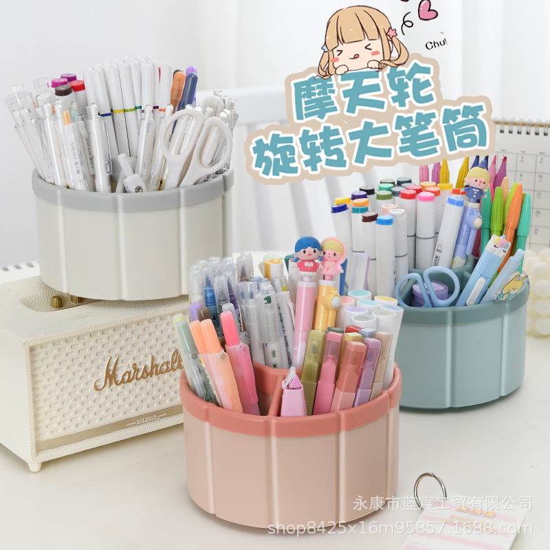 摩天轮6格旋转笔筒大容量多功能桌面收纳盒ins高颜值化妆刷收纳桶