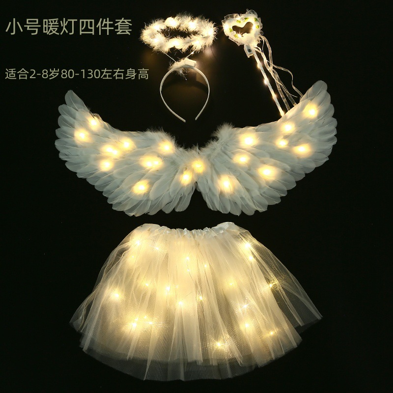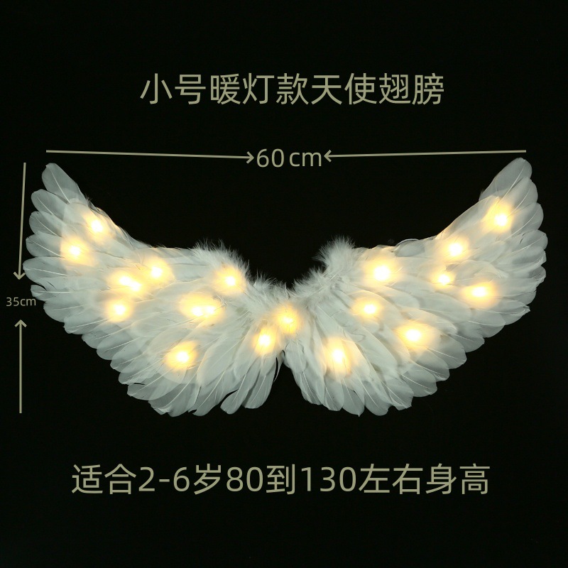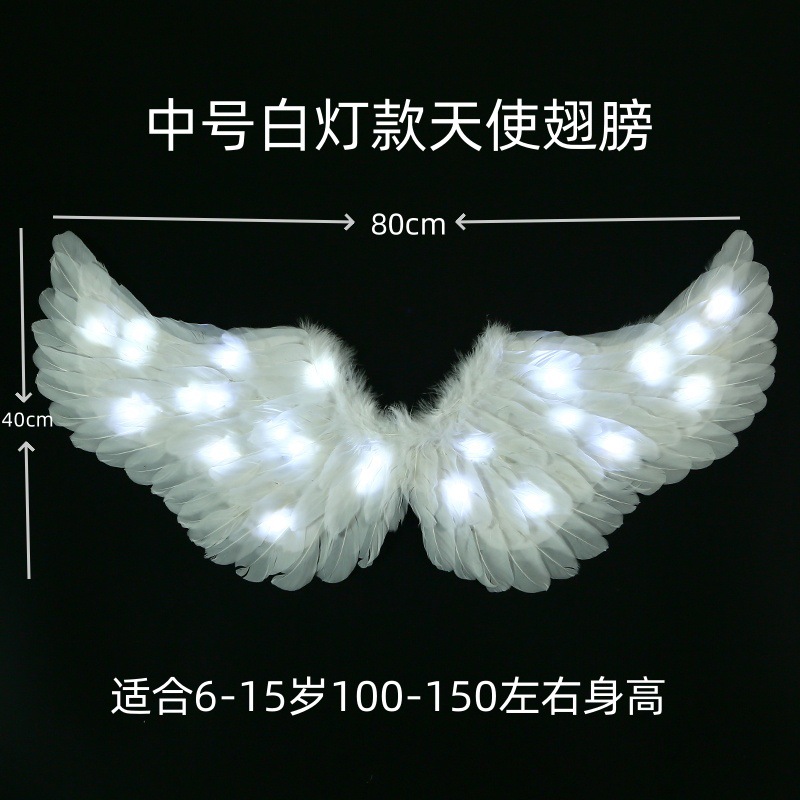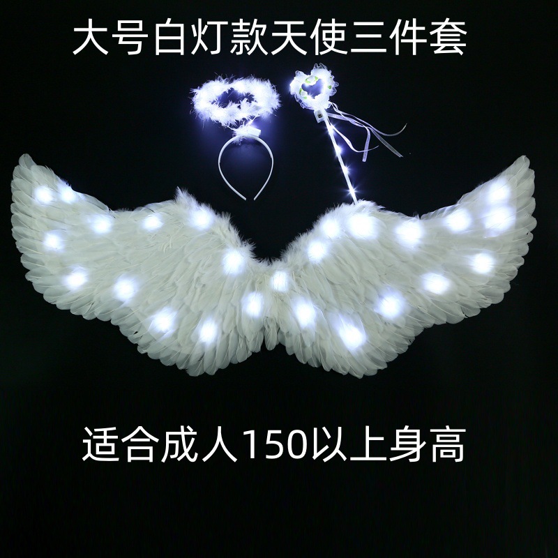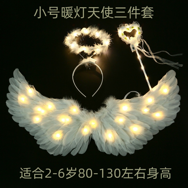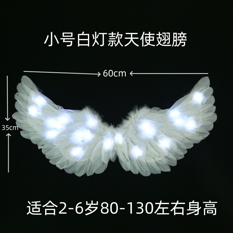 儿童小天使发光羽毛翅膀道具女童精灵仙女拍照cos表演成人背饰