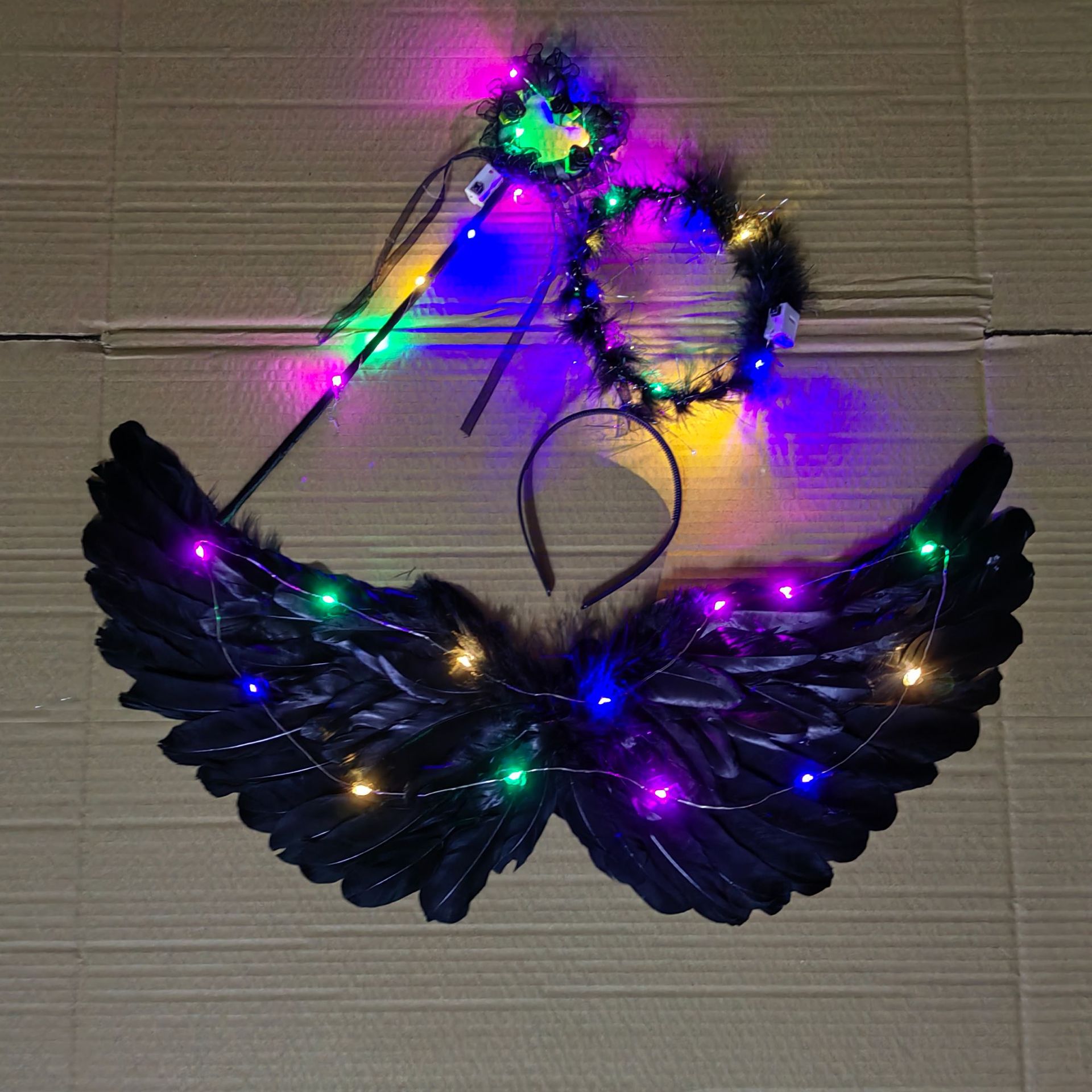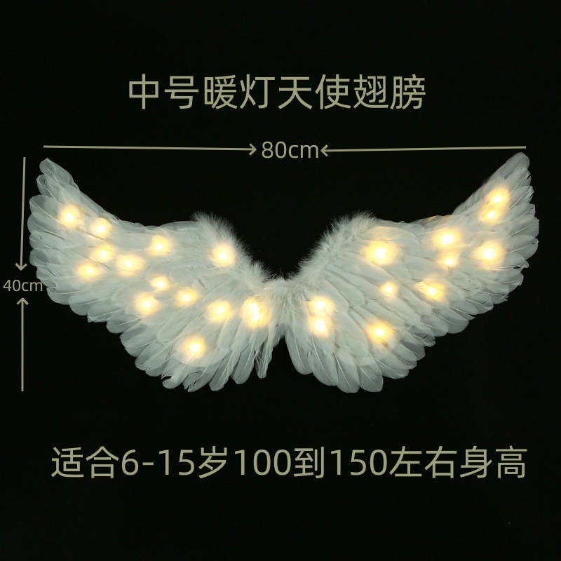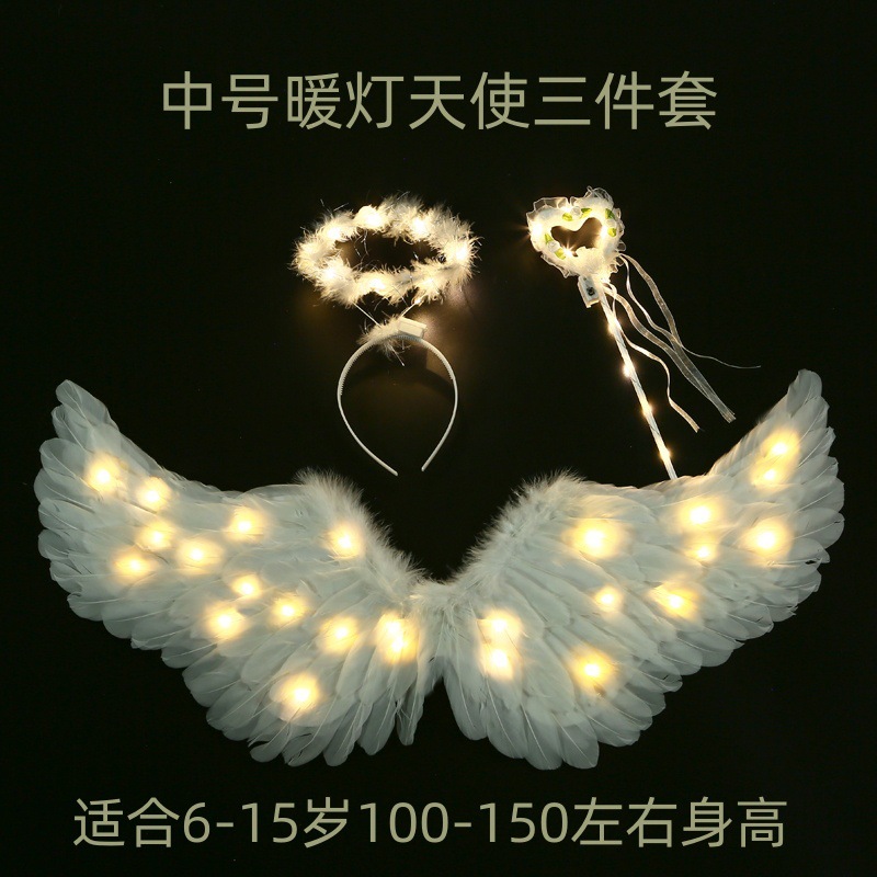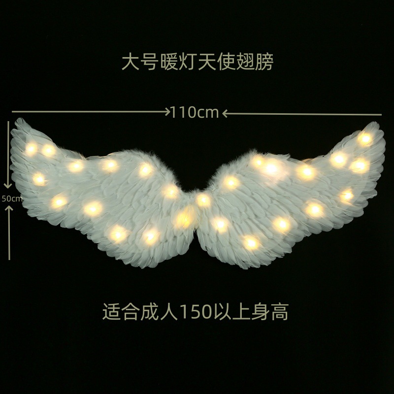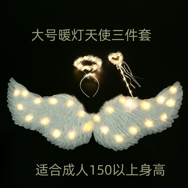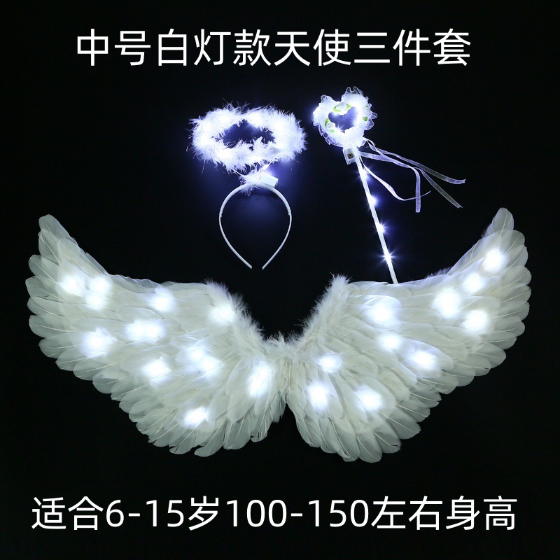 儿童小天使发光羽毛翅膀道具女童精灵仙女拍照cos表演成人背饰