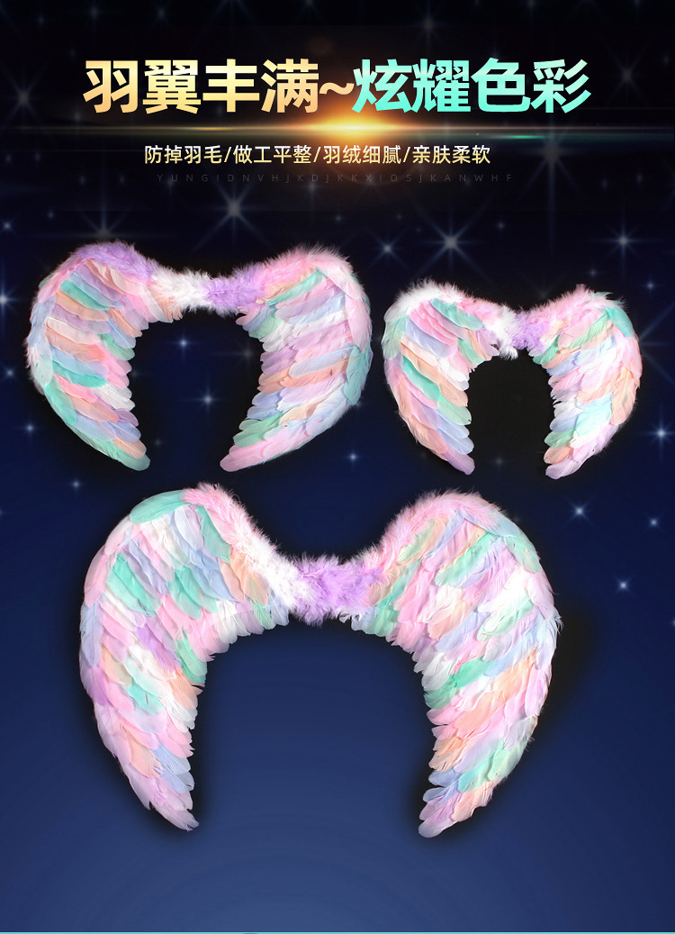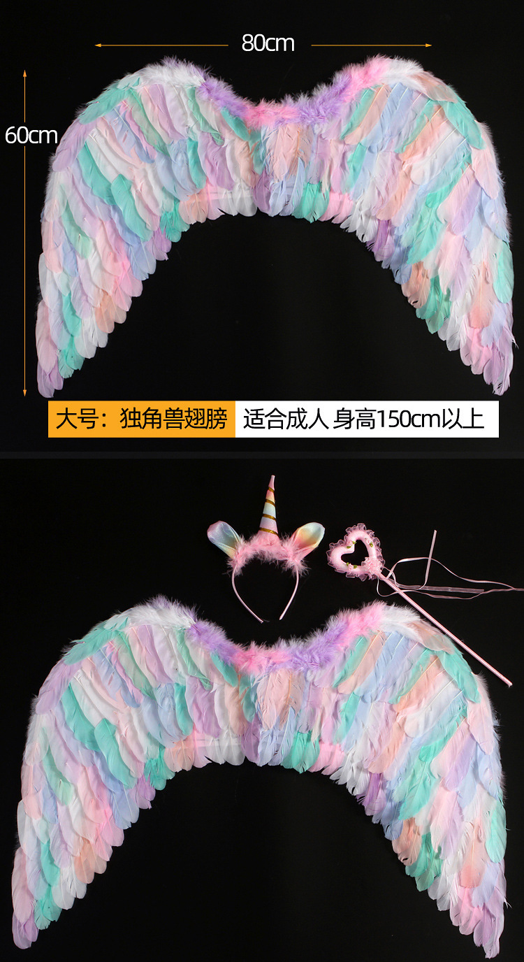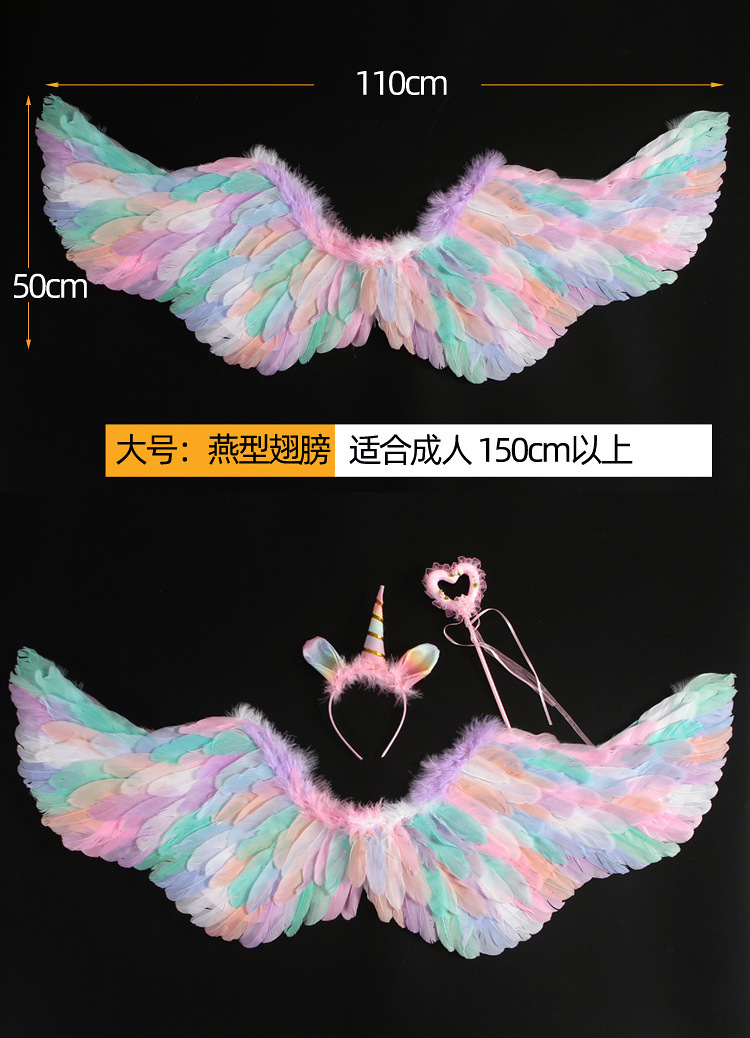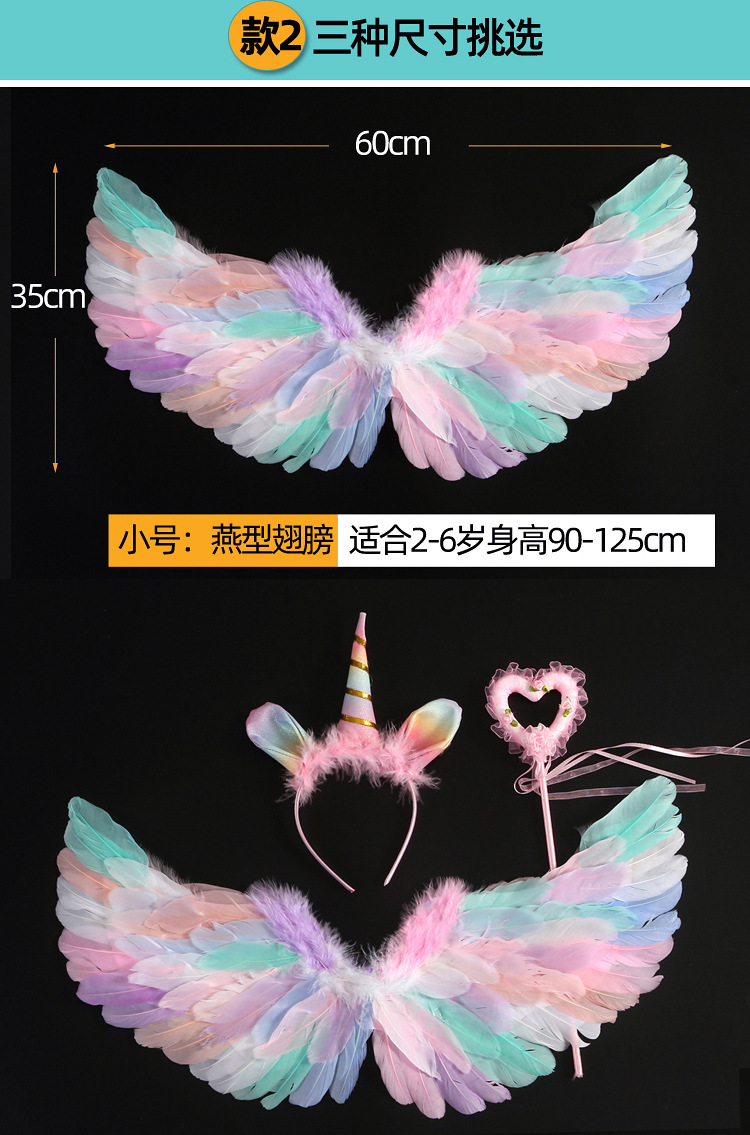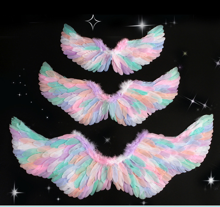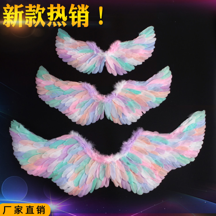 批发彩色天使羽毛翅膀成人儿童装扮精灵仙子六一万圣节舞台道具